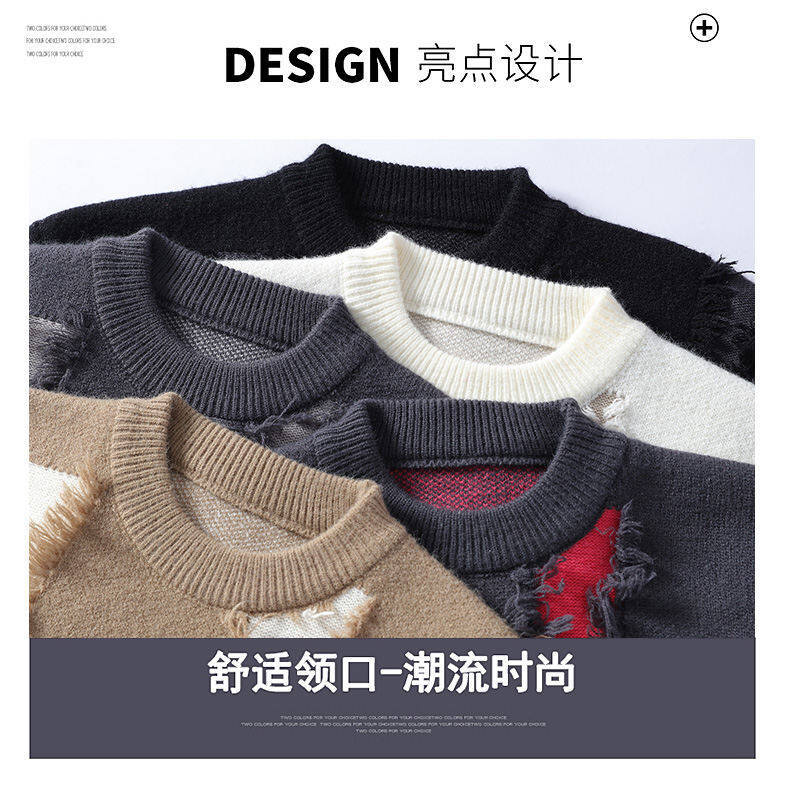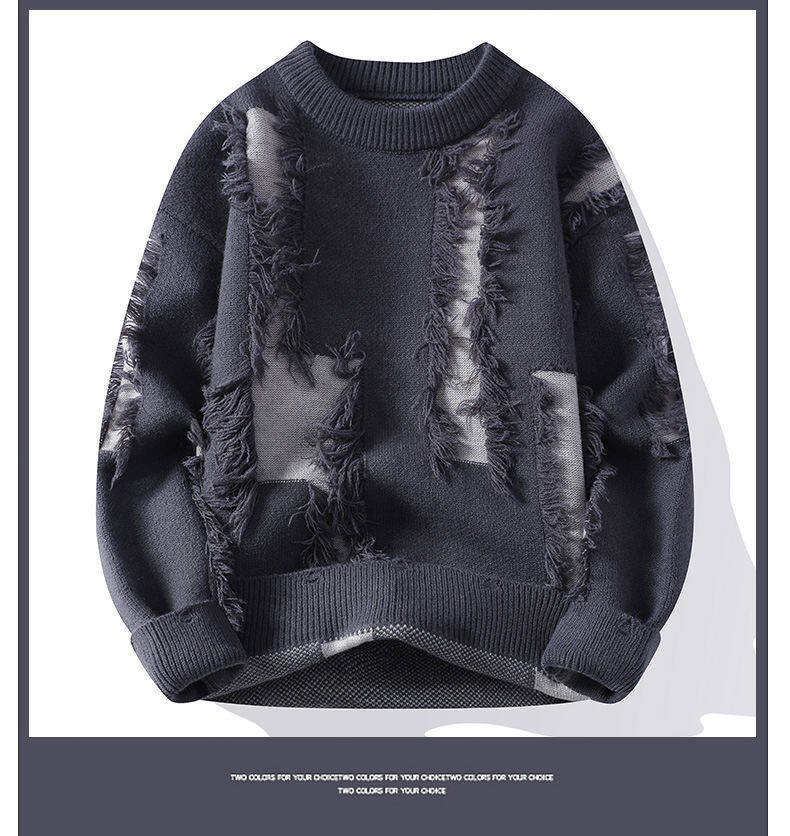 가을과 겨울 새로운 간단한 패션 둥근 목 술 디자인 캐주얼 스웨터 남자의 긴 소매 스웨터스토어 가기