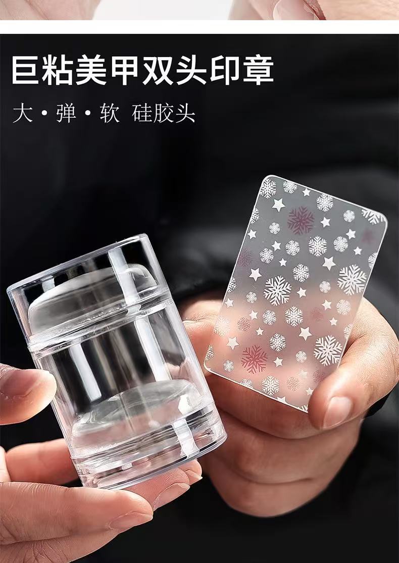 네일 아트 실리콘 스탬프 프랑스 거대한 끈적 끈적한 투명 더블 헤드 네일 스틸 플레이트 레이스 나비 패턴 꽃 인쇄 도구