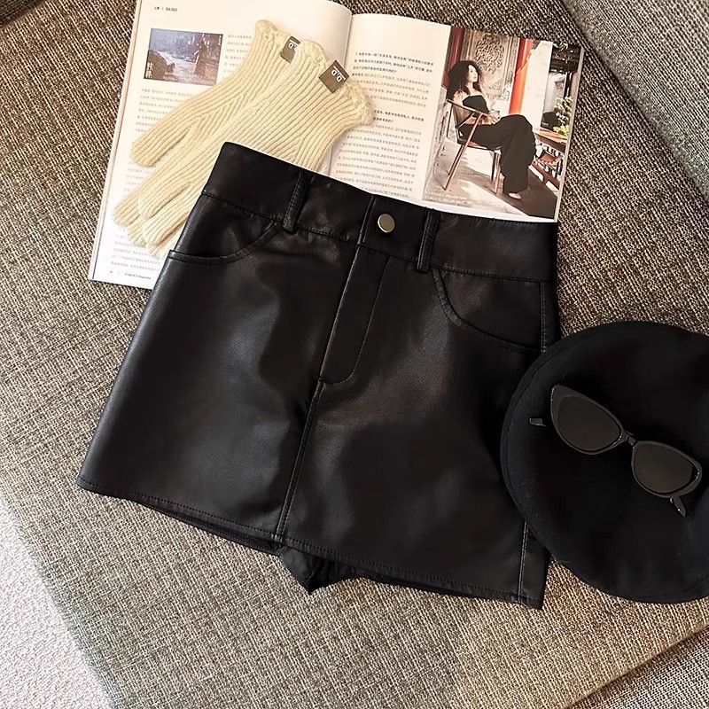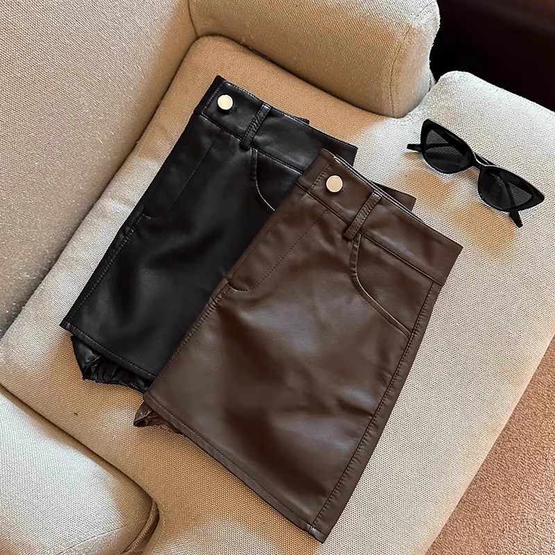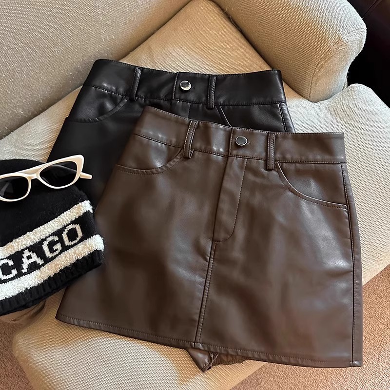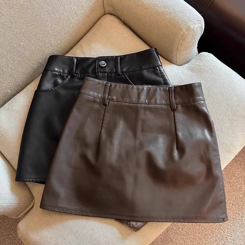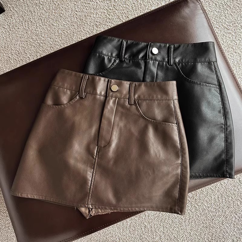 검은 PU 치마 향신료 소녀의 짧은 치마 2024 봄과 여름 새로운 높은 허리 질감 A 라인 엉덩이 스커트 가죽 스커트 여성스토어 가기