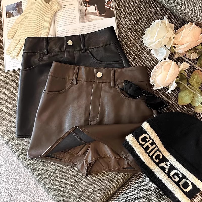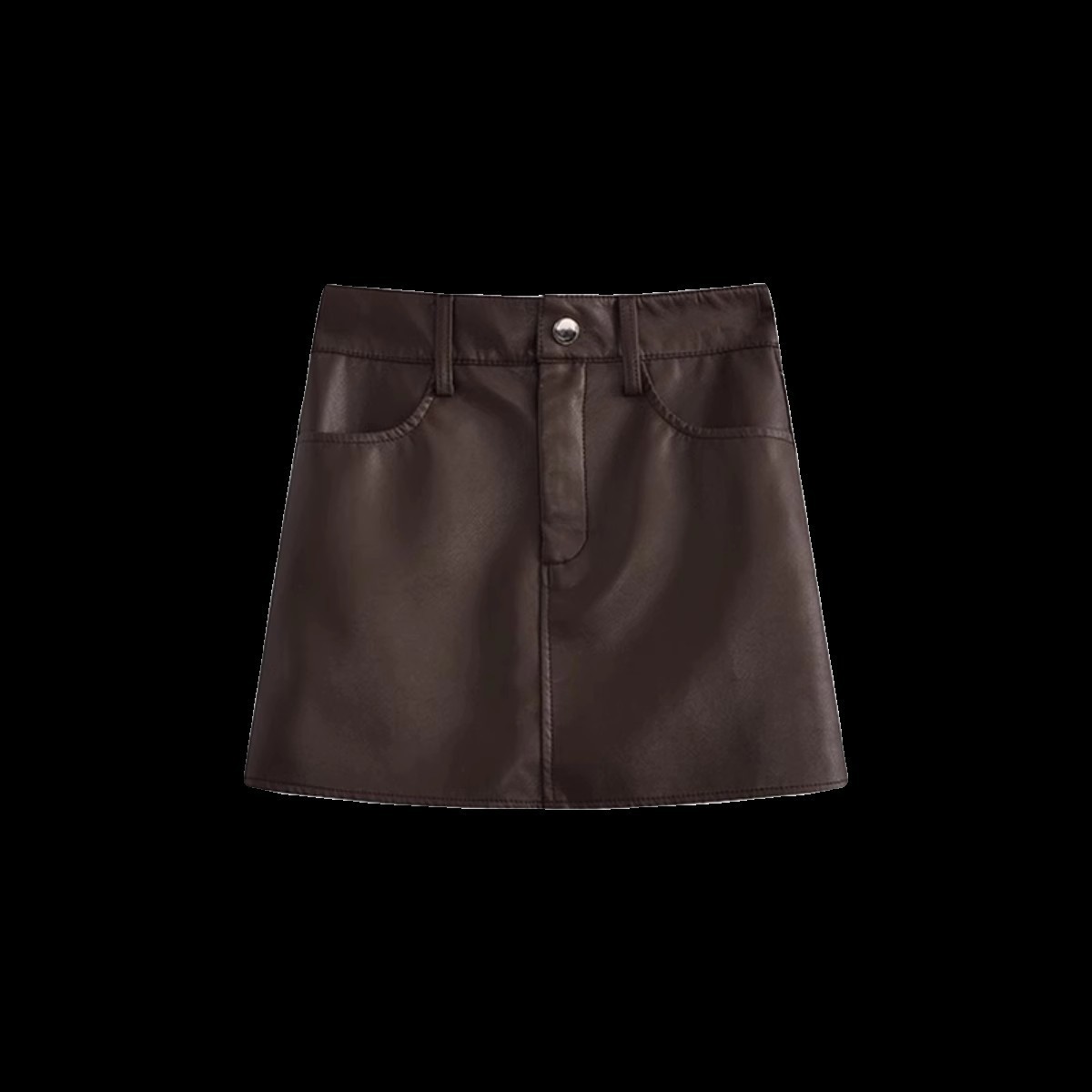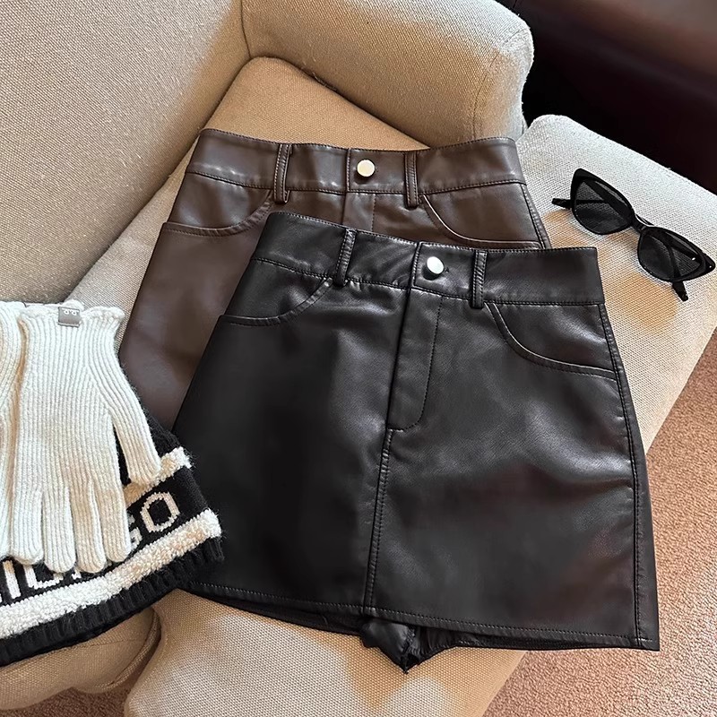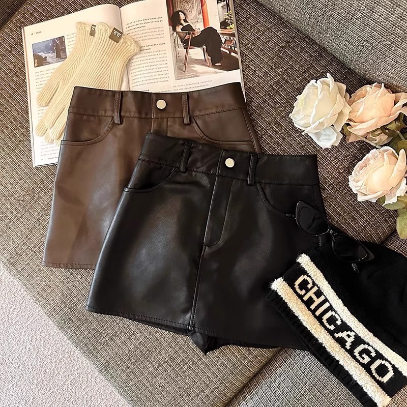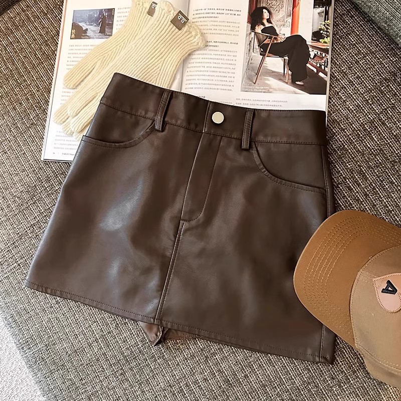 검은 PU 치마 향신료 소녀의 짧은 치마 2024 봄과 여름 새로운 높은 허리 질감 A 라인 엉덩이 스커트 가죽 스커트 여성스토어 가기