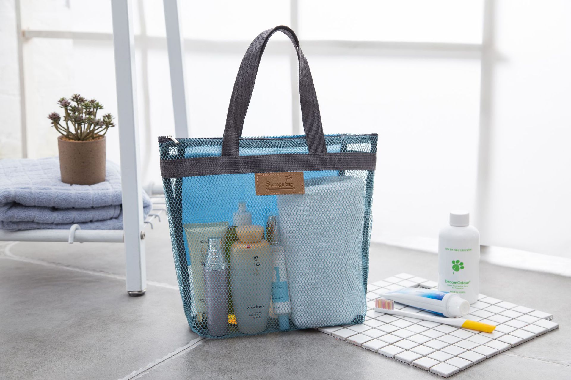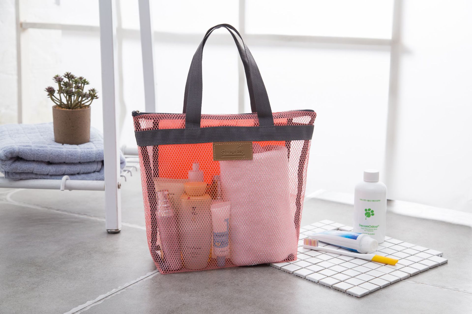 소스 제조 업체 폭발 지퍼 휴대용 메쉬 비치 백 수영 가방 화장품 가방 저장 가방 여행 세탁 가방스토어 가기
