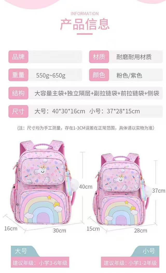 새로운 레인보우 스쿨백 어린이 만화 귀여운 한국 스타일 1-6 학년 어린이 대용량 소녀 배낭스토어 가기