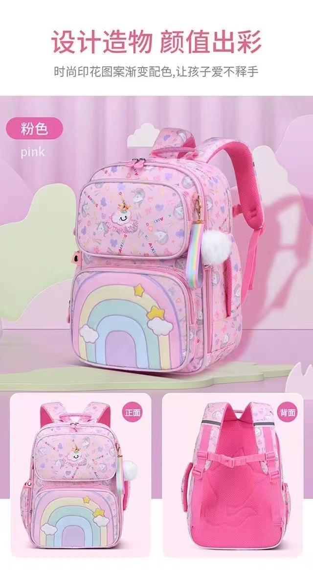 새로운 레인보우 스쿨백 어린이 만화 귀여운 한국 스타일 1-6 학년 어린이 대용량 소녀 배낭