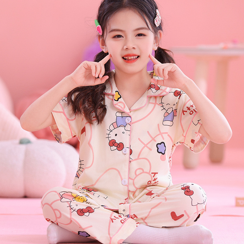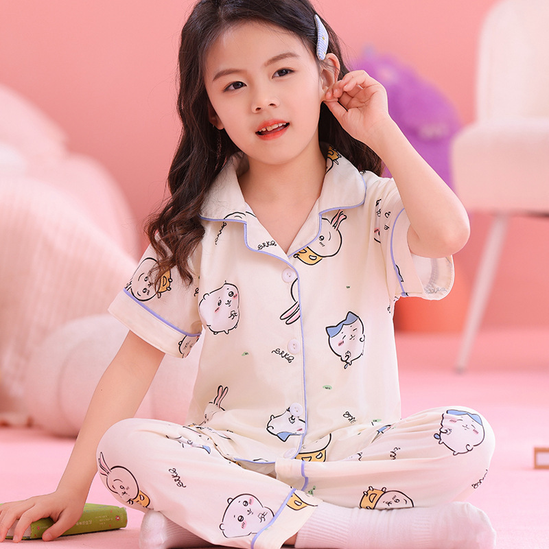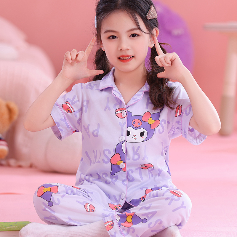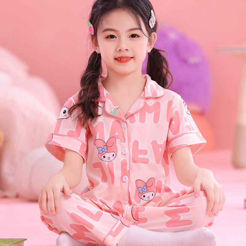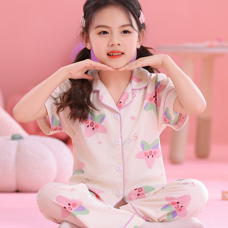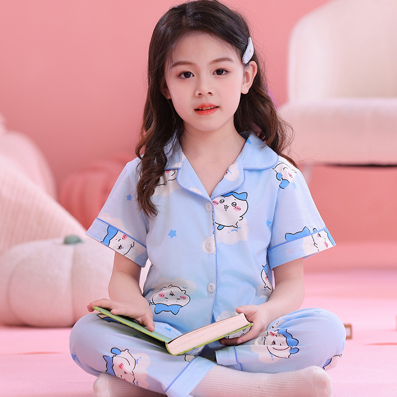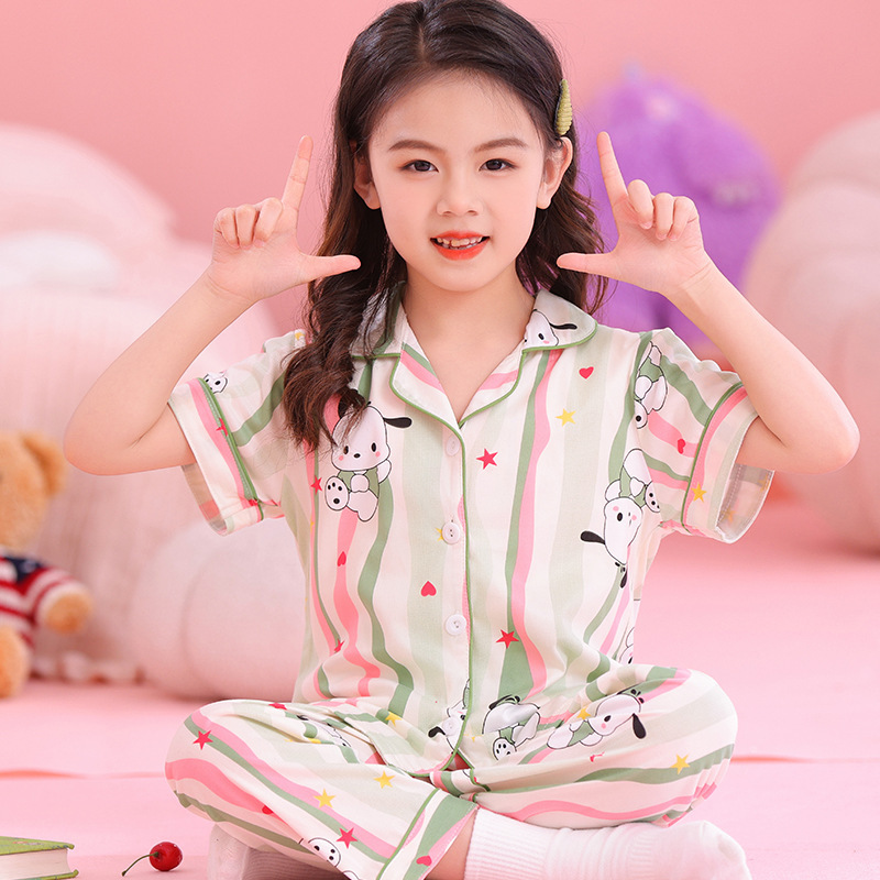 2025 한국판 어린이 잠옷 소녀 카디건 귀여운 만화 봄과 가을 짧은 소매 바지 여자 홈 의류 도매