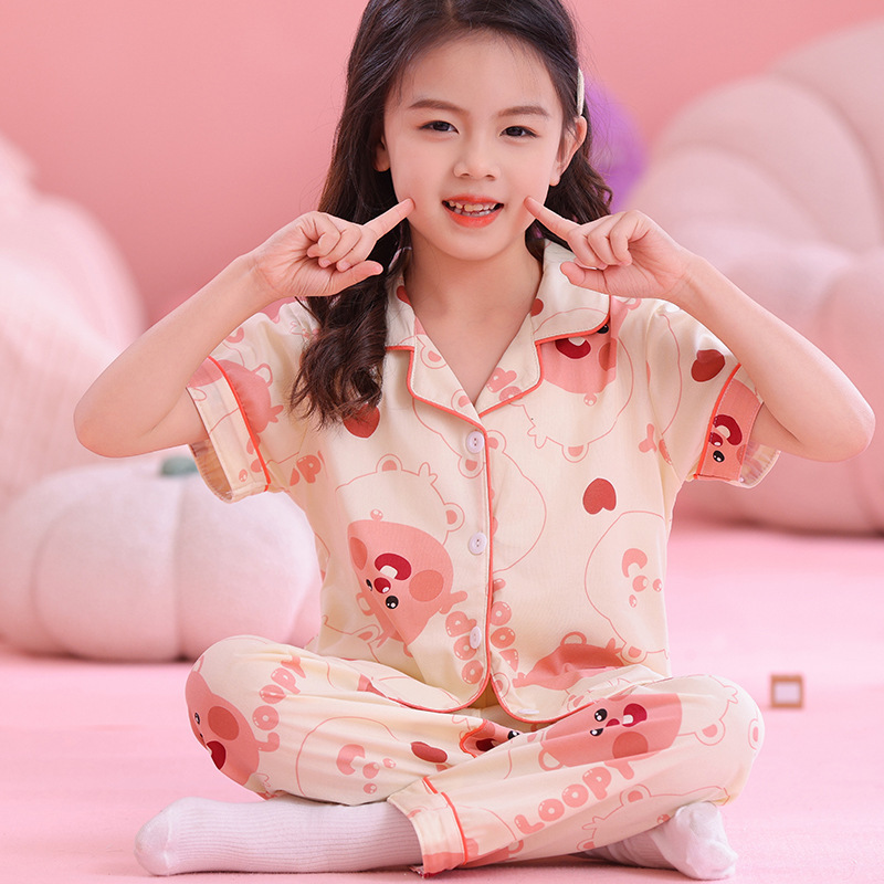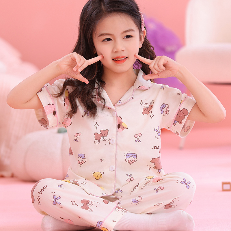 2025 한국판 어린이 잠옷 소녀 카디건 귀여운 만화 봄과 가을 짧은 소매 바지 여자 홈 의류 도매스토어 가기
