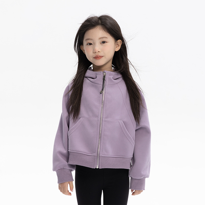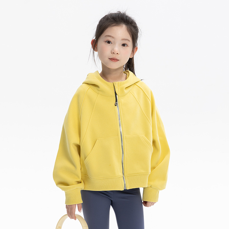 여자 룰루 스타일 후드 티셔츠 자켓 2025 가을 어린이 느슨한 스포츠 지퍼 셔츠 캐주얼 짧은 탑스토어 가기