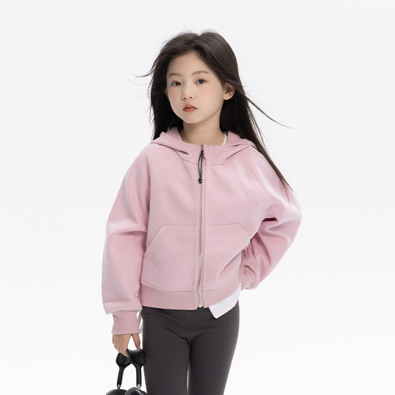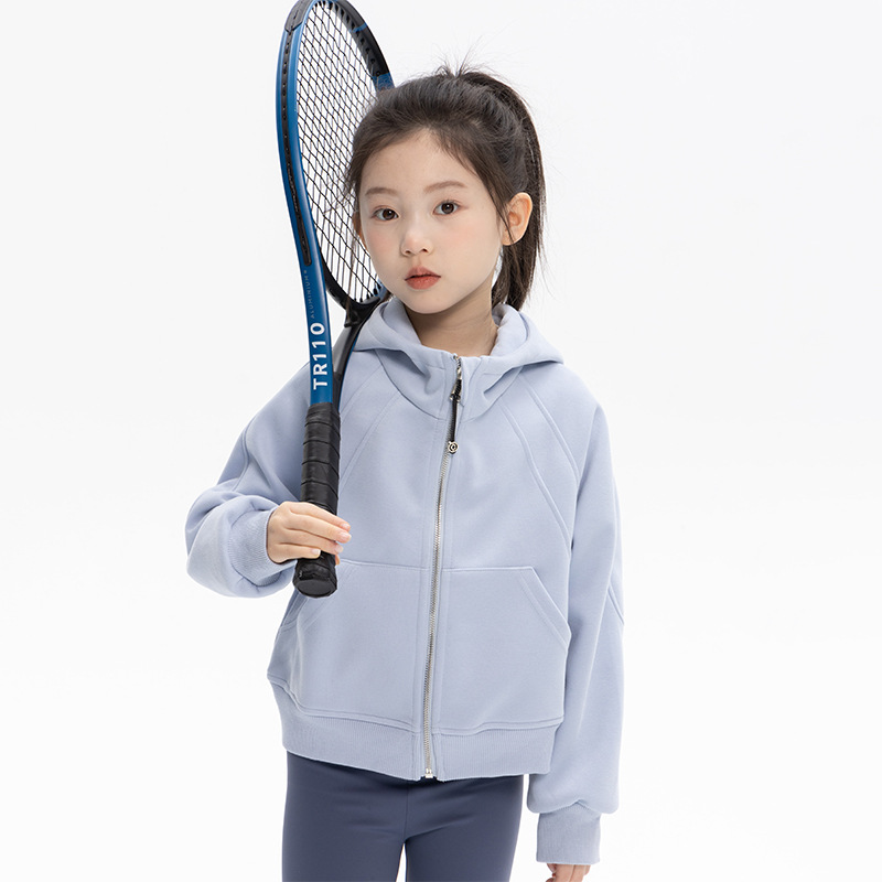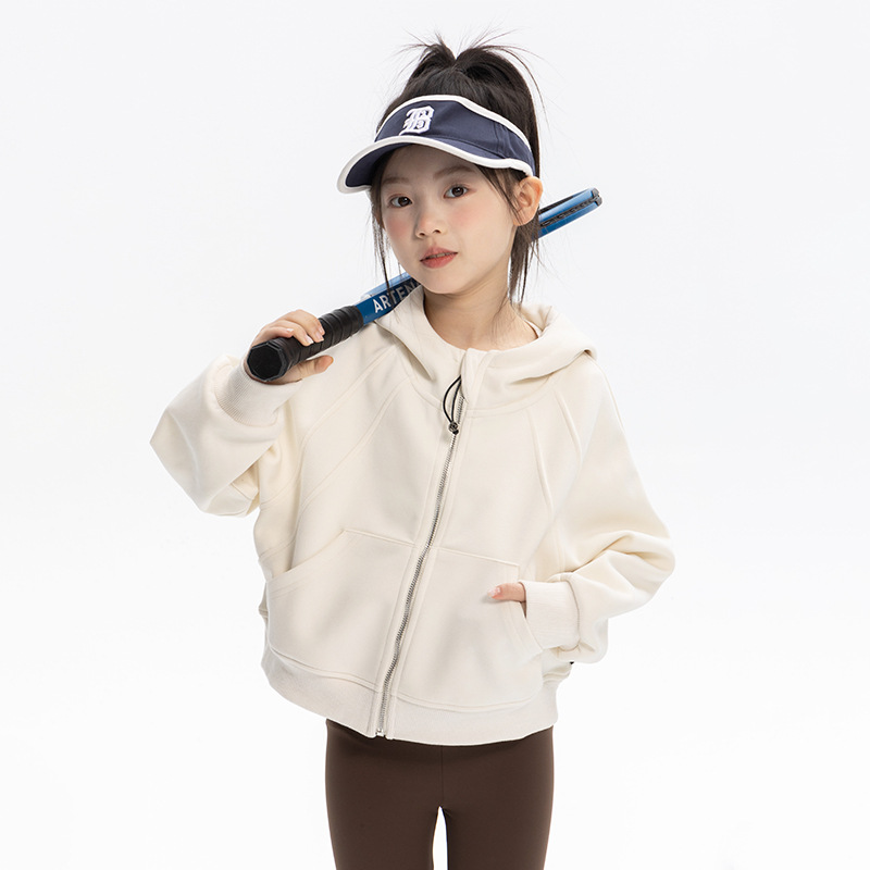 여자 룰루 스타일 후드 티셔츠 자켓 2025 가을 어린이 느슨한 스포츠 지퍼 셔츠 캐주얼 짧은 탑
