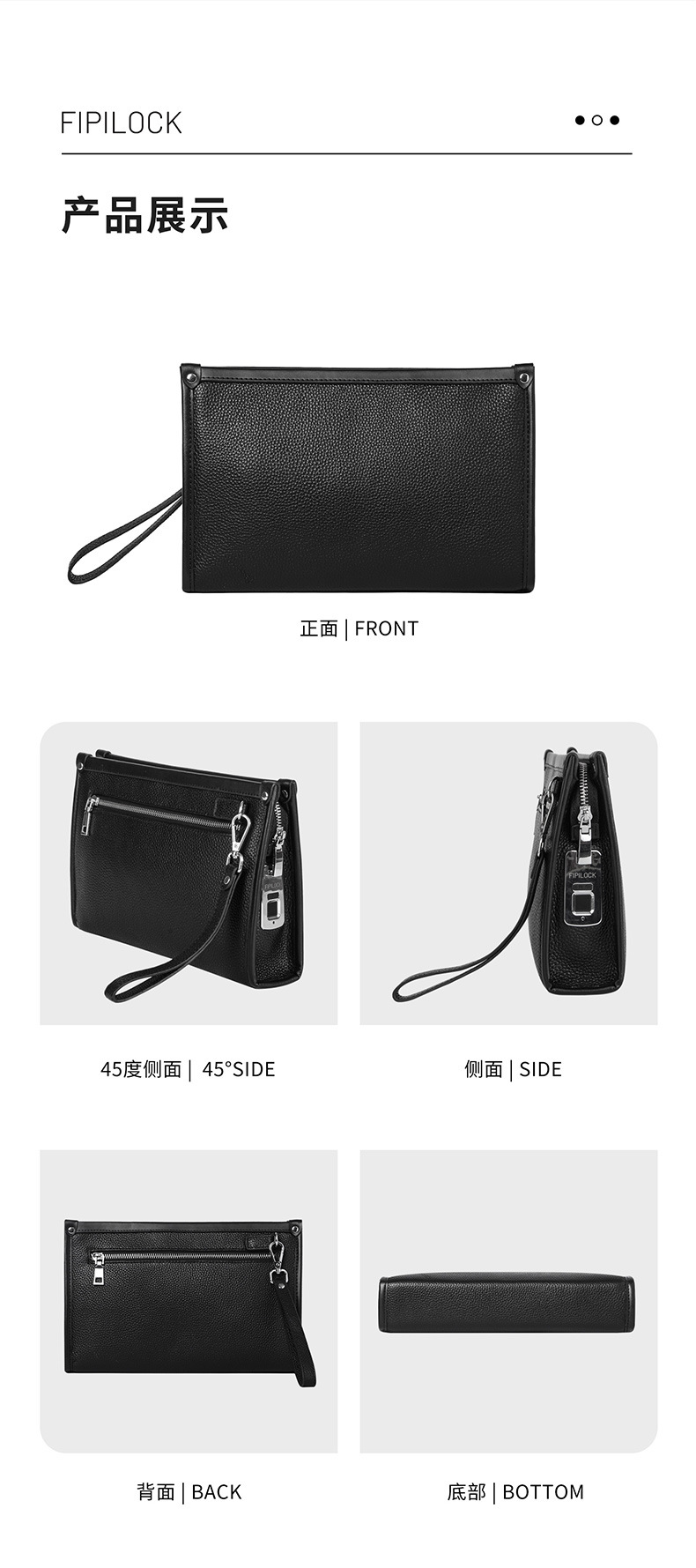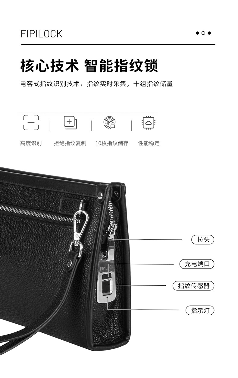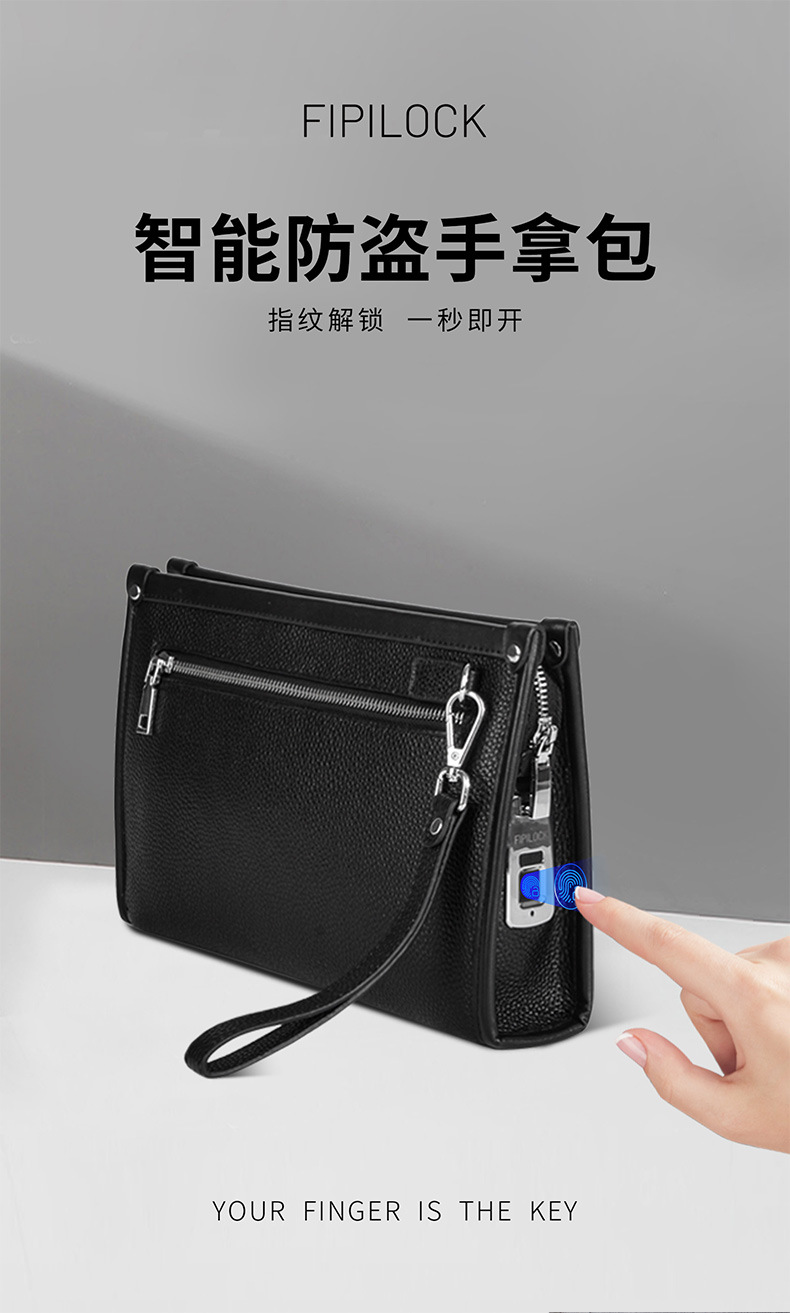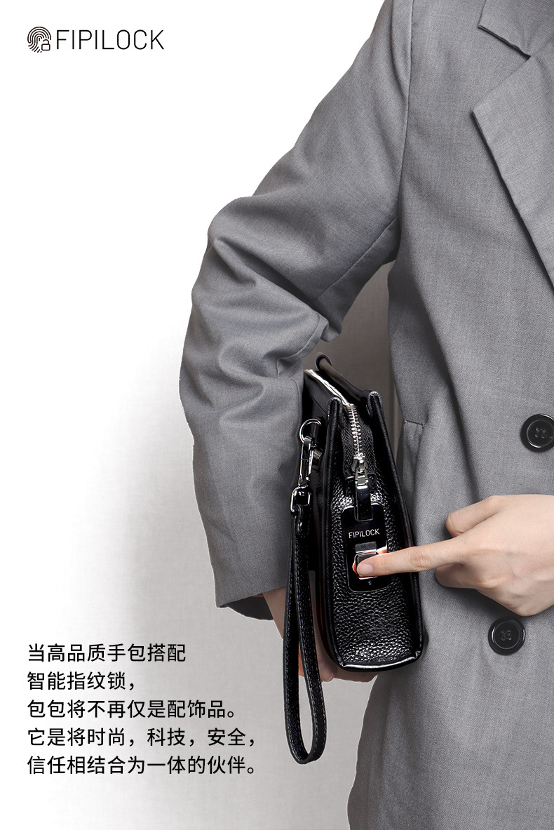 Fipilock 대용량 지문 핸드백 남성 하이 엔드 정품 가죽 클러치 비즈니스 패션 지문 잠금 지갑스토어 가기