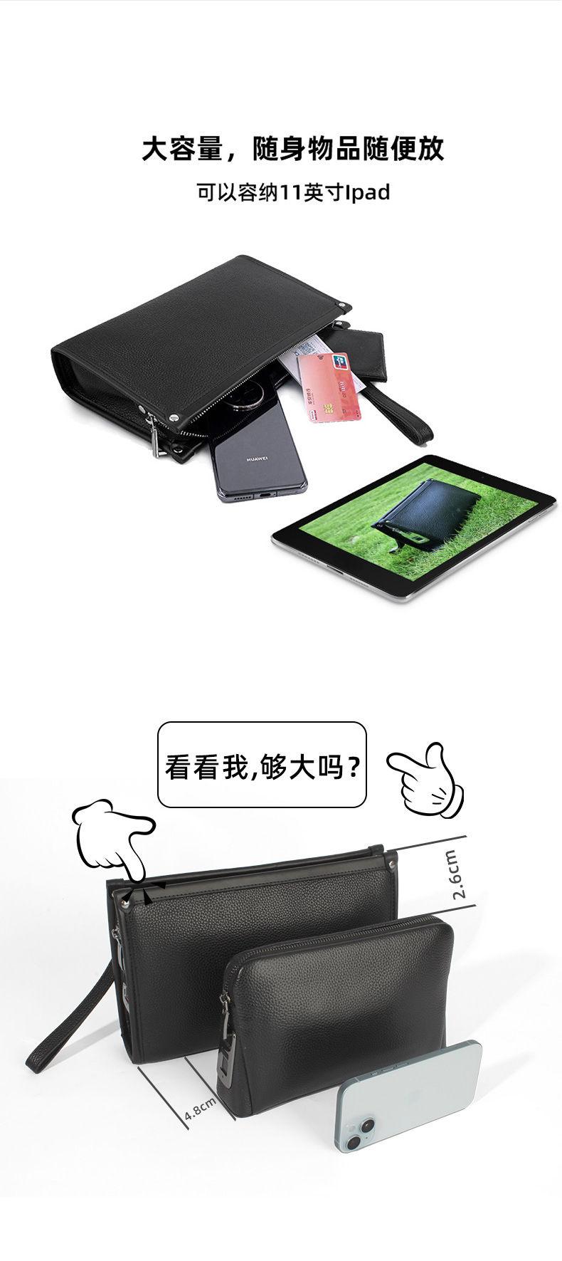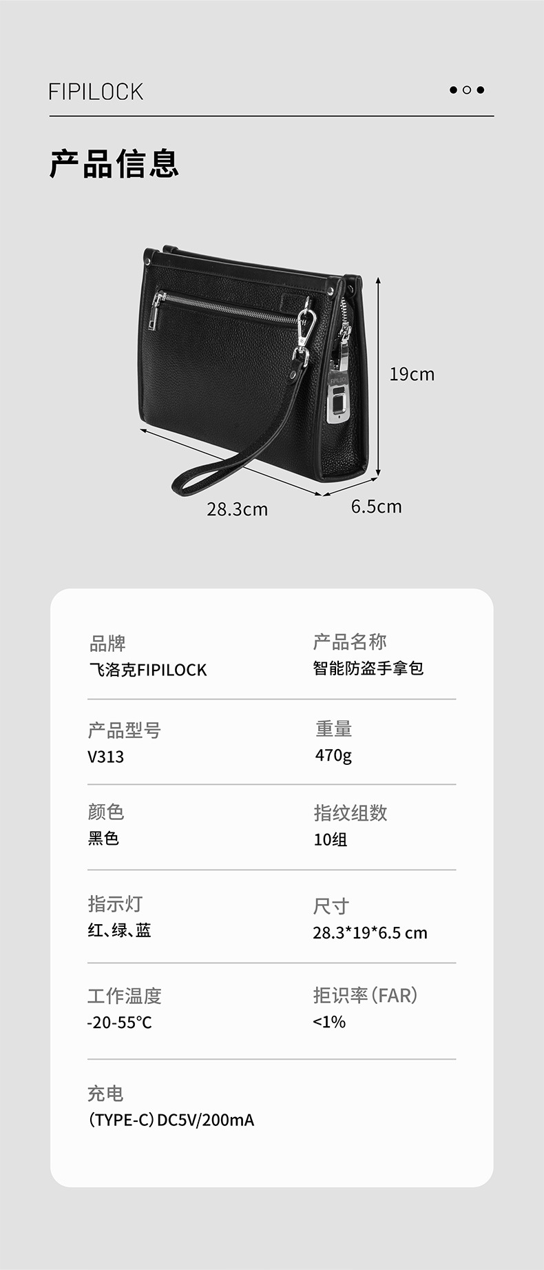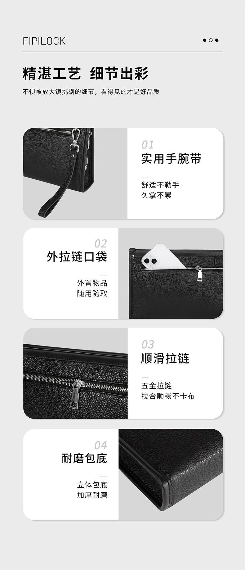 Fipilock 대용량 지문 핸드백 남성 하이 엔드 정품 가죽 클러치 비즈니스 패션 지문 잠금 지갑스토어 가기