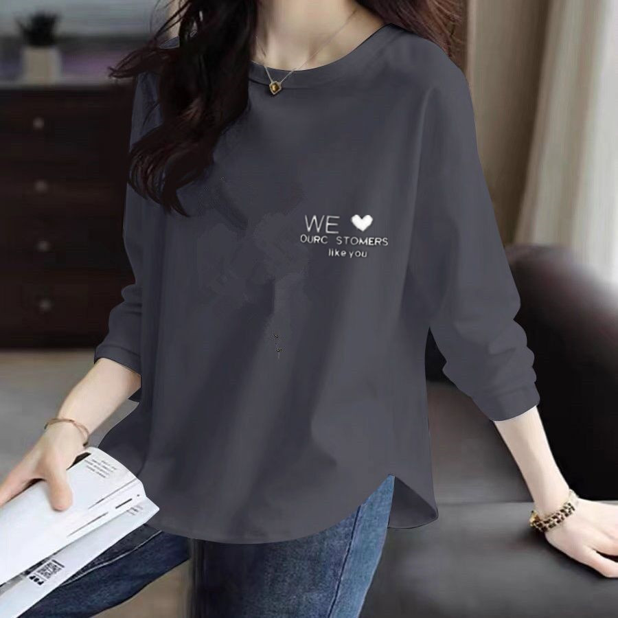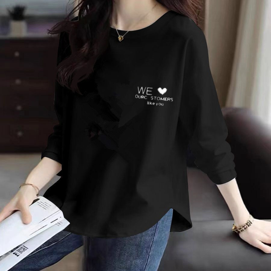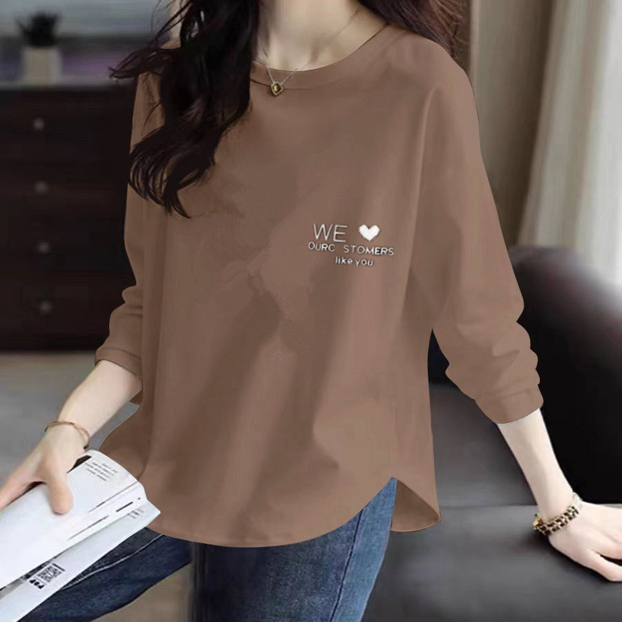 긴팔 티셔츠 여성용 2025 년 새 봄과 가을 보틀 셔츠 머리 곡선 가을 옷 여성용 외투 탑