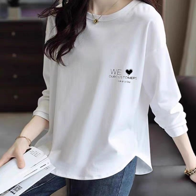 긴팔 티셔츠 여성용 2025 년 새 봄과 가을 보틀 셔츠 머리 곡선 가을 옷 여성용 외투 탑스토어 가기