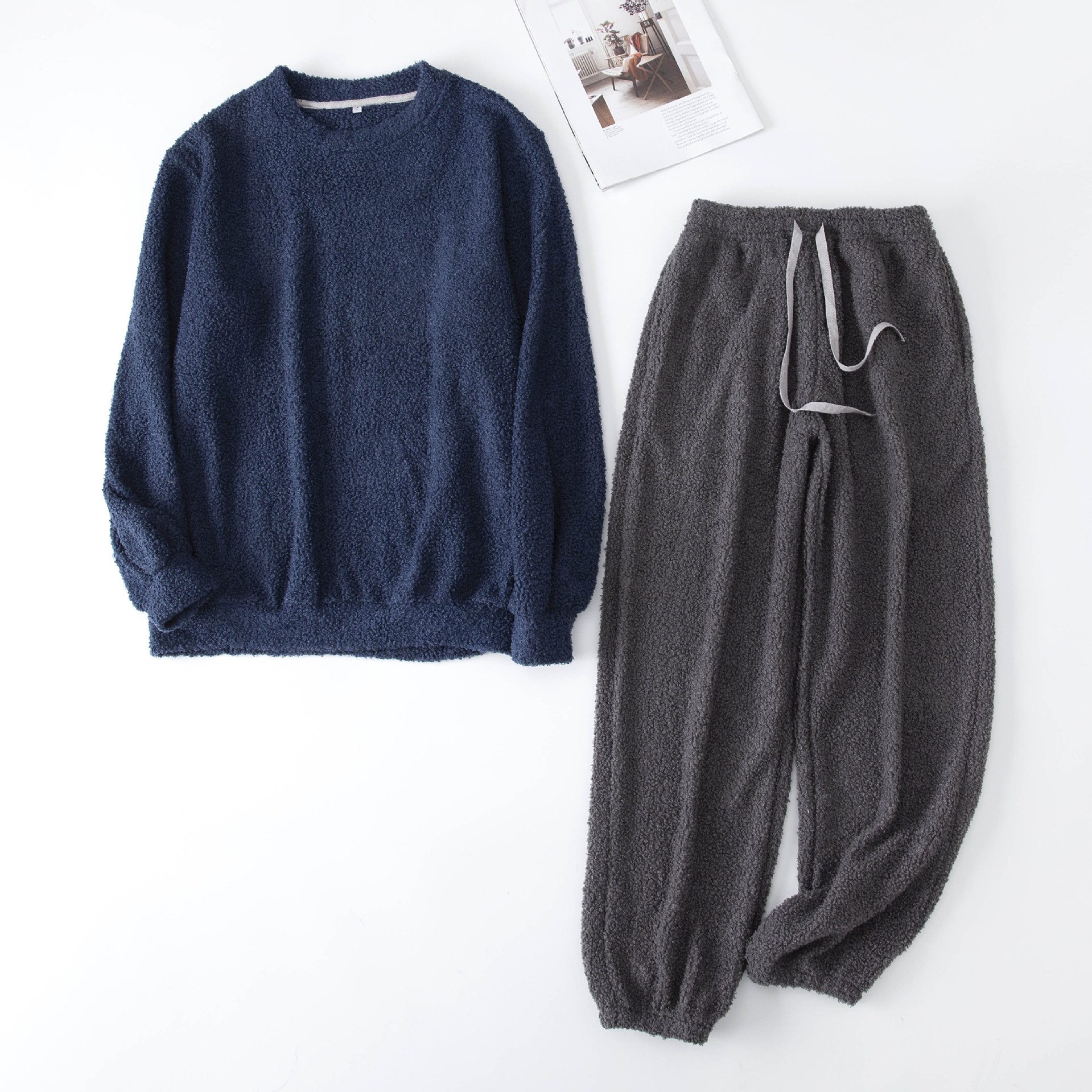 남자 플란넬 파자마 산호 벨벳 가을과 겨울 따뜻한 홈 캐주얼 세트 겉옷 봉제 홈 의류 남성