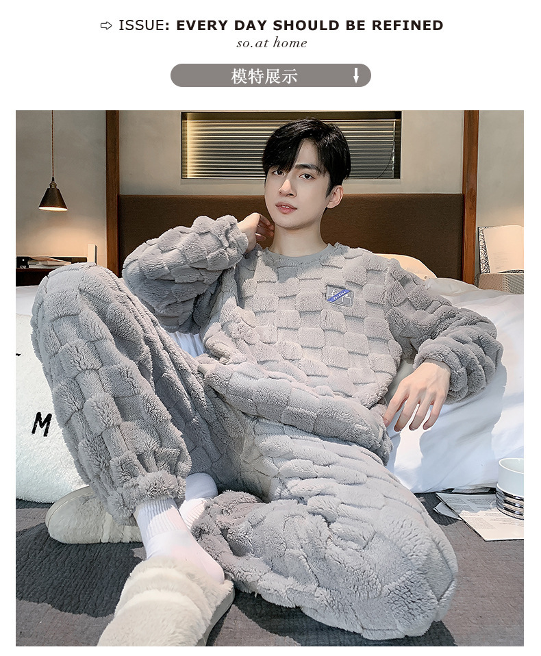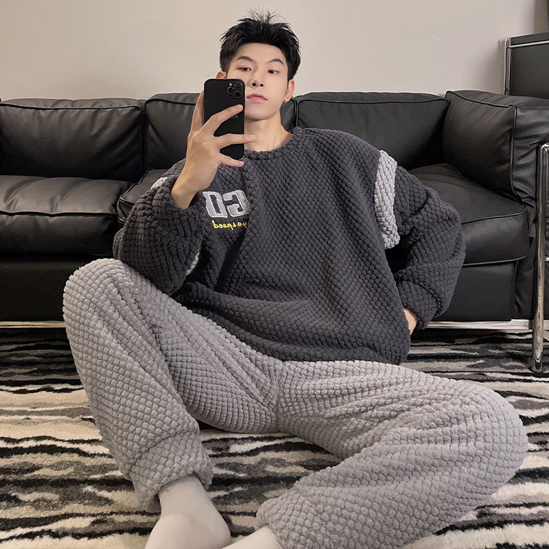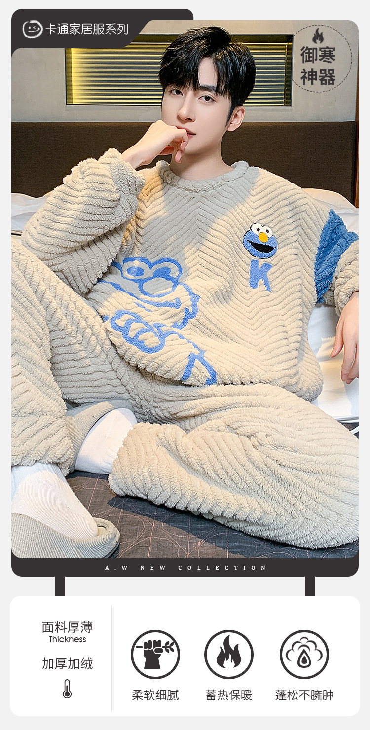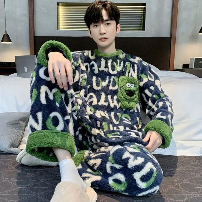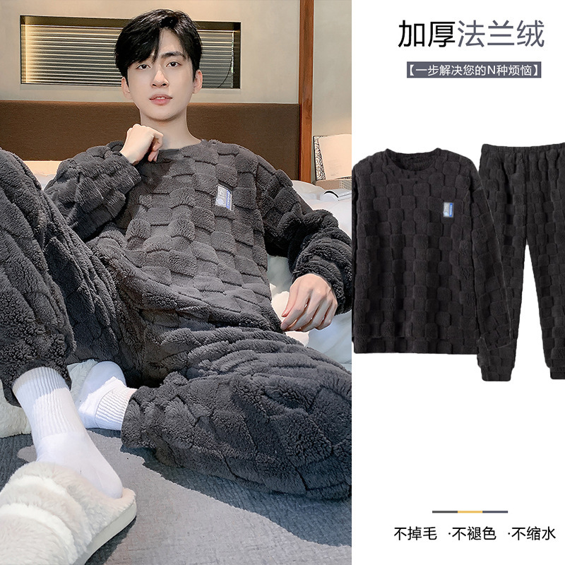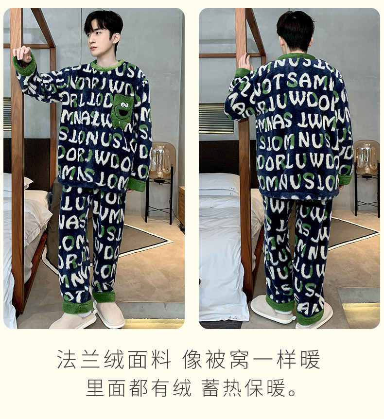 남자 플란넬 파자마 산호 벨벳 가을과 겨울 따뜻한 홈 캐주얼 세트 겉옷 봉제 홈 의류 남성스토어 가기