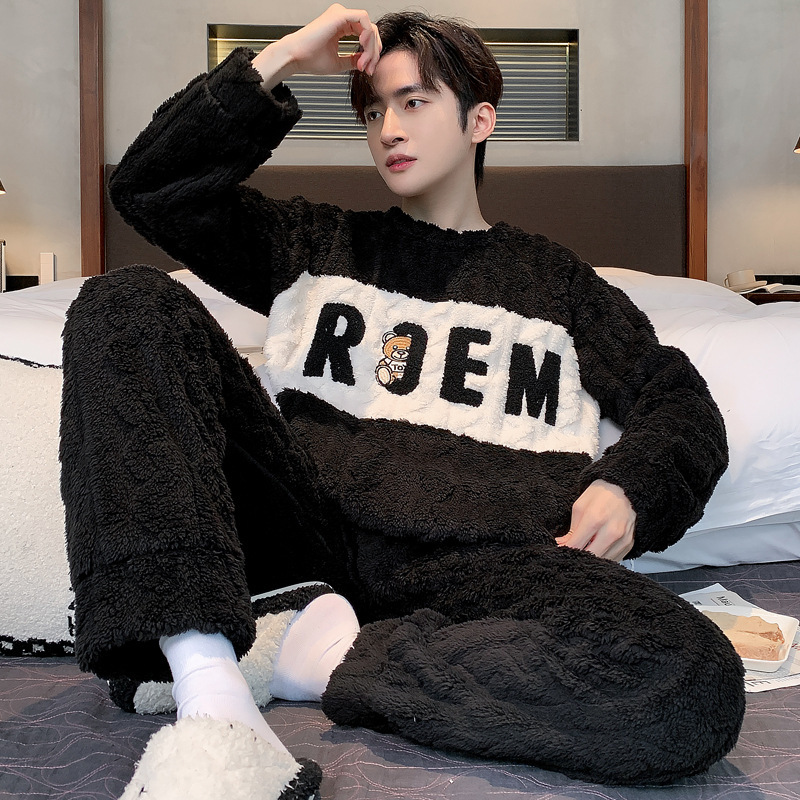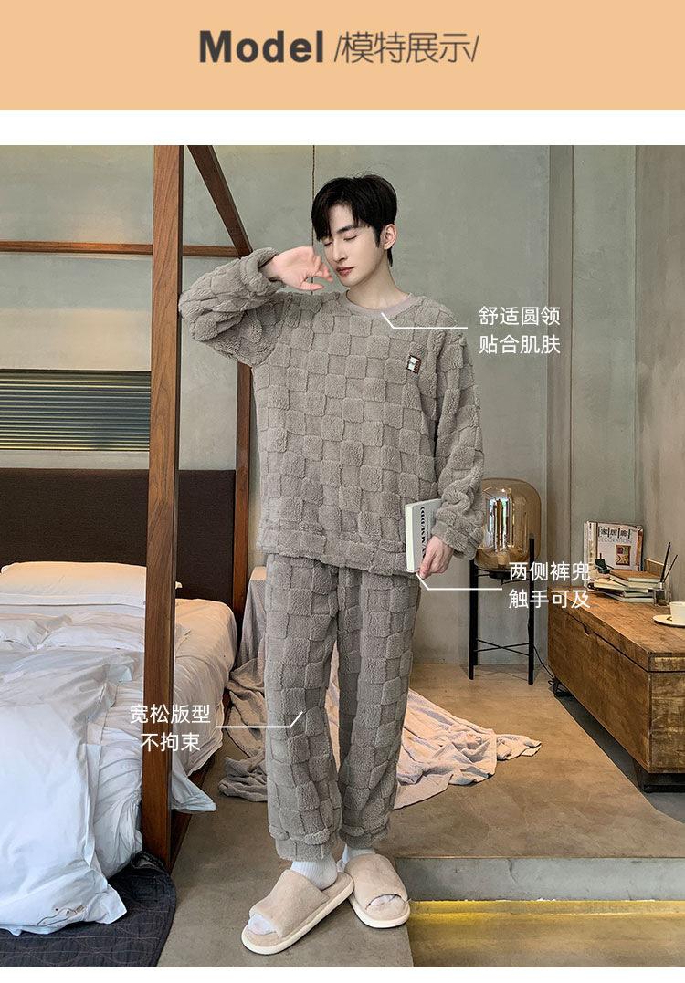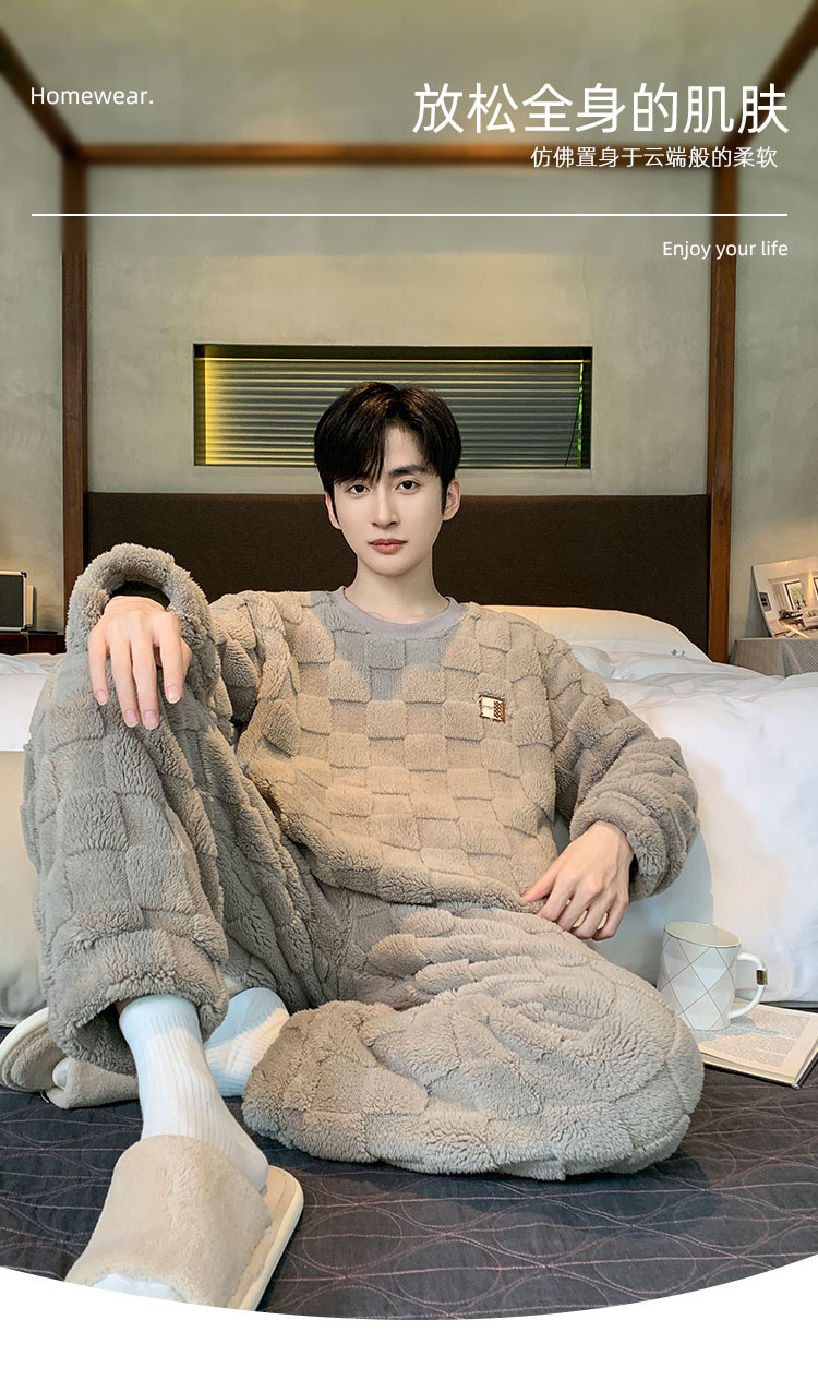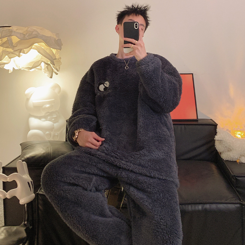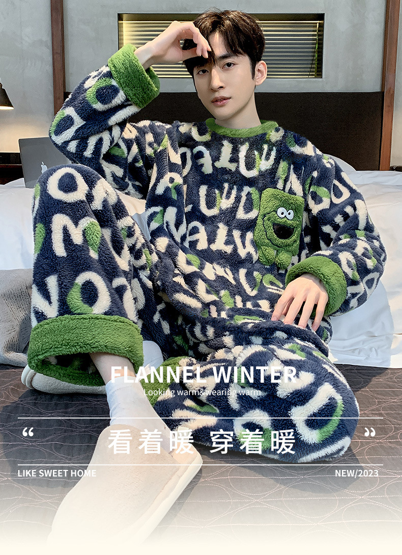 남자 플란넬 파자마 산호 벨벳 가을과 겨울 따뜻한 홈 캐주얼 세트 겉옷 봉제 홈 의류 남성스토어 가기