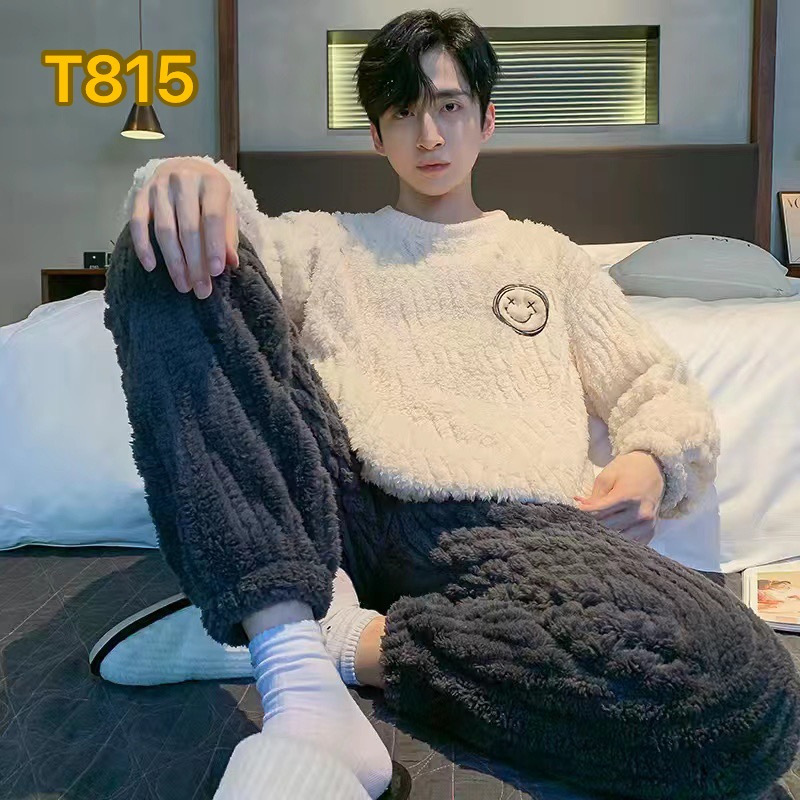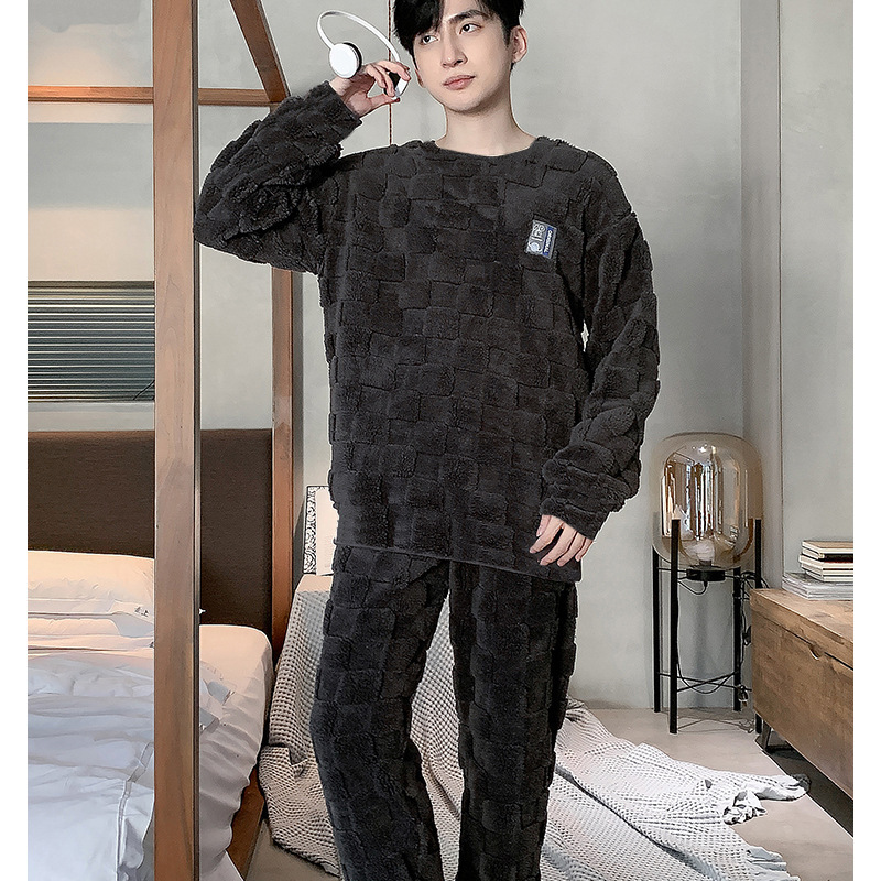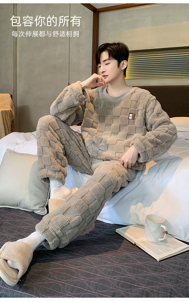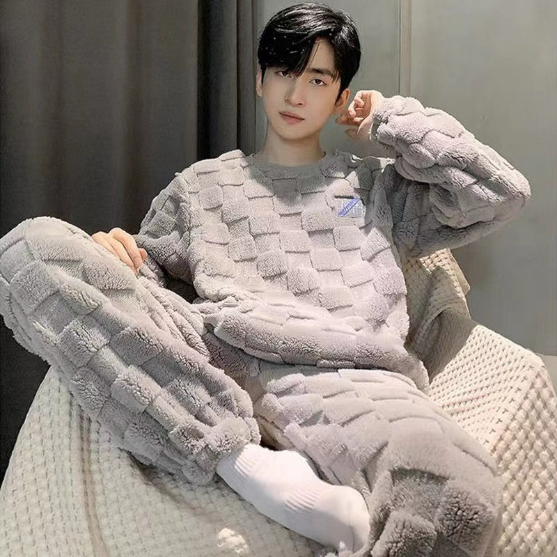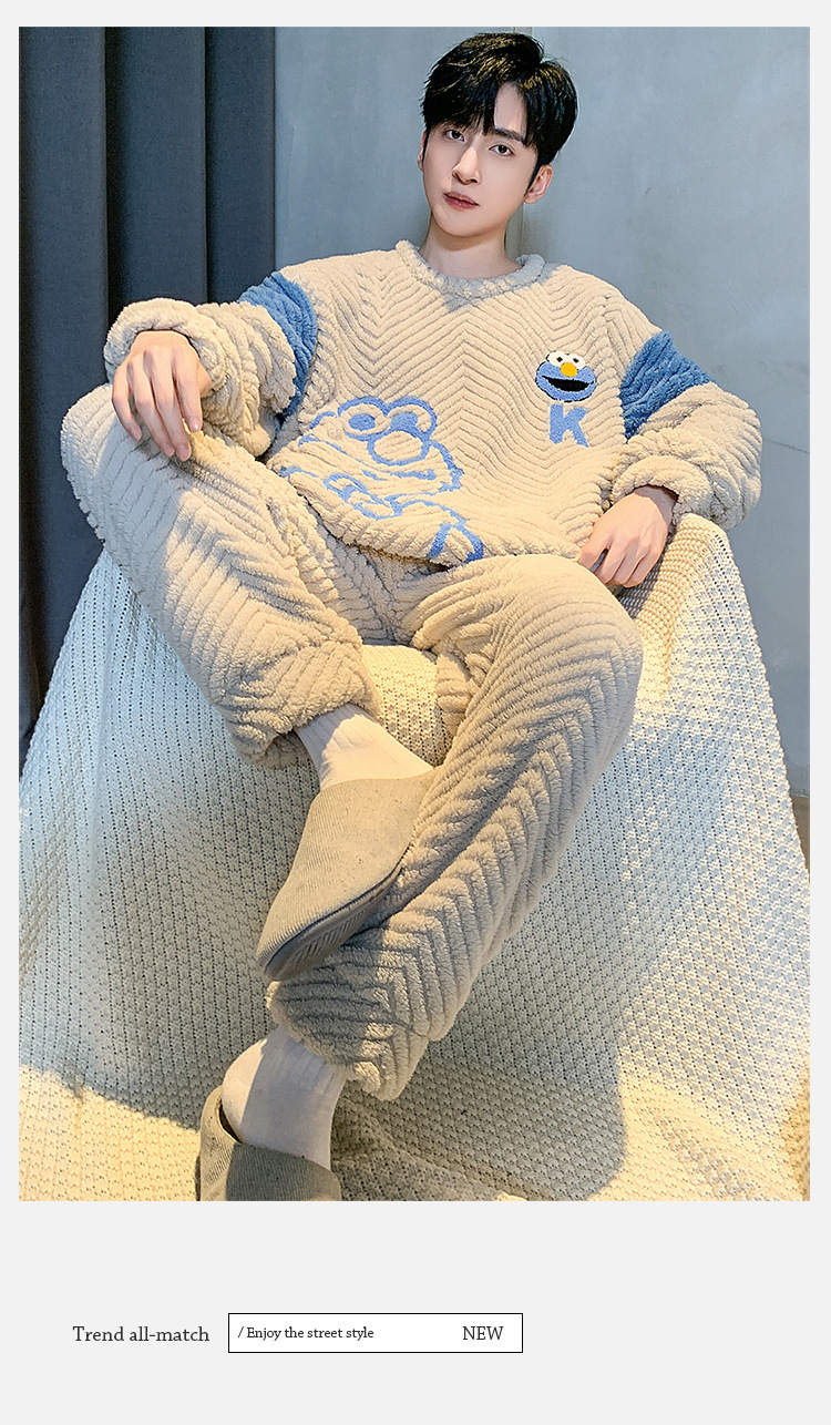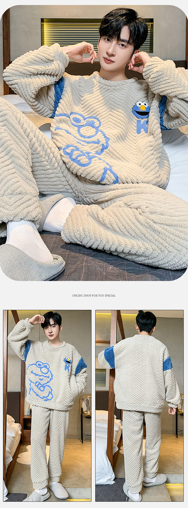 남자 플란넬 파자마 산호 벨벳 가을과 겨울 따뜻한 홈 캐주얼 세트 겉옷 봉제 홈 의류 남성스토어 가기