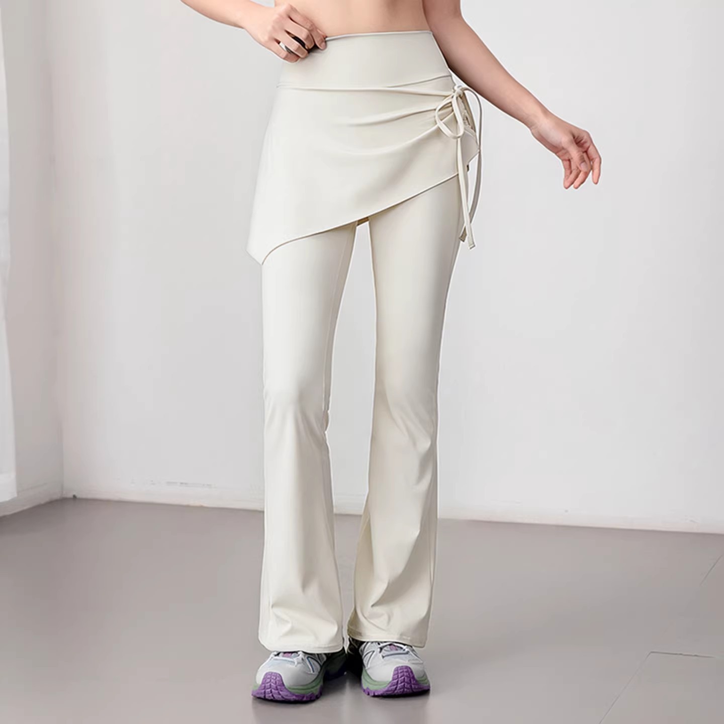 사이드 드로스트링 플레어 팬츠 여성 러닝 트레이닝 피트니스 바지 높은 허리 요가 바지 가짜 투피스 바지 스커트 스포츠 바지스토어 가기
