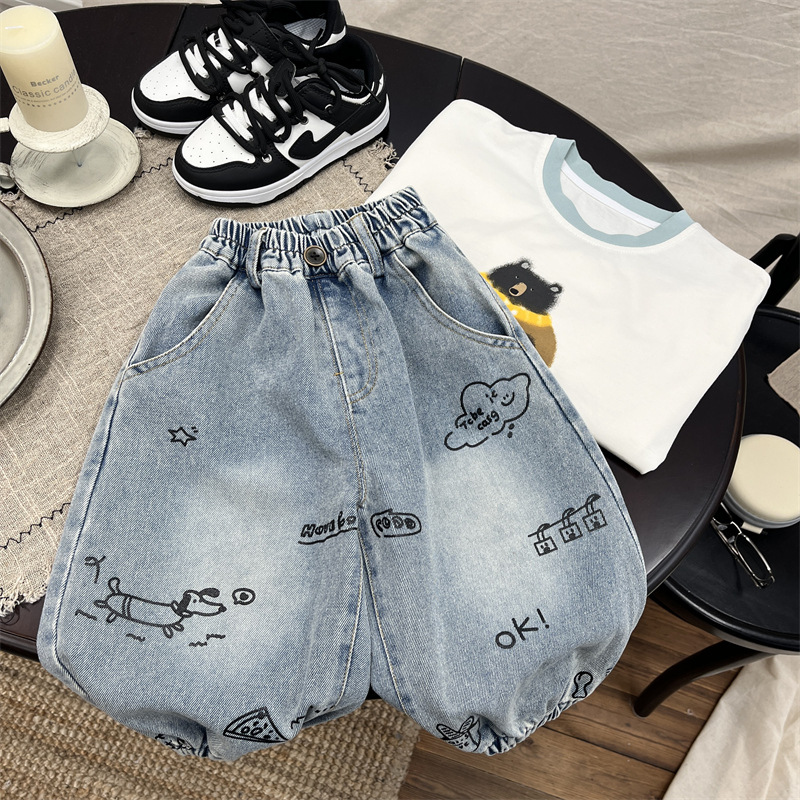 어린이용 청바지 2026년 신상 봄 남녀 아기용 패셔너블한 그래피티 랜턴 팬츠 중소형 아동용 캐주얼 와이드 팬츠
