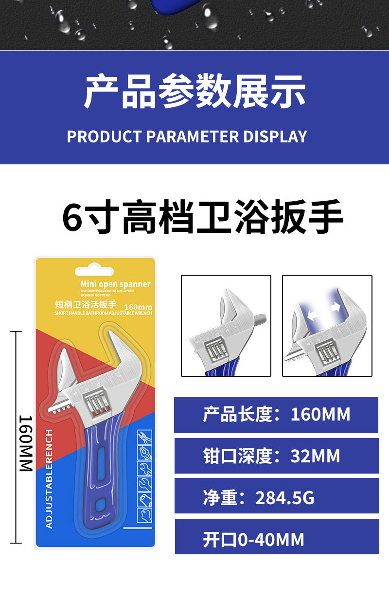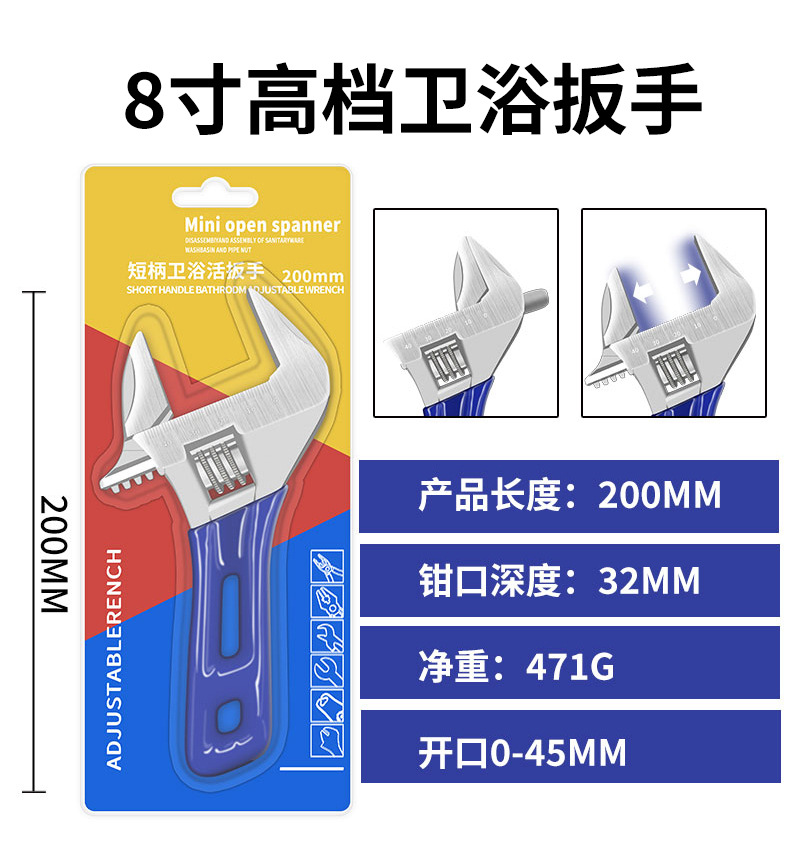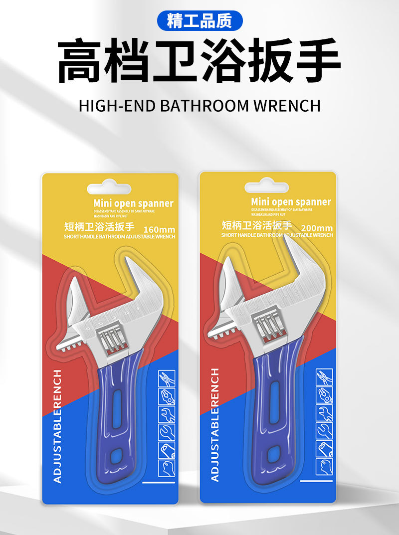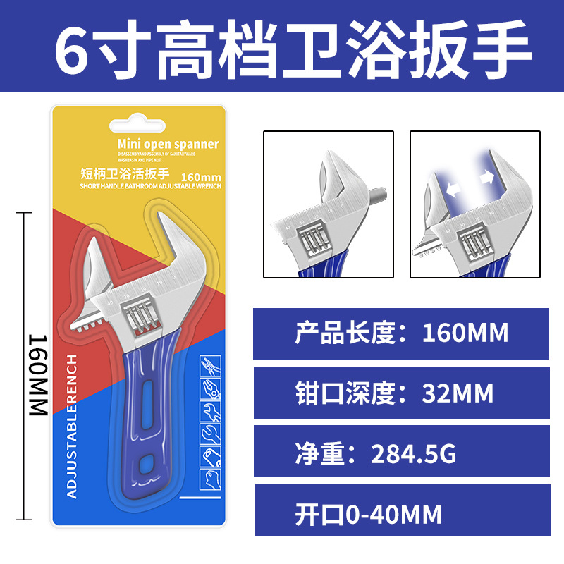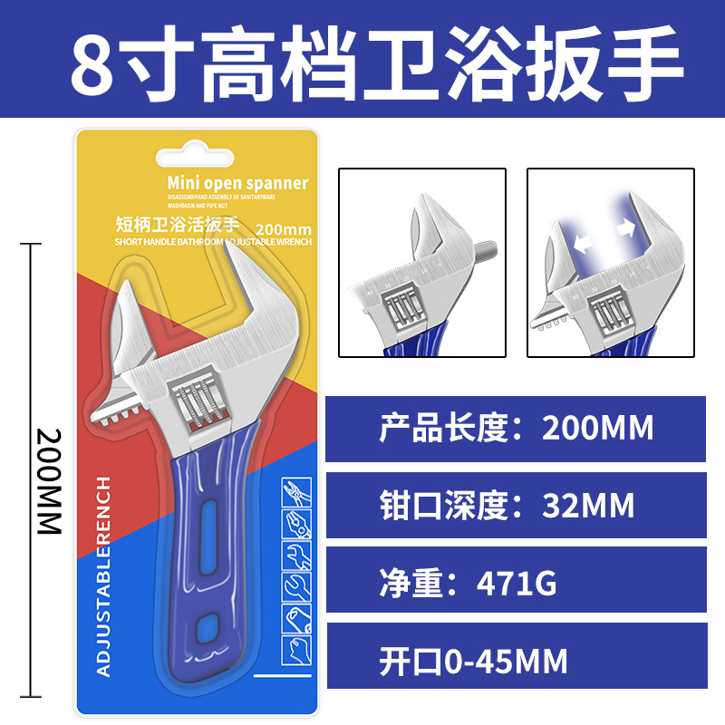 정품 짧은 손잡이 욕실 렌치, 초대형 개방형 조절 렌치, 다기능 수동 욕실 특수 조절 렌치