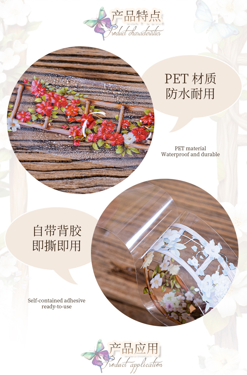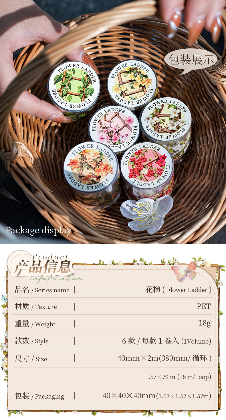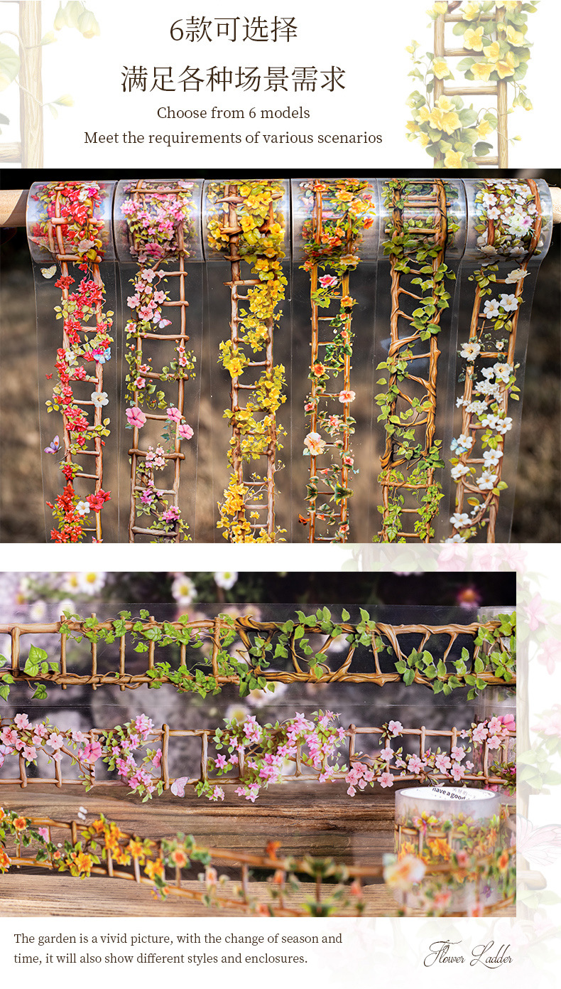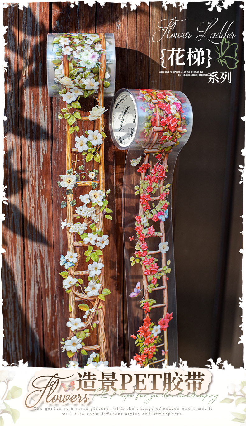 아름다운 날 풍경 애완 동물 테이프 꽃 사다리 시리즈 6 덩굴 사다리 손 계정 기본 DIY 장식 스티커스토어 가기