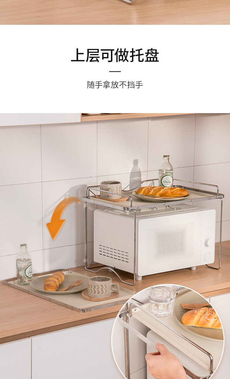전자레인지 선반 이중층 주방 다기능 수납 선반 가정용 밥솥 오븐 선반 높이 조절 가능 선반