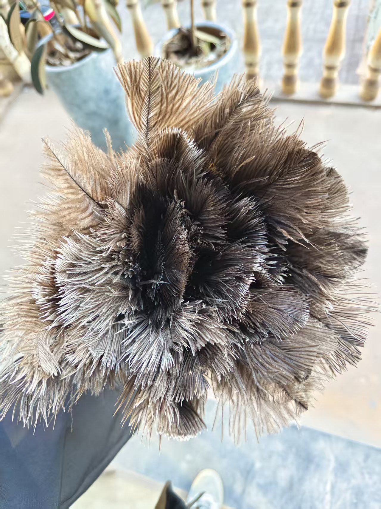 • 작은 나무 손잡이 타조 깃털