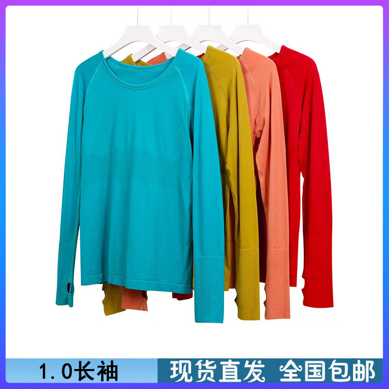 Lulu 1.0 긴팔 티셔츠 니트 빠른 건조 요가 세트 여성 달리기 스포츠 피트니스 훈련 긴팔 탑스토어 가기