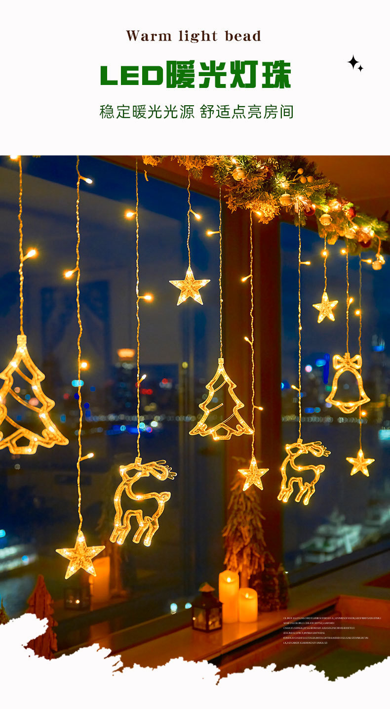 LED 작은 컬러 조명 깜박이는 조명 끈 조명 별 커튼 조명 크리스마스 장식 야외 태양 스타 조명스토어 가기