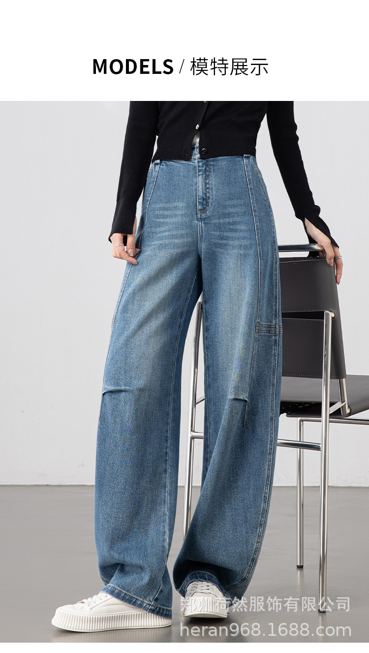 호란 가을 신상 하이웨이스트 바나나 코튼 스트레치 데님 팬츠 여성용 레트로 와이드 팬츠 루즈핏 캐주얼 롱팬츠스토어 가기