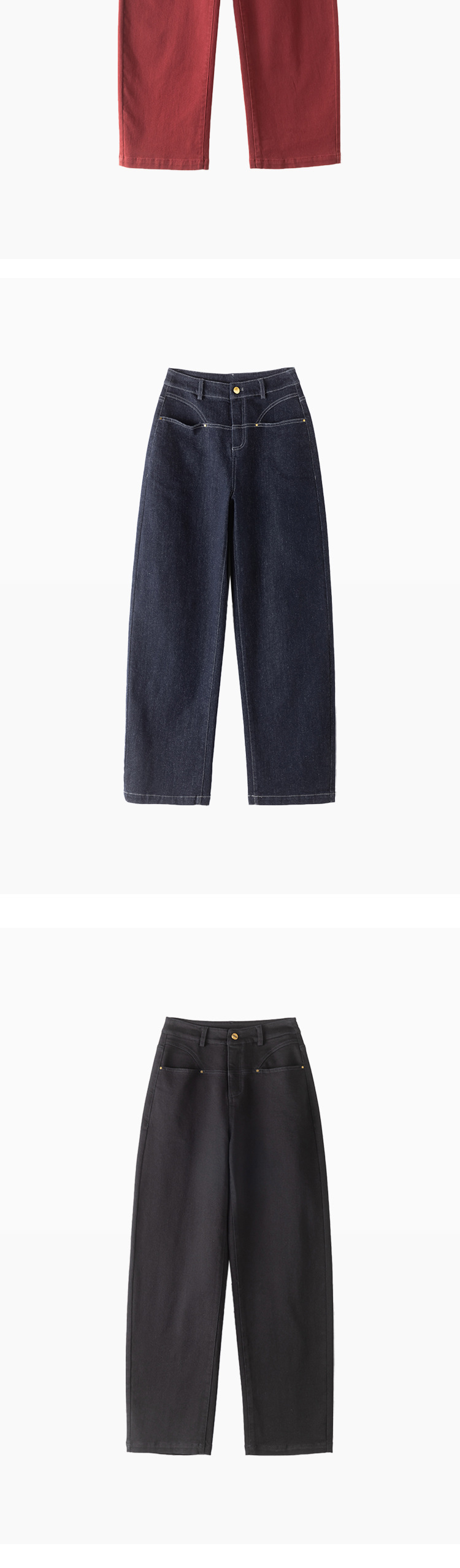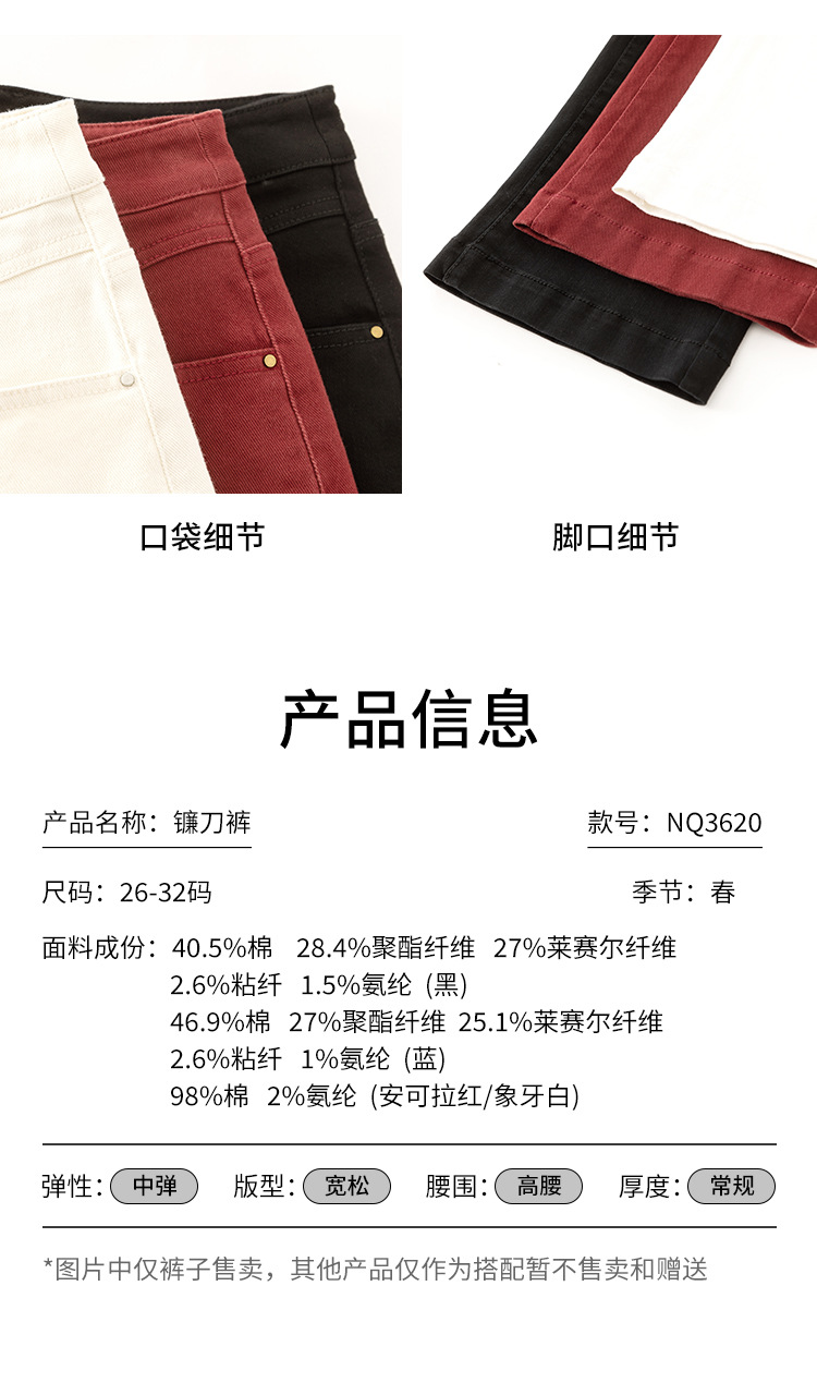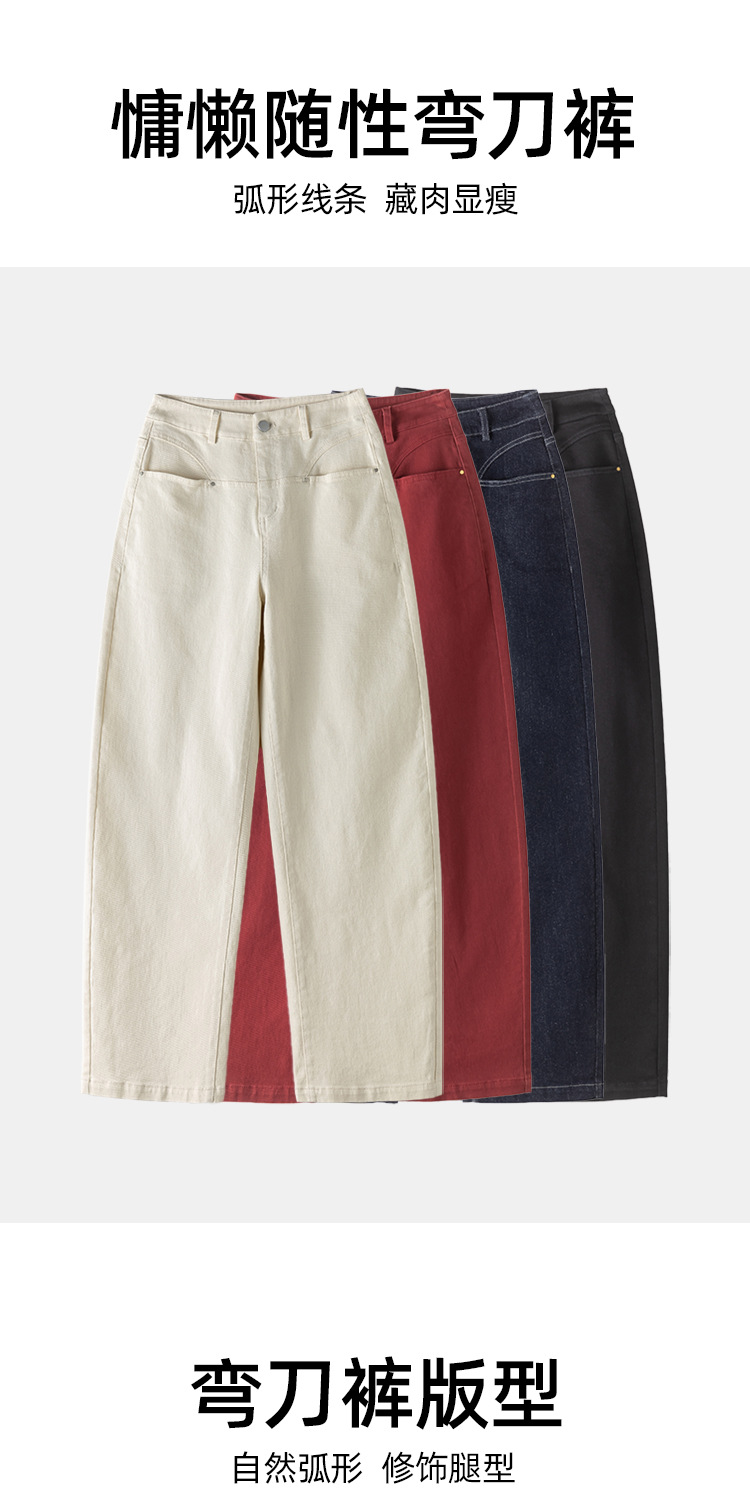하이웨이스트 벤딩 팬츠 슬림핏 청바지 여성용 2025 봄 신상 앙코라 레드 롱팬츠 포켓 슬림핏 NQ3620
