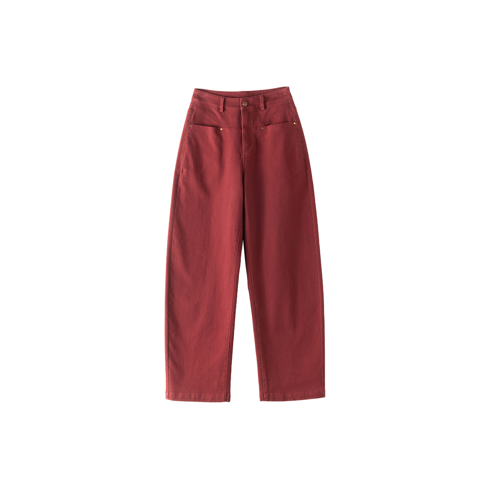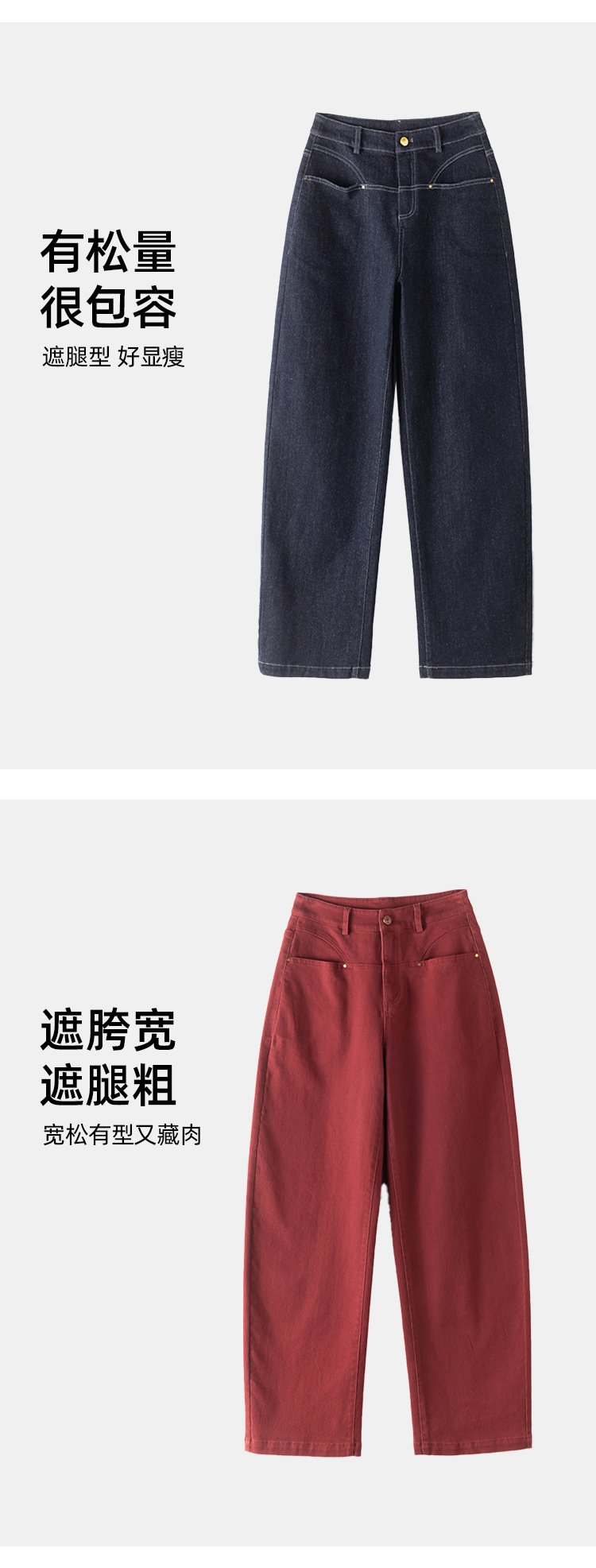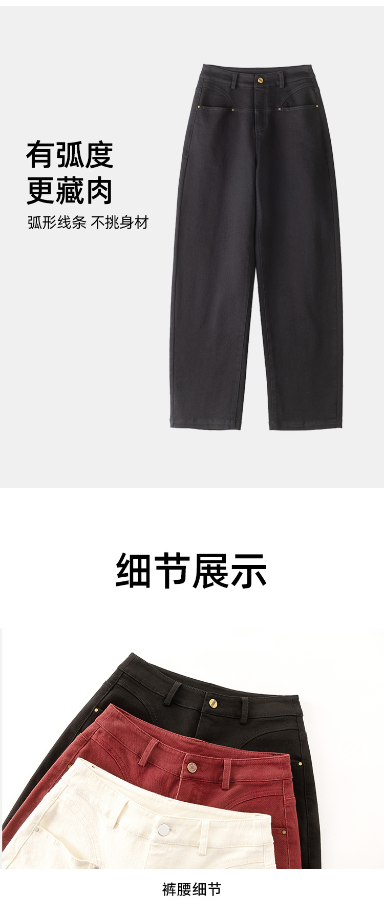 하이웨이스트 벤딩 팬츠 슬림핏 청바지 여성용 2025 봄 신상 앙코라 레드 롱팬츠 포켓 슬림핏 NQ3620