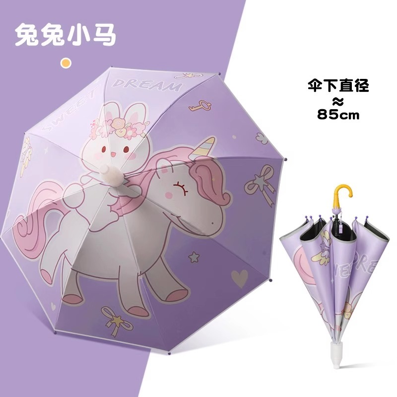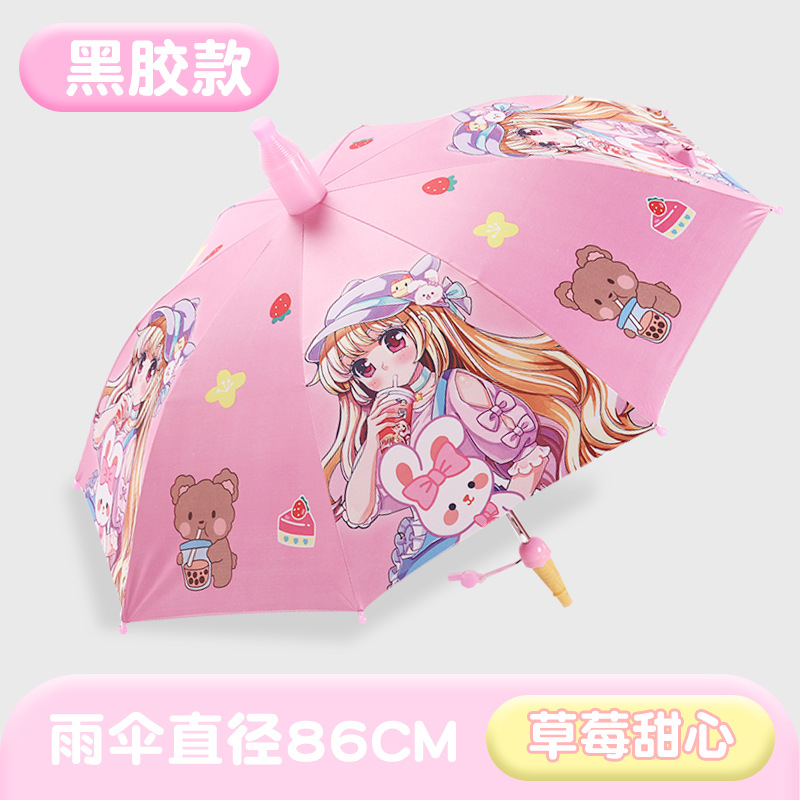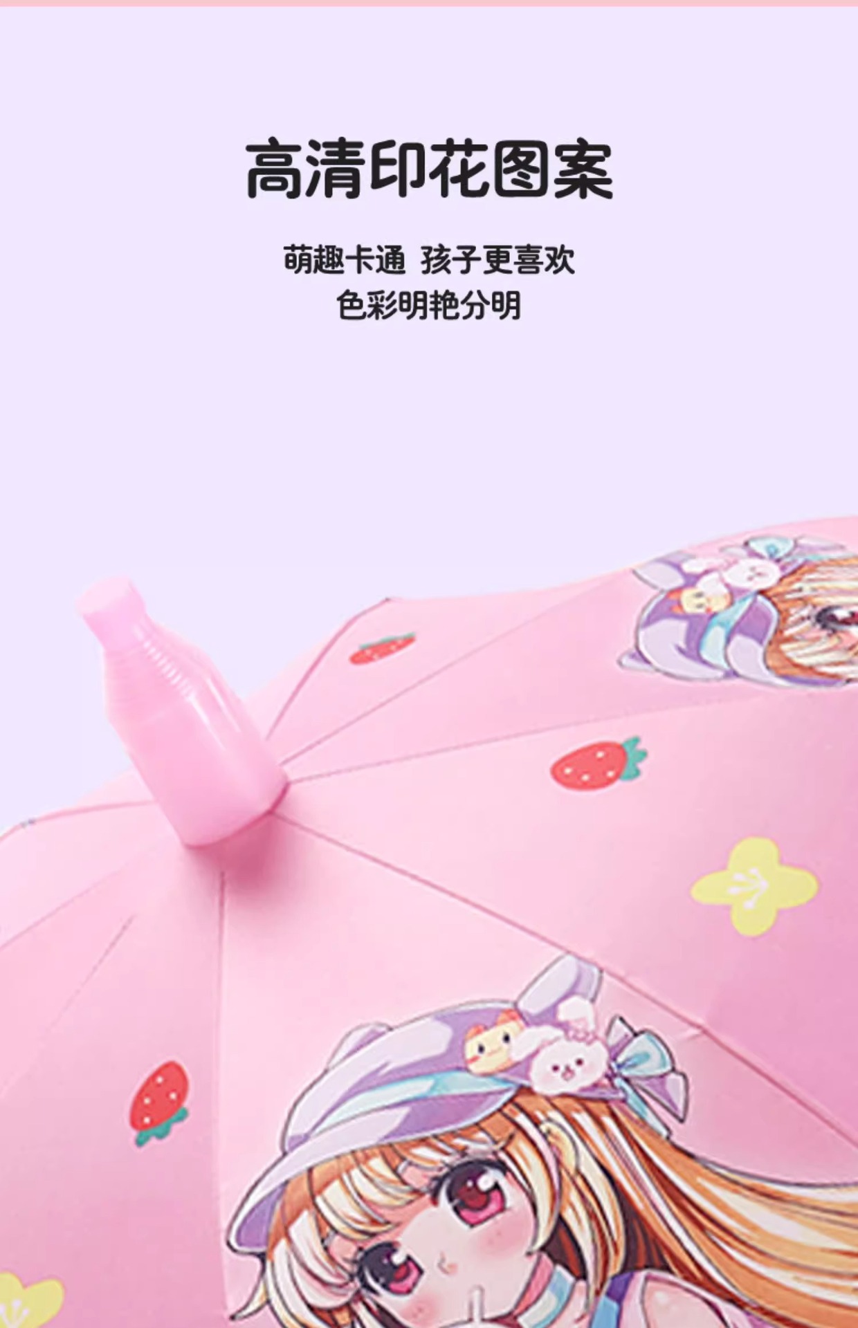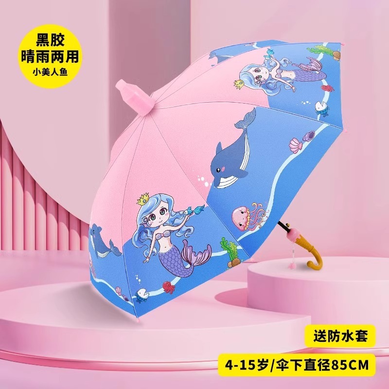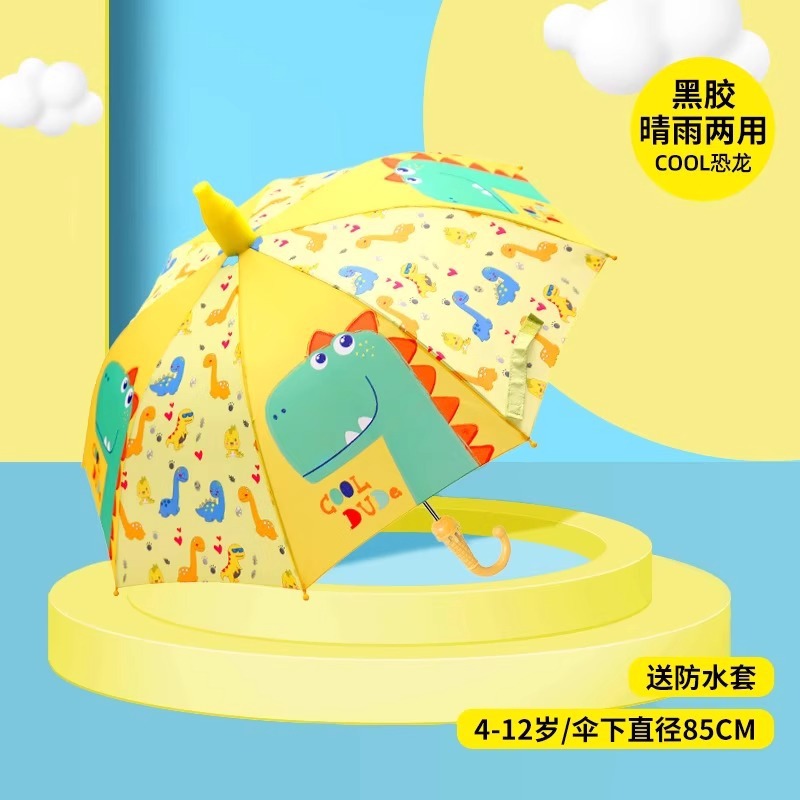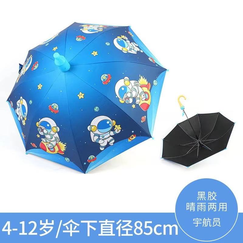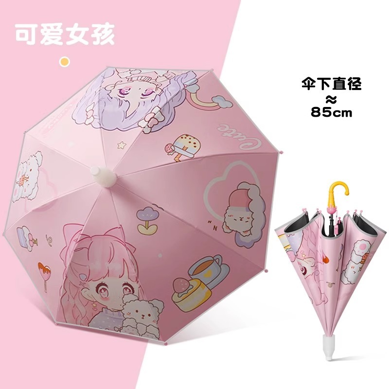 어린이 긴 손잡이 우산 맑고 비 이중 사용 귀여운 만화 선 스크린 검은 고무 양산 우산 소년 소녀 초등학생