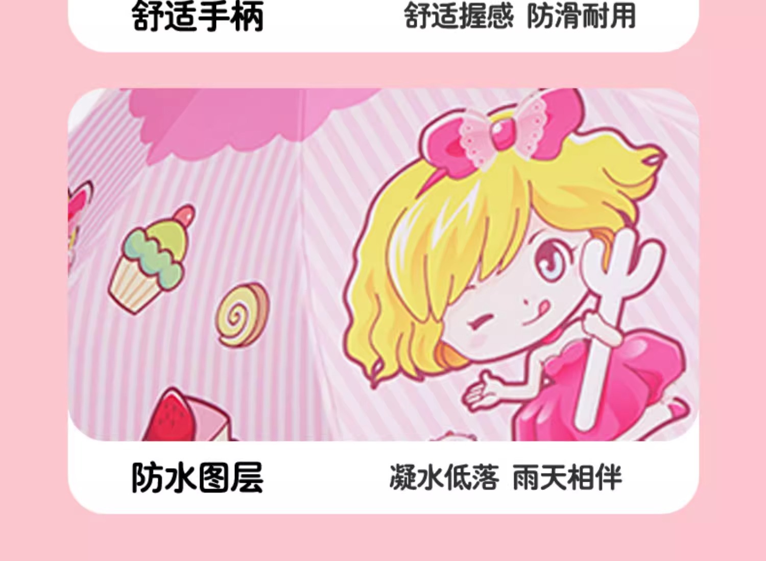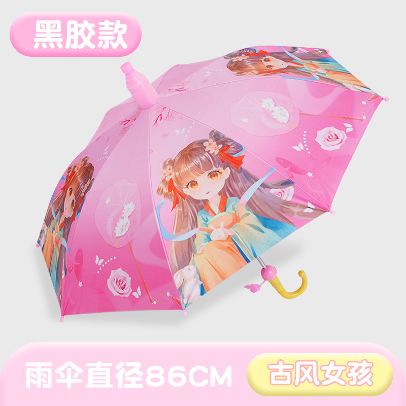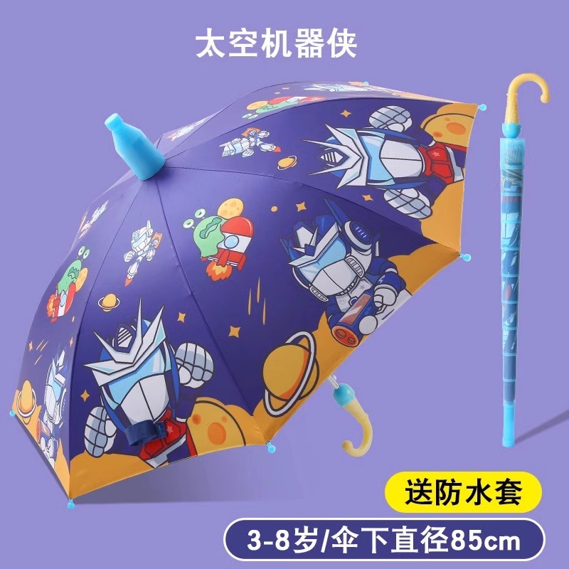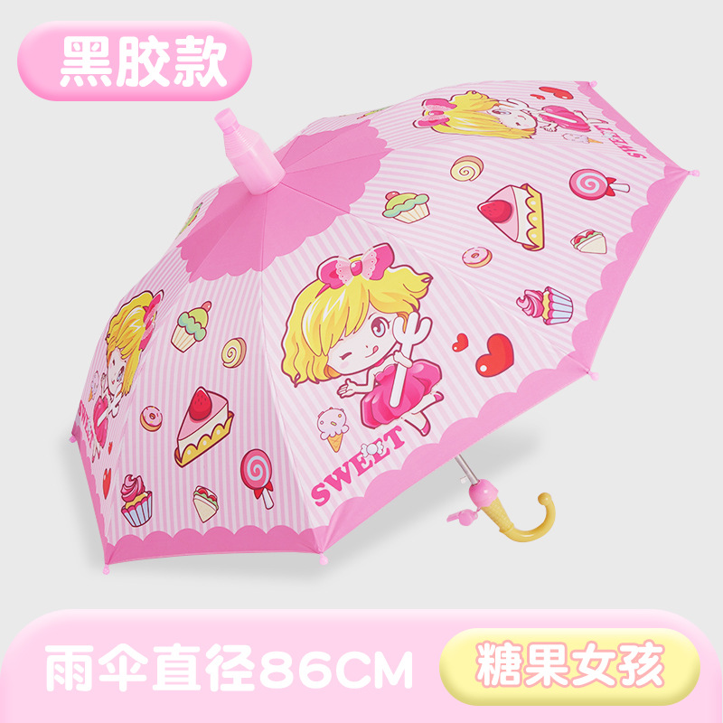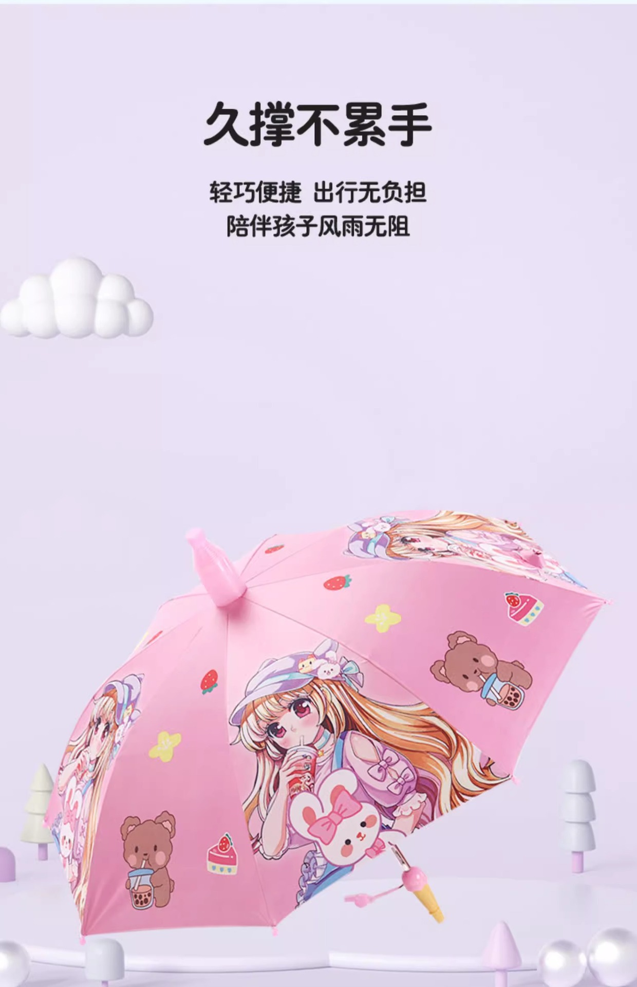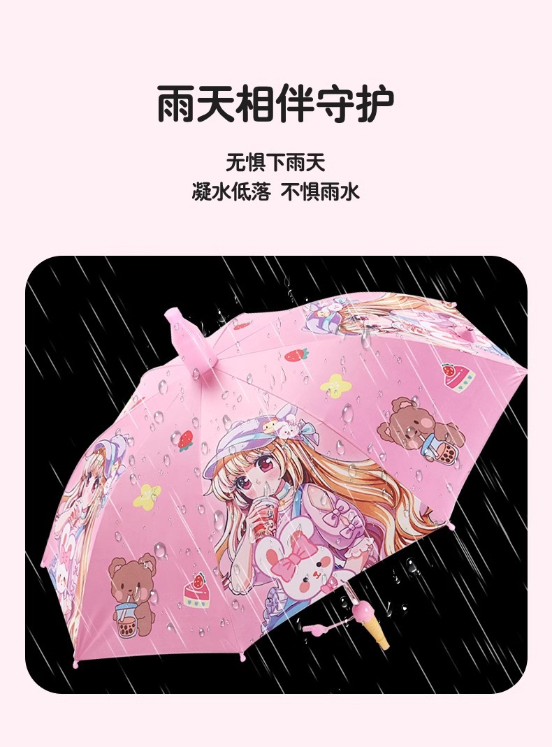 어린이 긴 손잡이 우산 맑고 비 이중 사용 귀여운 만화 선 스크린 검은 고무 양산 우산 소년 소녀 초등학생