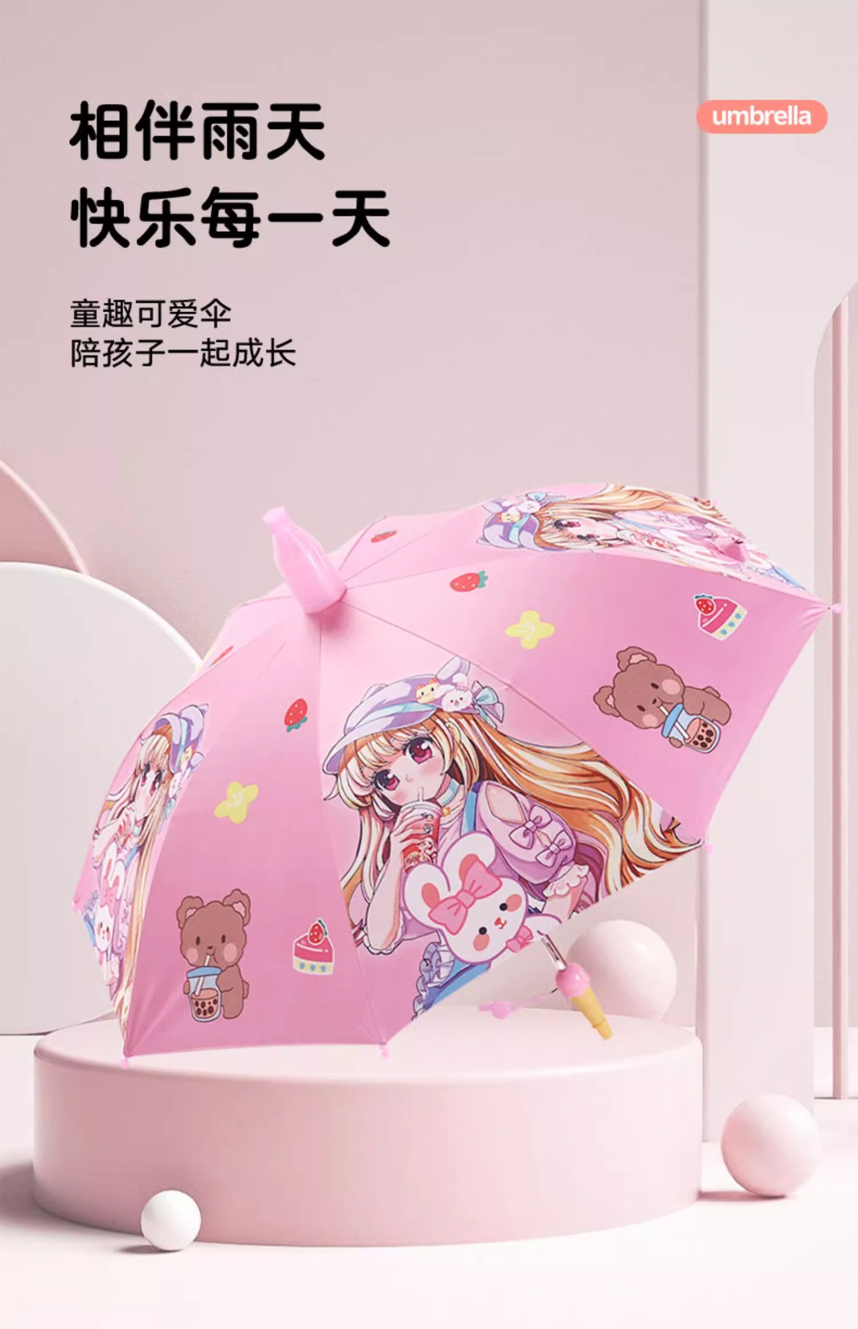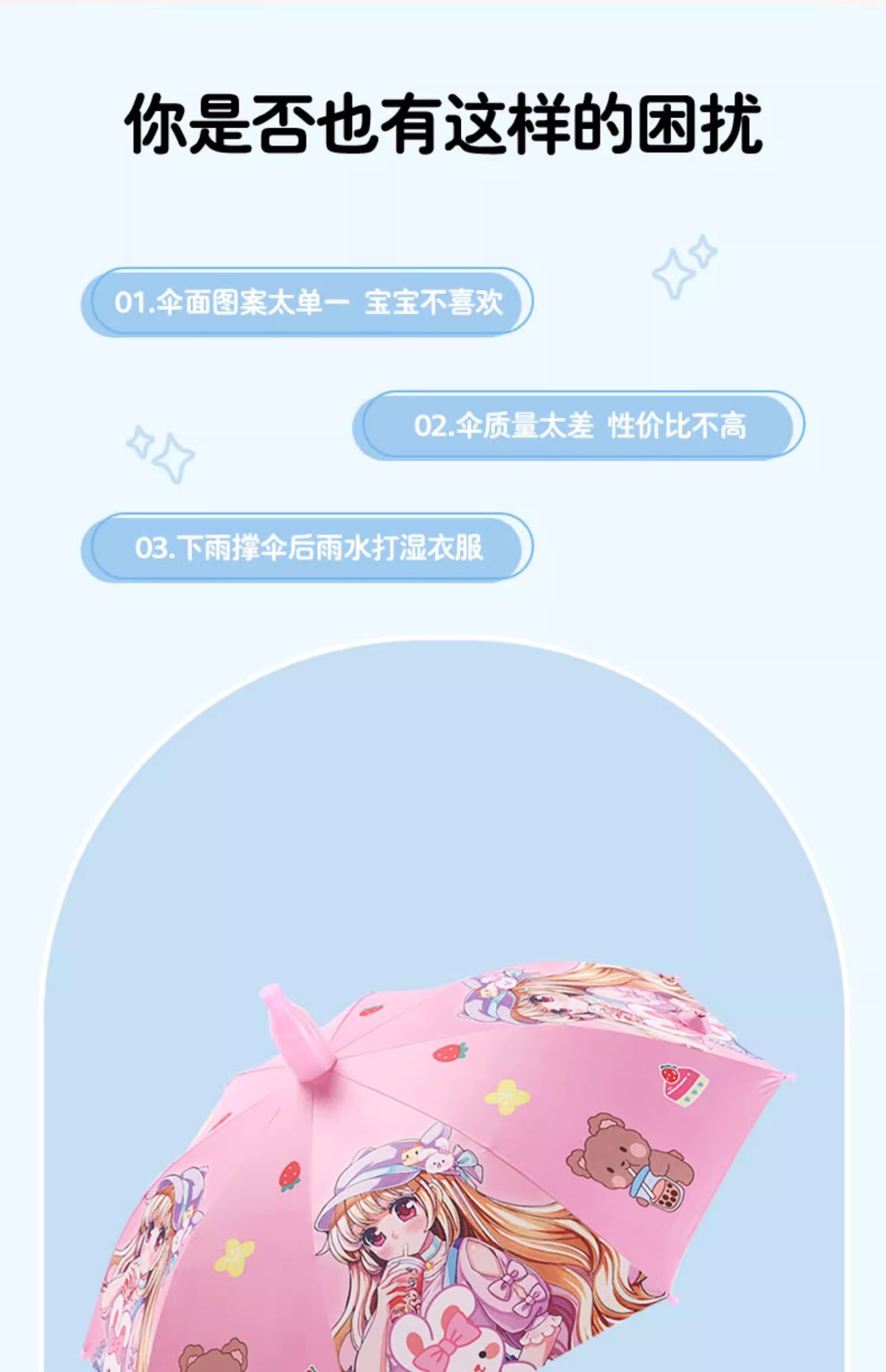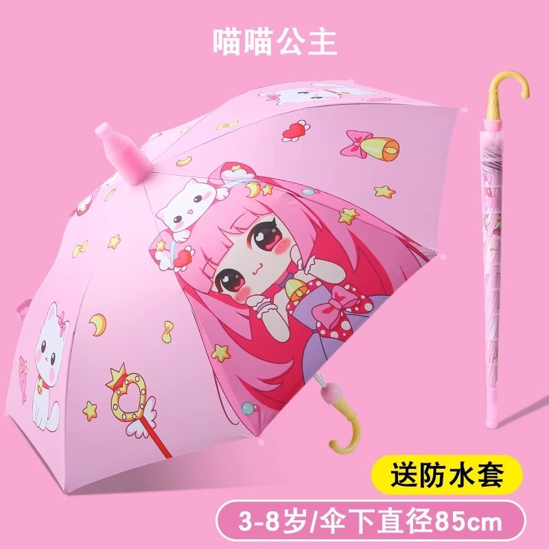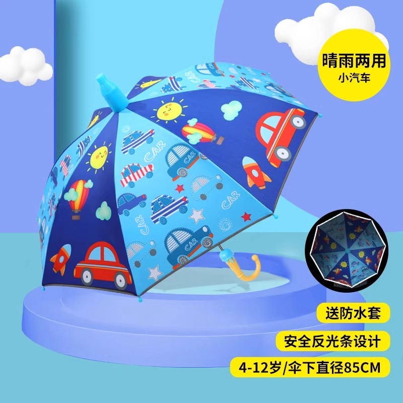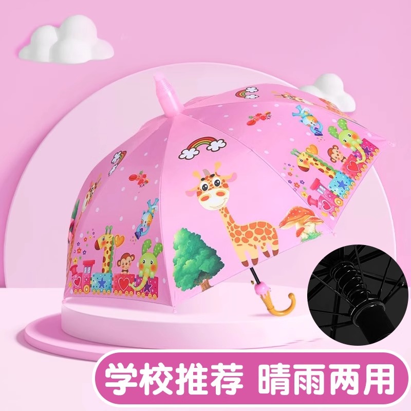 어린이 긴 손잡이 우산 맑고 비 이중 사용 귀여운 만화 선 스크린 검은 고무 양산 우산 소년 소녀 초등학생스토어 가기