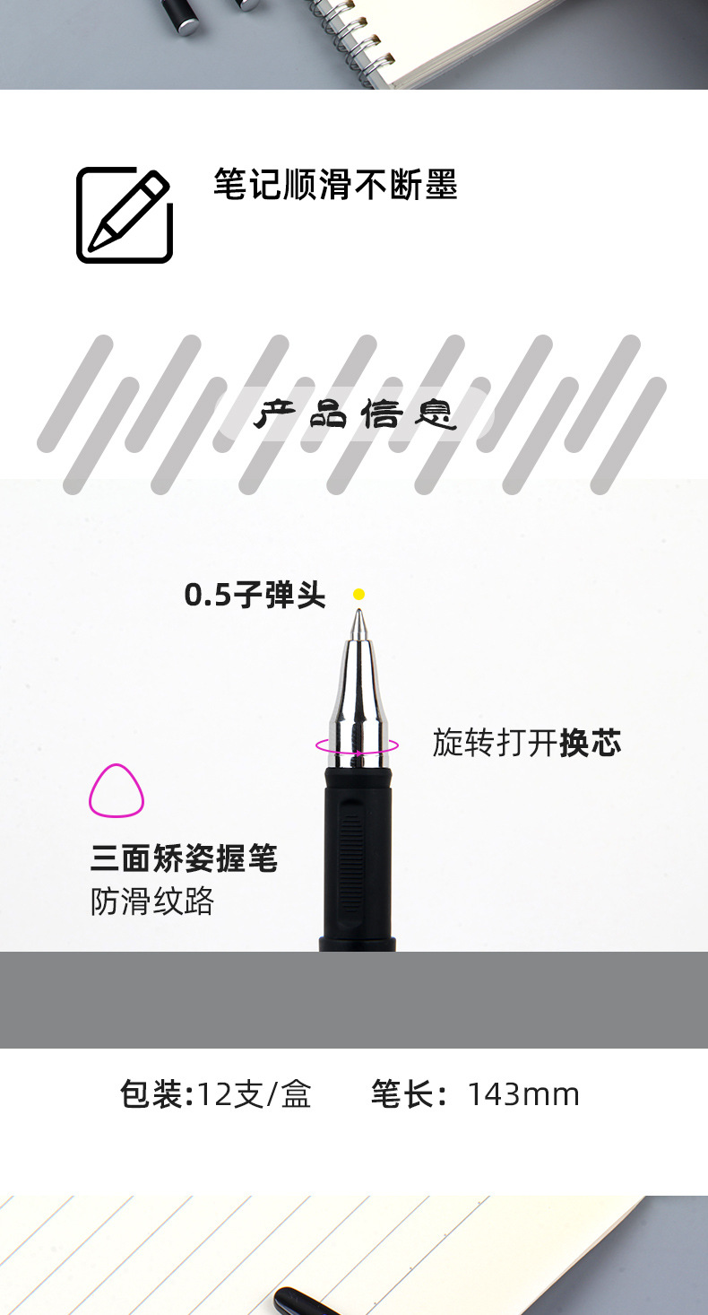 Tianzhuo 381 프로스트 로드 테스트 젤 펜 0.5 블랙 학생 탄소 펜 가치 펜 도매 문구