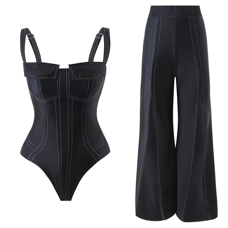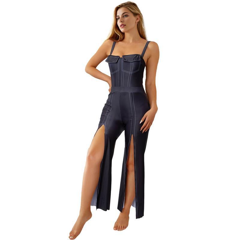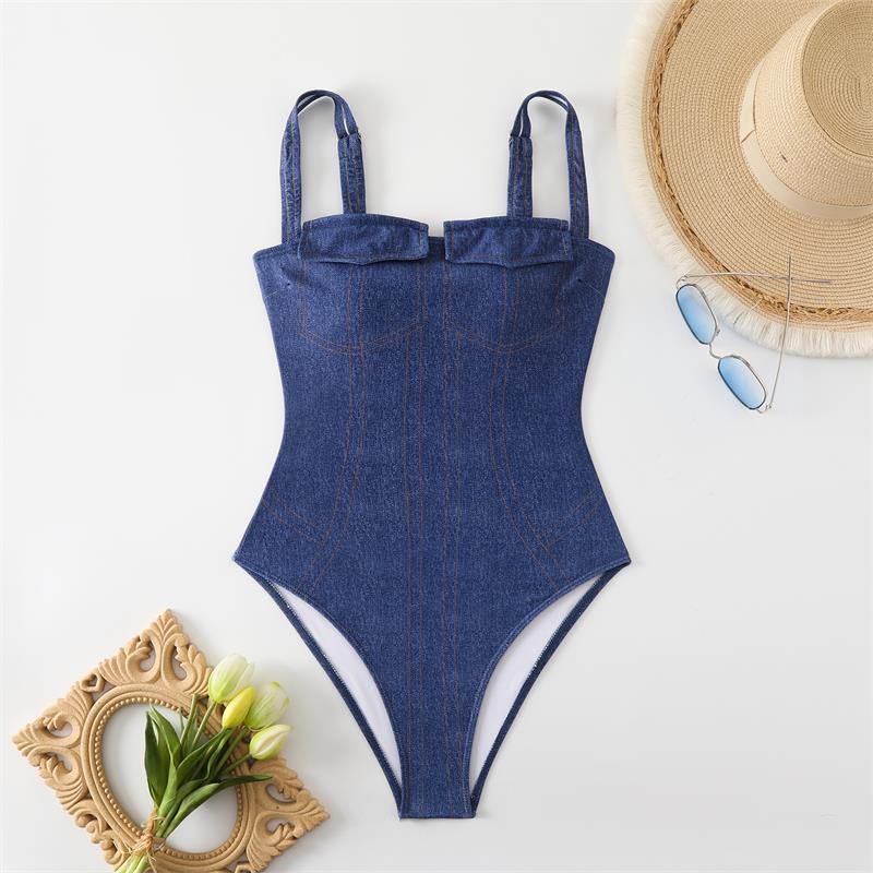 2025 국경 새 인쇄 된 유럽과 미국의 높은 탄성 데님 여성 수영복 세트 벨리 커버 슬림 수영복