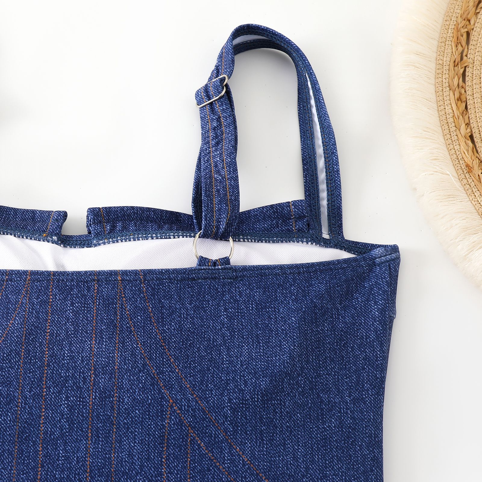 2025 국경 새 인쇄 된 유럽과 미국의 높은 탄성 데님 여성 수영복 세트 벨리 커버 슬림 수영복스토어 가기