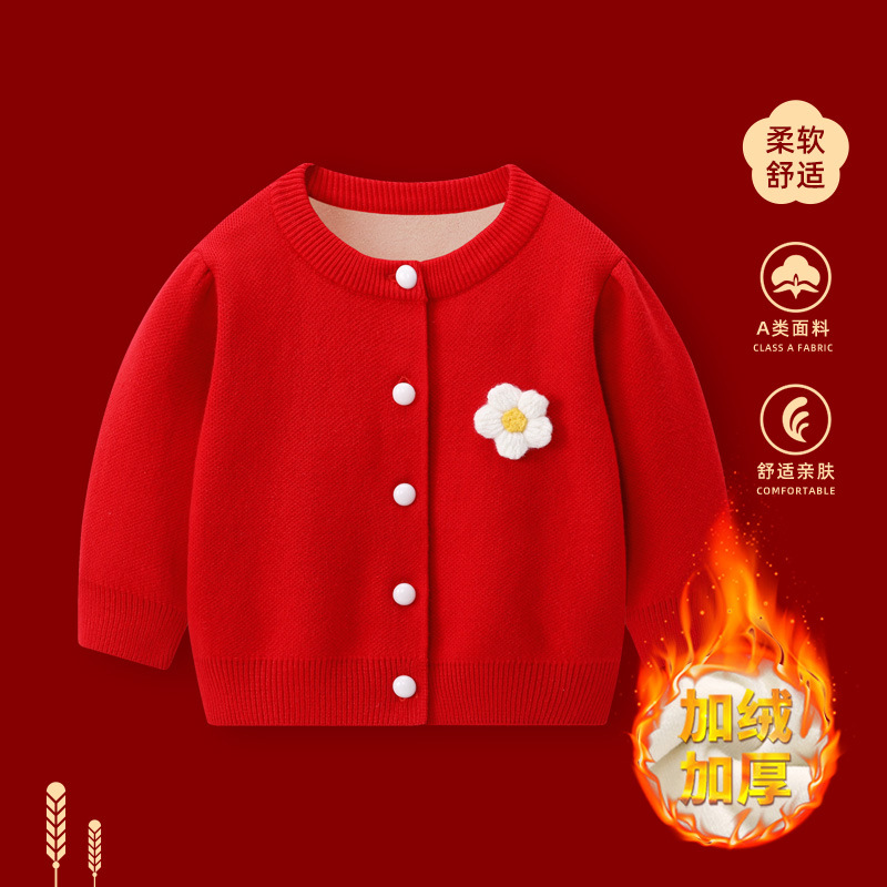 여아 스웨터 2026 신상 가을 겨울 니트 플리스 아기 코트 여아옷 겨울 상의 스웨터