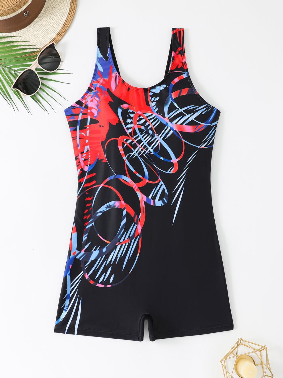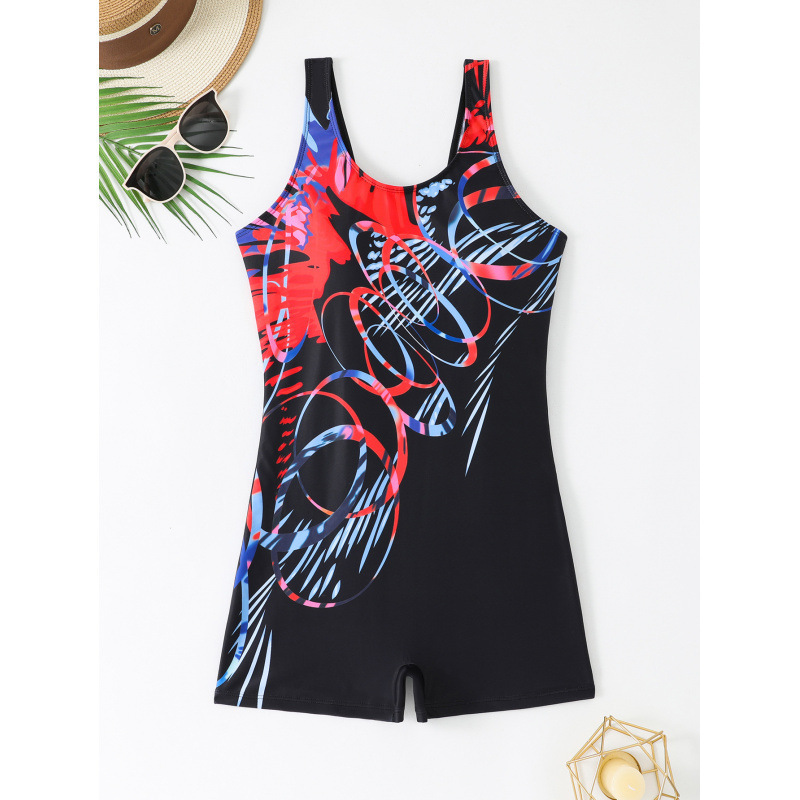 2025 대외 무역 결합 복서 스포츠 작은 가슴 수영복 여성 보수 수영복 빈티지 휴가 인쇄 수영복스토어 가기