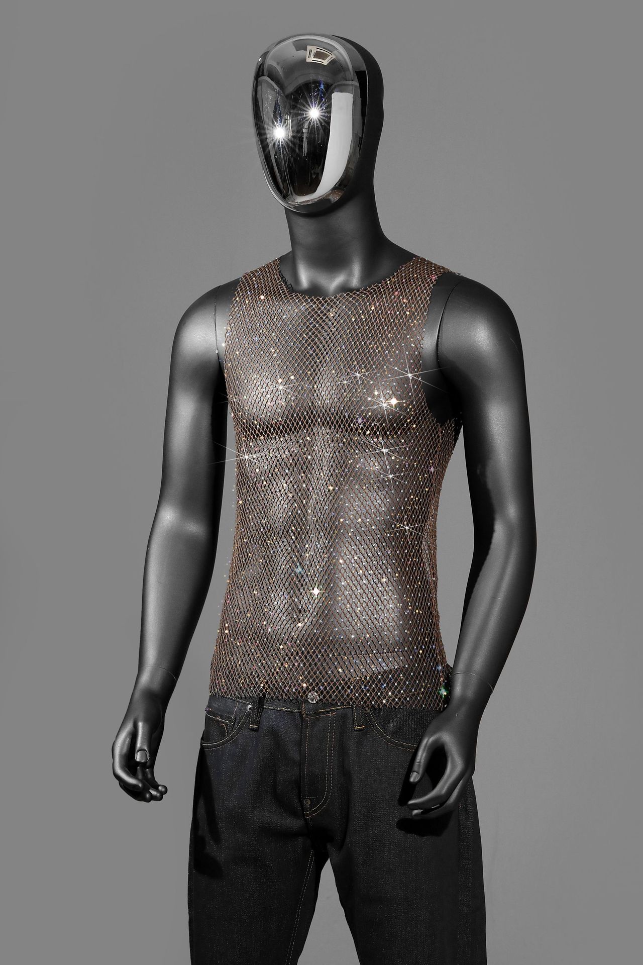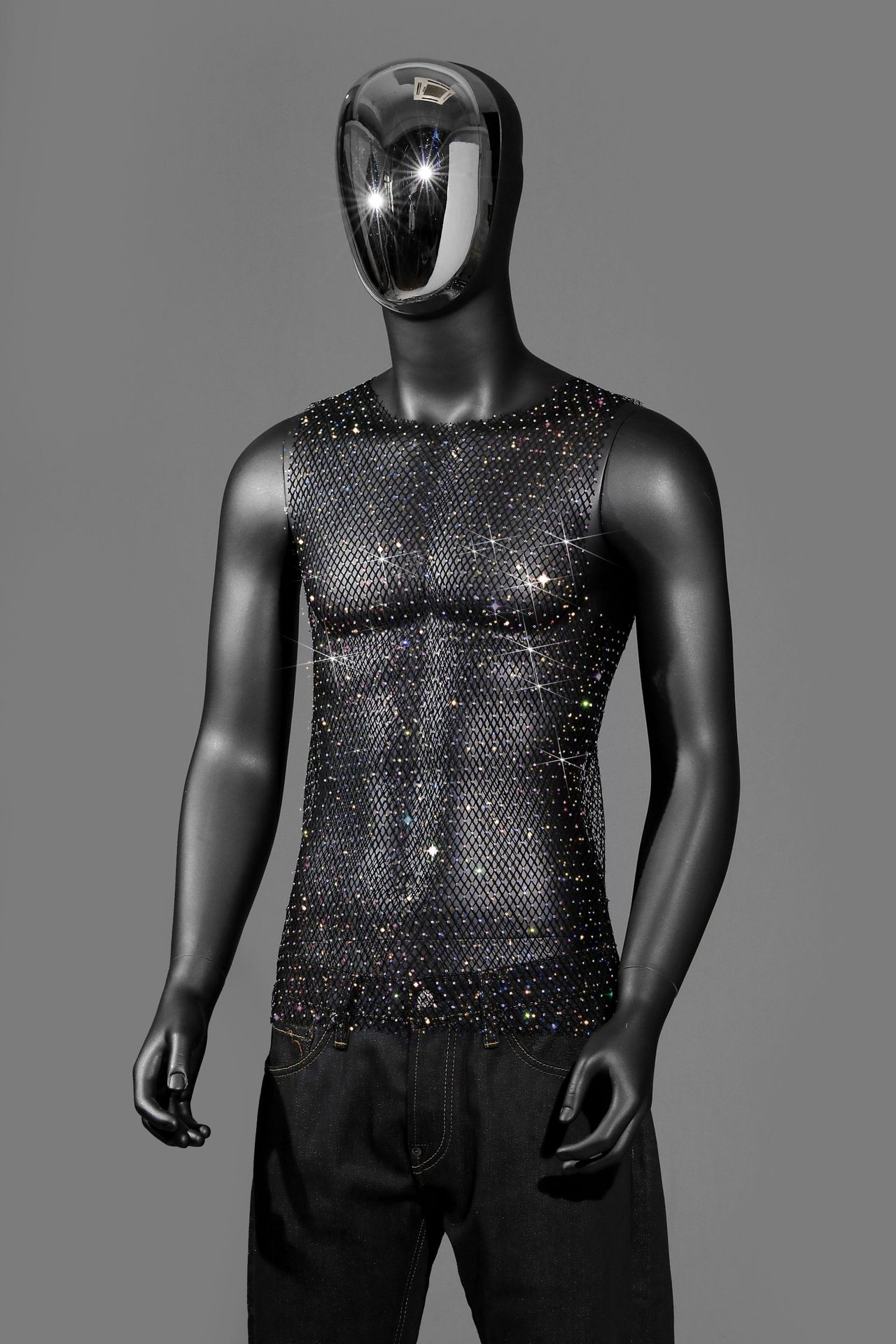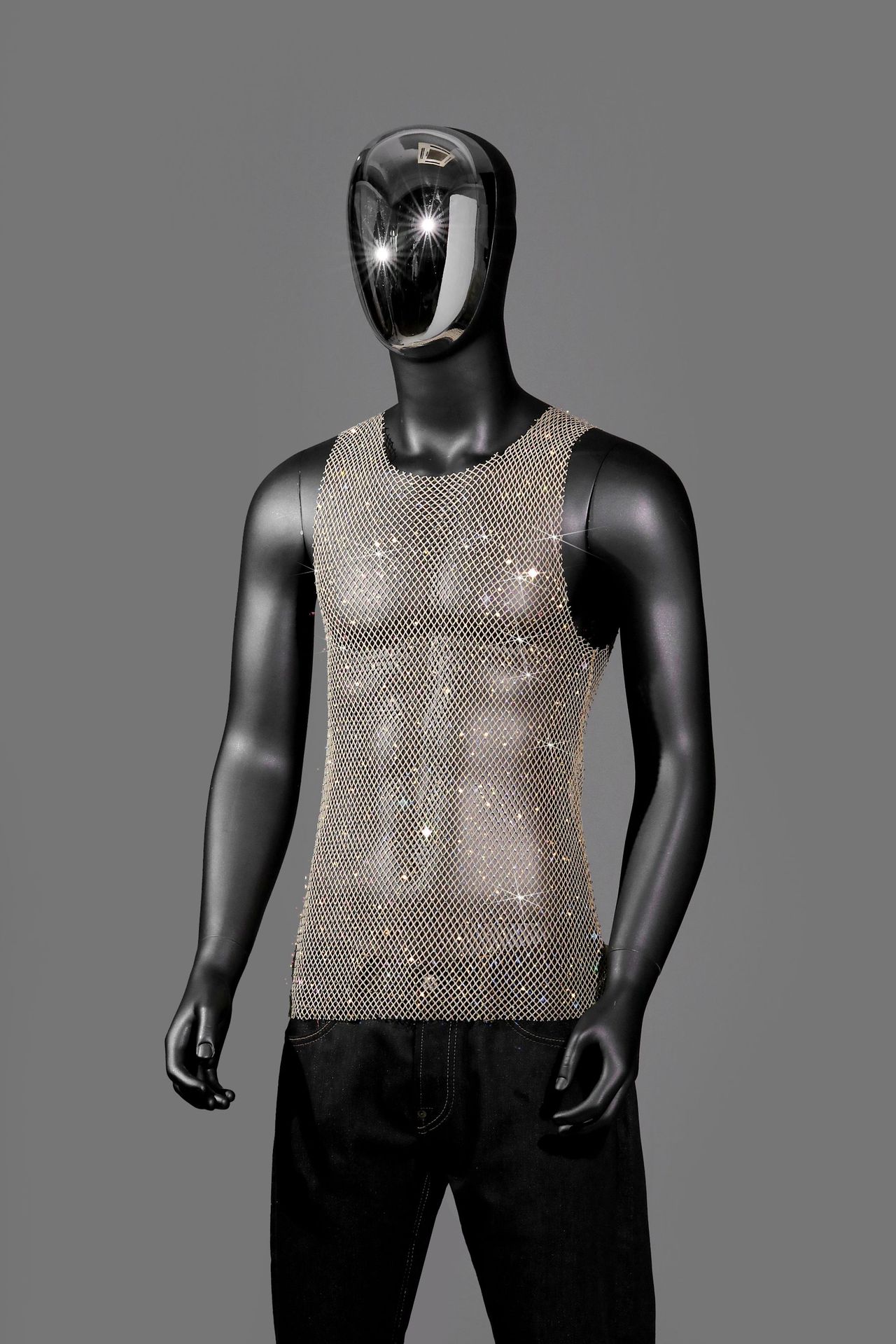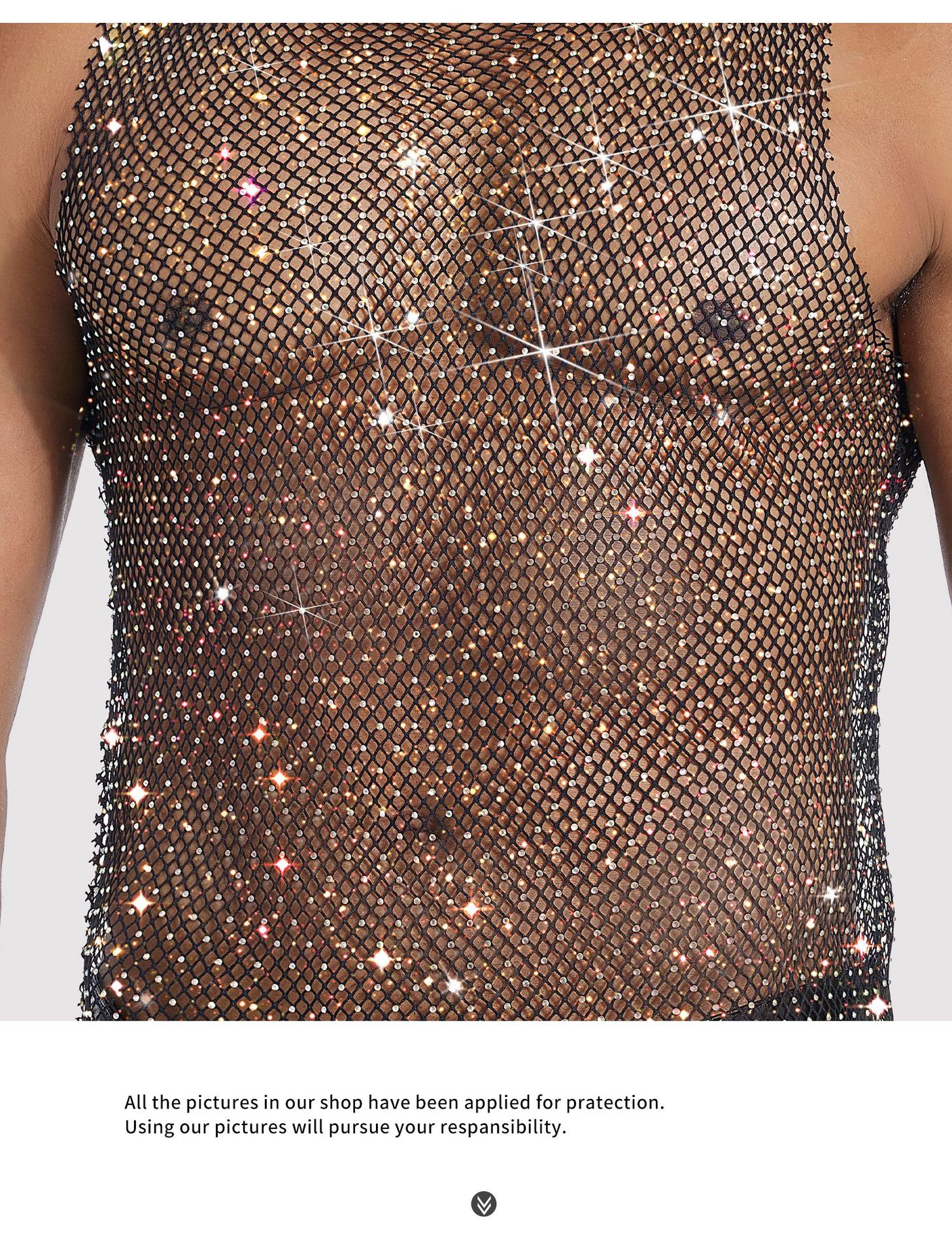 아마존 유럽과 미국의 패션 핫 다이아몬드 의류 그리드 플래시 다이아몬드 남성베이스 셔츠 파티 섹시한 모조 다이아몬드 탑 블라우스스토어 가기