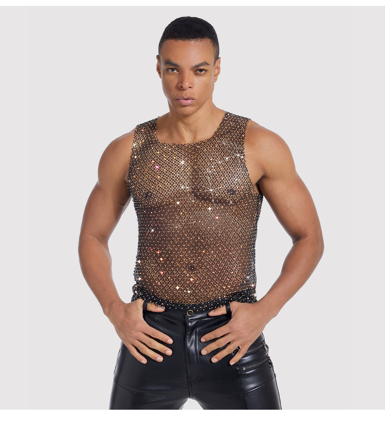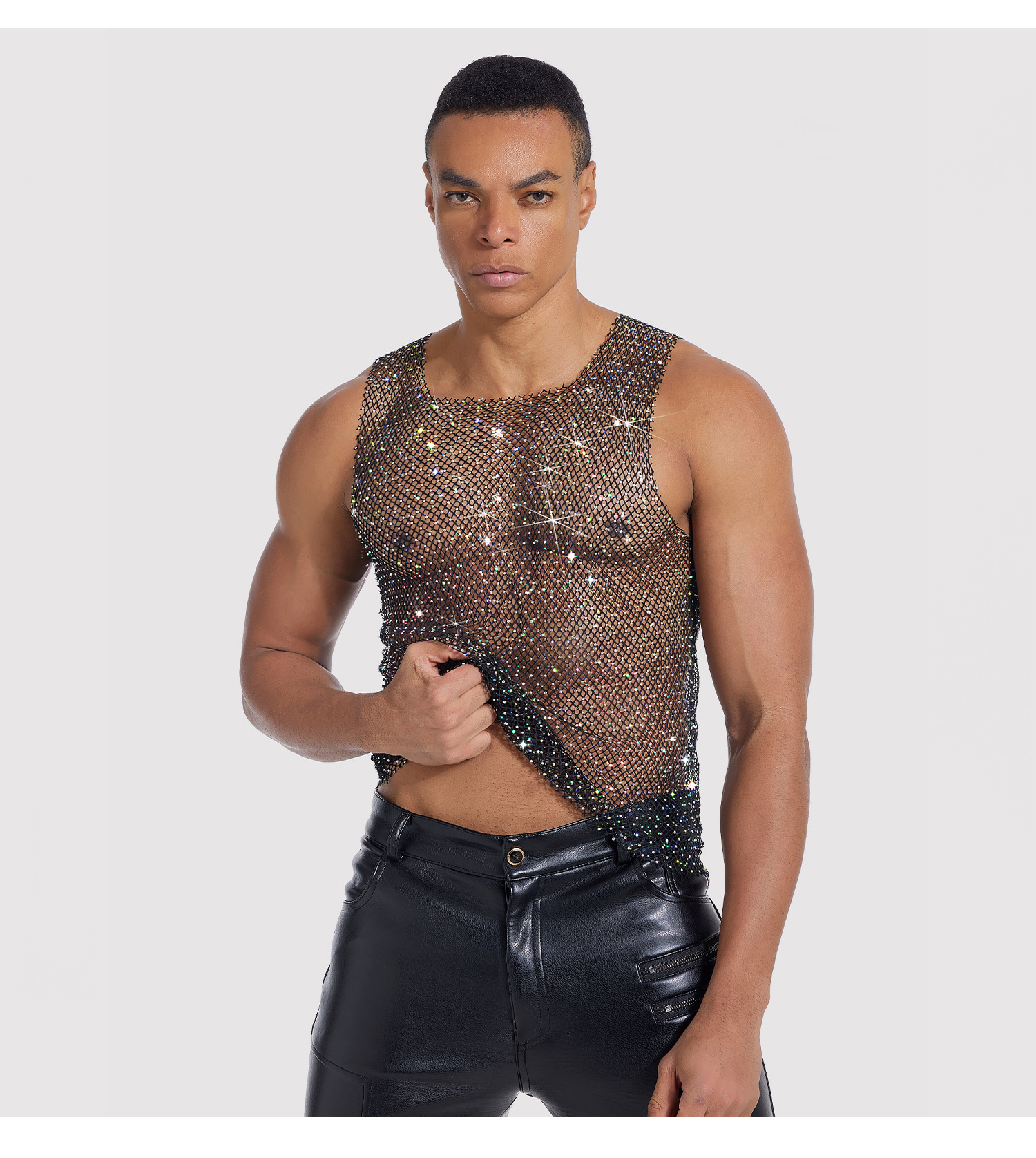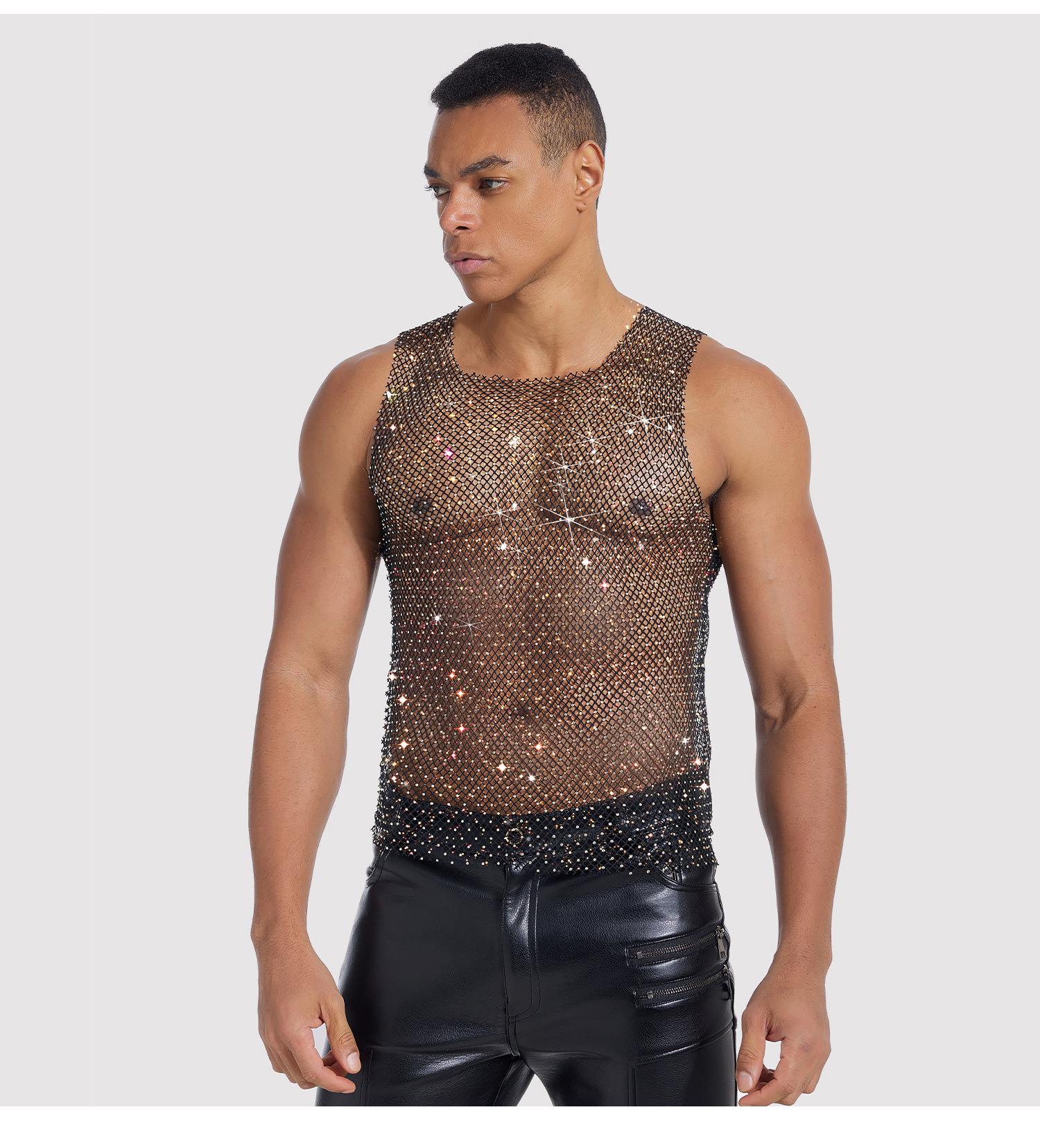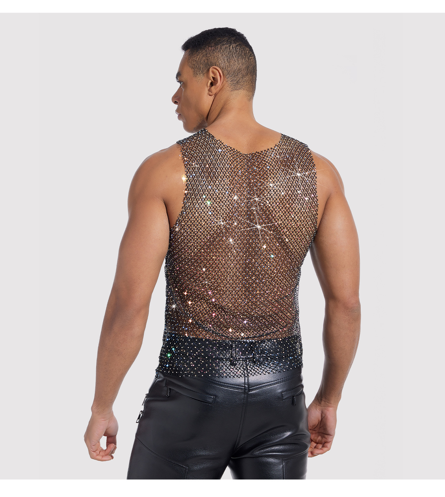 아마존 유럽과 미국의 패션 핫 다이아몬드 의류 그리드 플래시 다이아몬드 남성베이스 셔츠 파티 섹시한 모조 다이아몬드 탑 블라우스