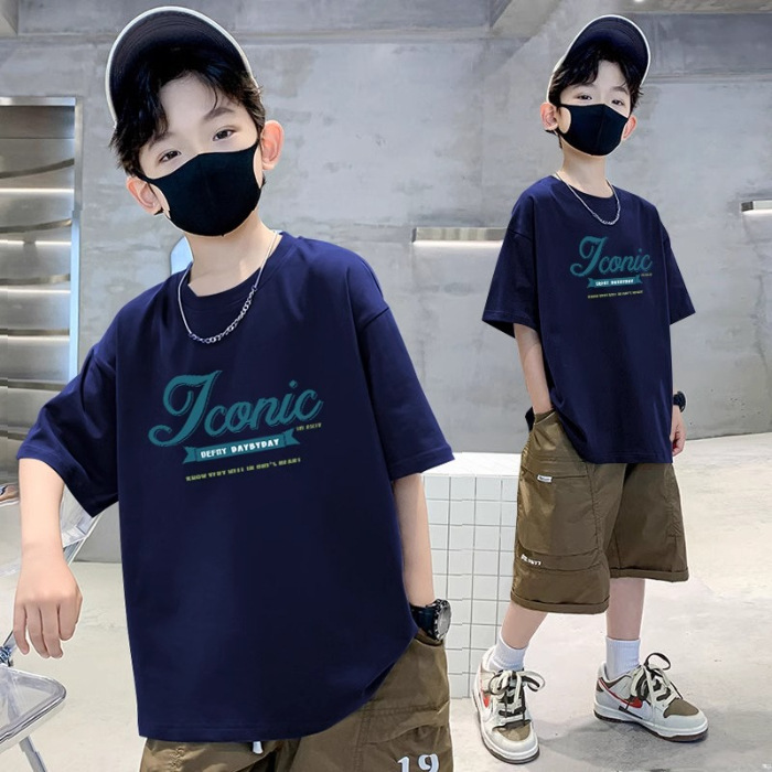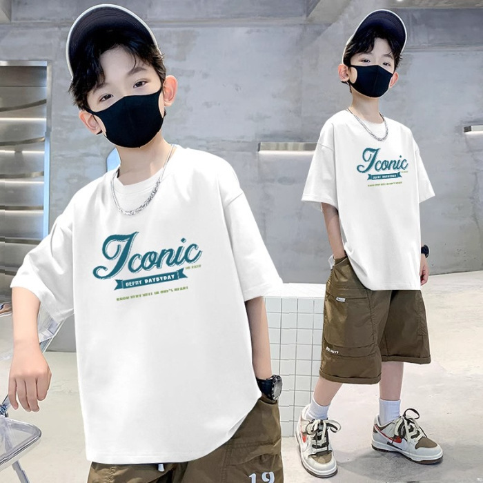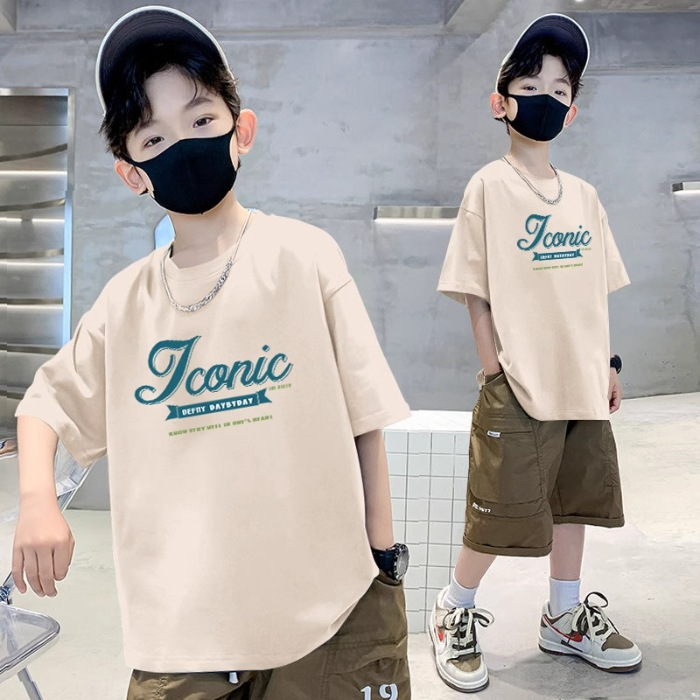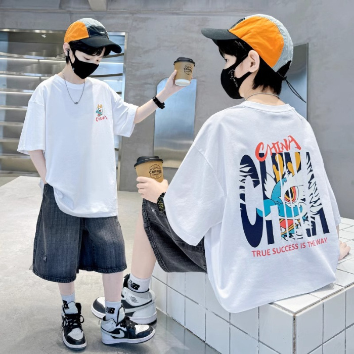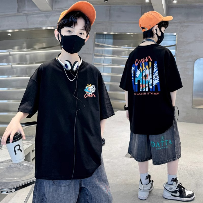 트렌디 한 브랜드 반소매 코튼 어린이 새 여름 루즈 티셔츠 반소매 탑 더피 핸섬 보이즈 2024 여름