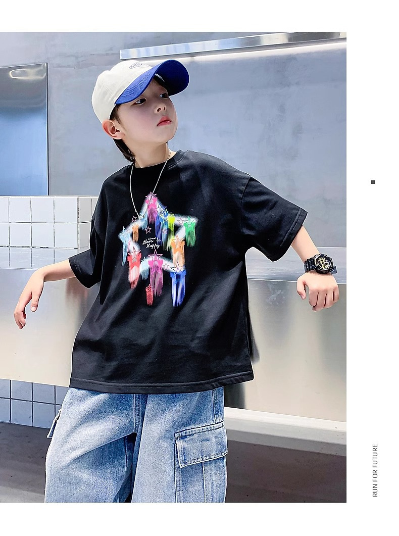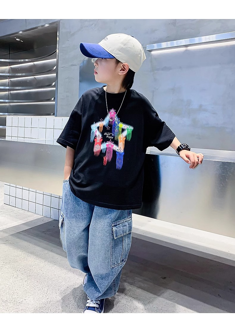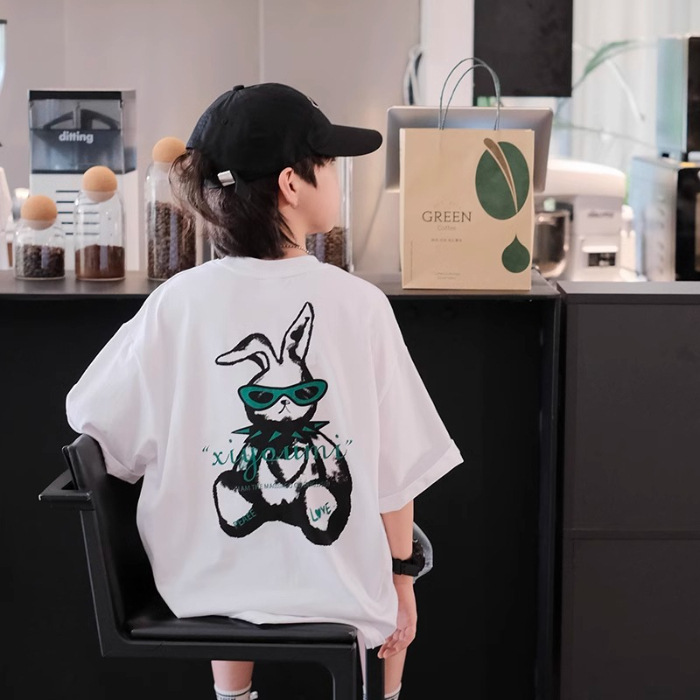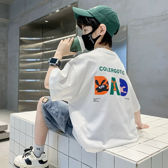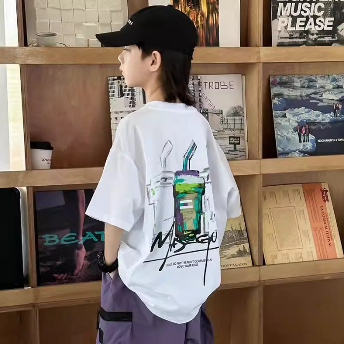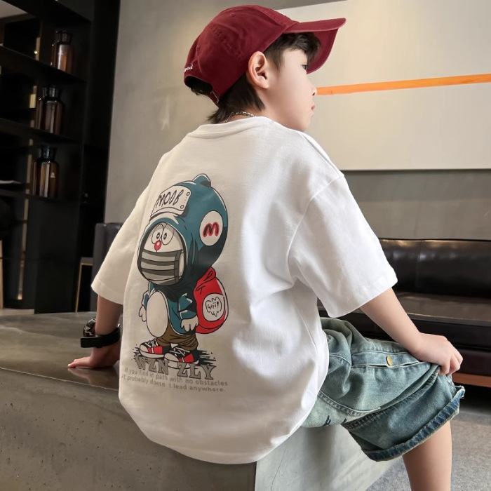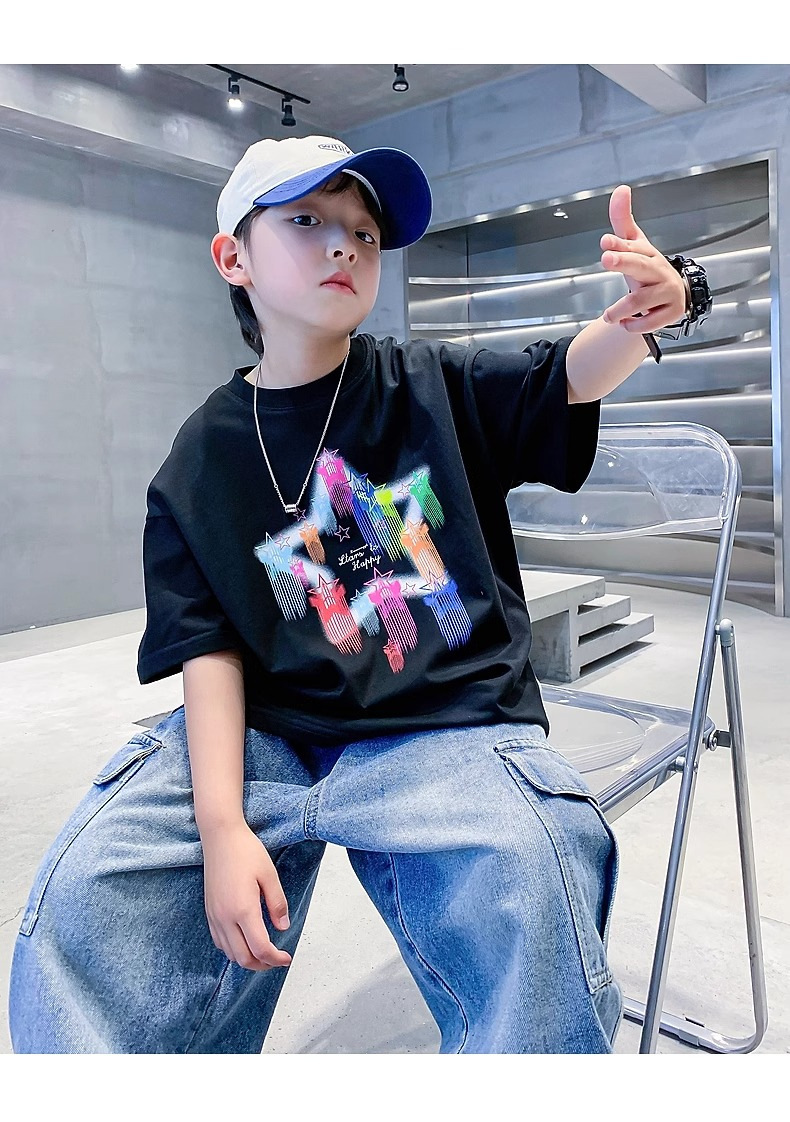 트렌디 한 브랜드 반소매 코튼 어린이 새 여름 루즈 티셔츠 반소매 탑 더피 핸섬 보이즈 2024 여름스토어 가기