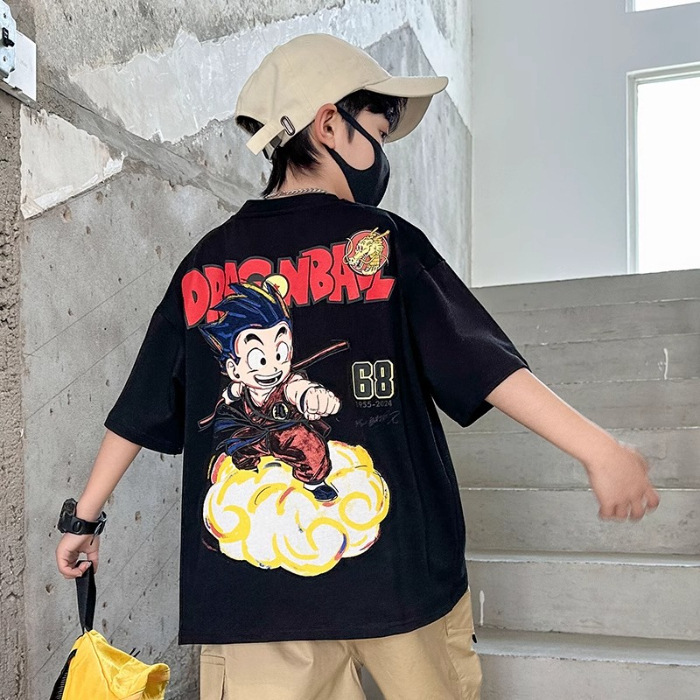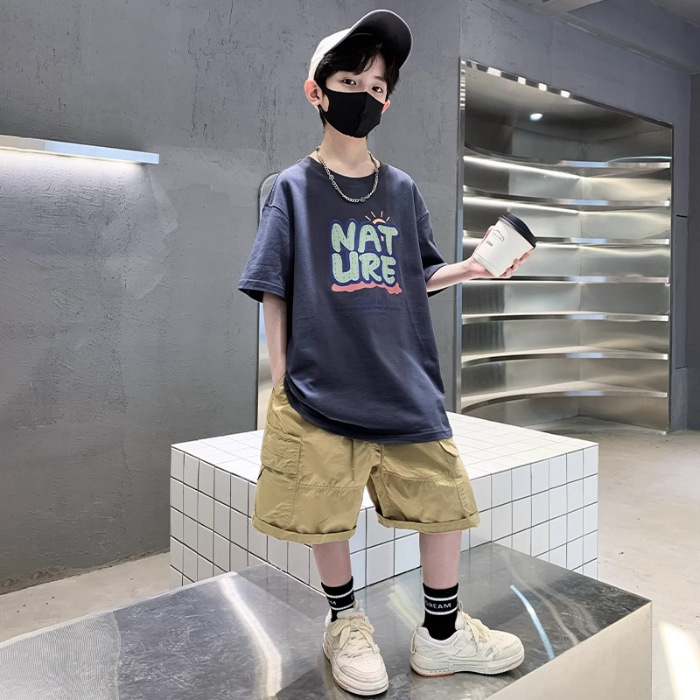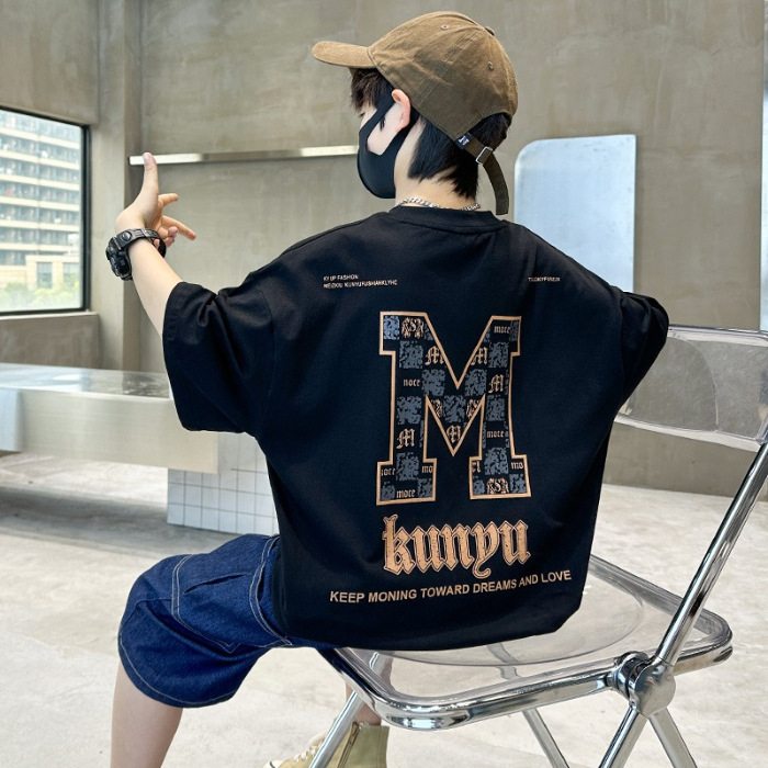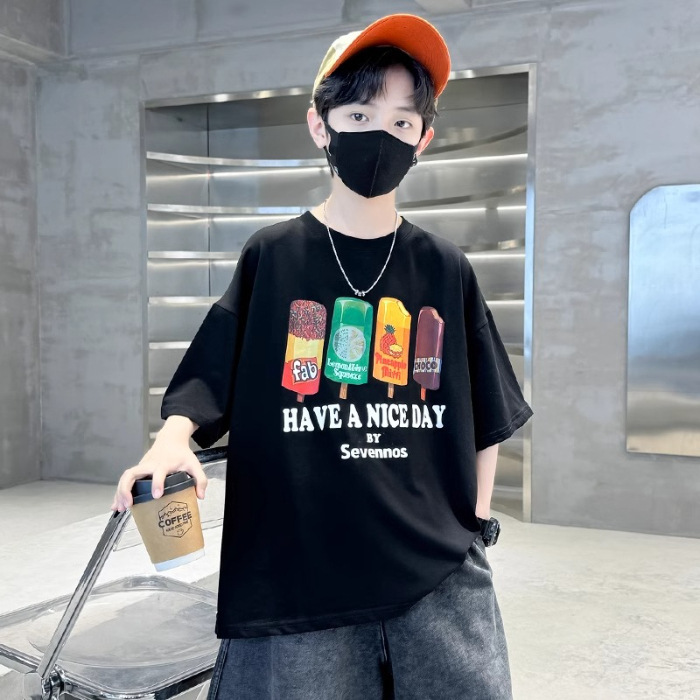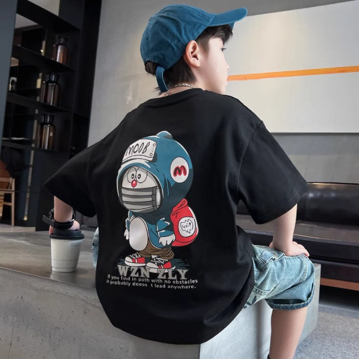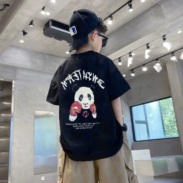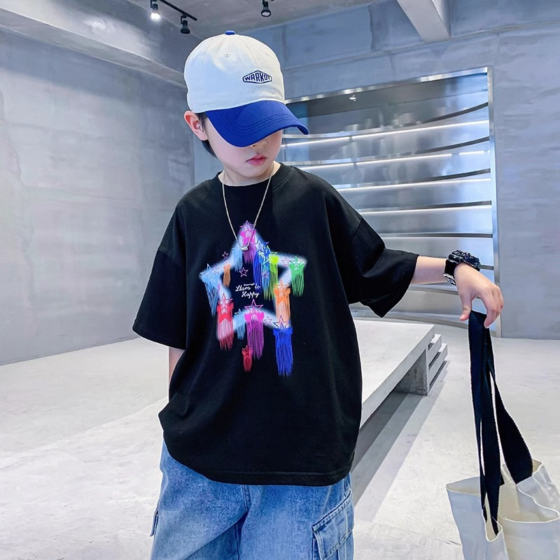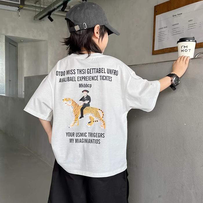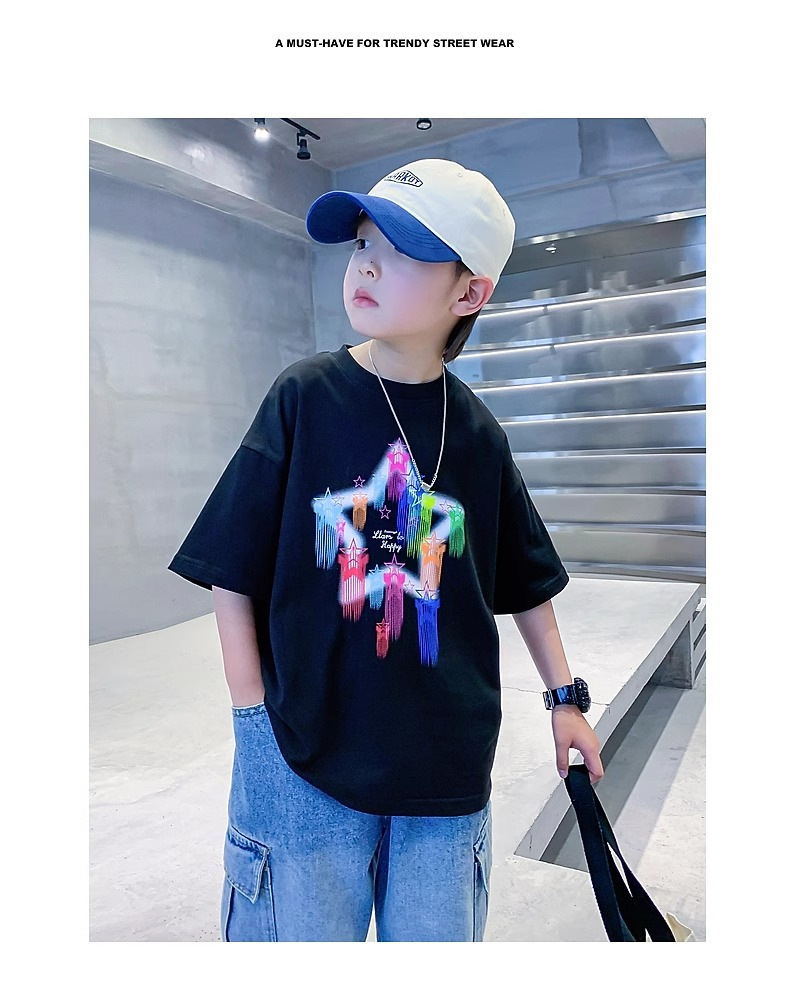 트렌디 한 브랜드 반소매 코튼 어린이 새 여름 루즈 티셔츠 반소매 탑 더피 핸섬 보이즈 2024 여름스토어 가기