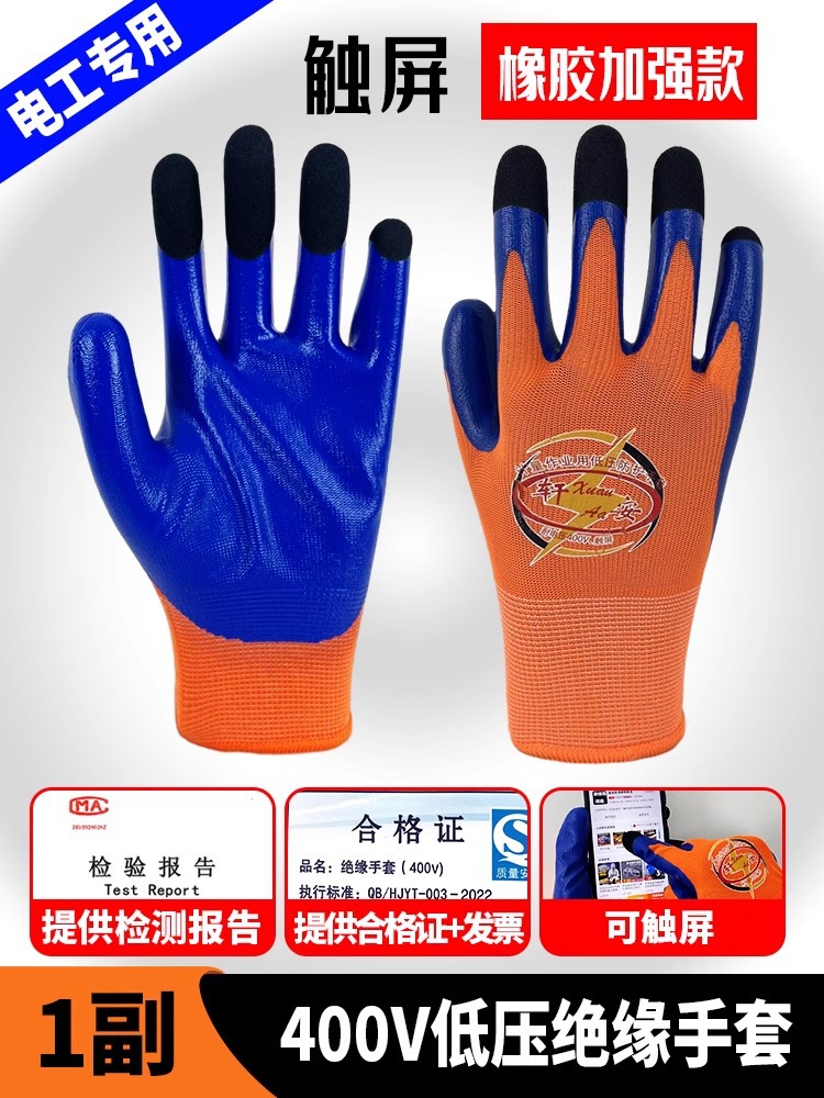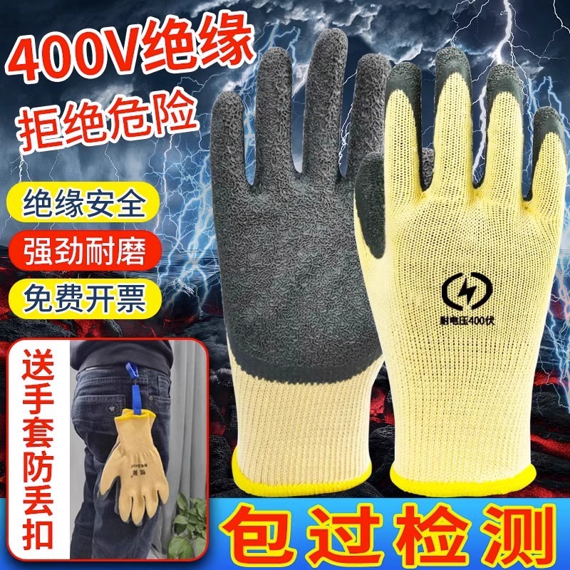 • 400V 저전압 절연 장갑 [통기성 및 유연한 터치 스크린 모델](1쌍) 장갑 분실 방지 버클 포함