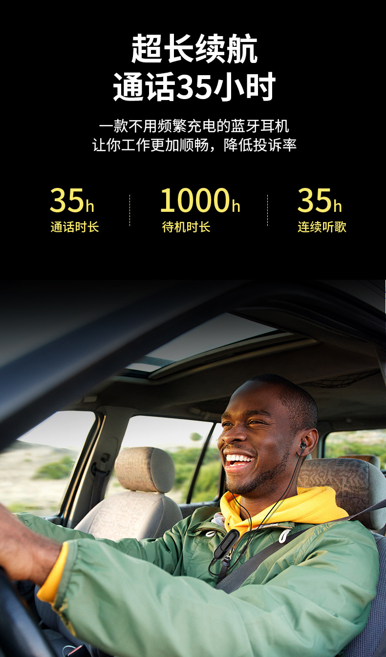 모조 공장 이어버드 블루투스 헤드셋 라발리에 수신기 긴 대기 시간 대용량 배터리로 노래 듣기 및 소음 감소를 위해 게으른 작업스토어 가기