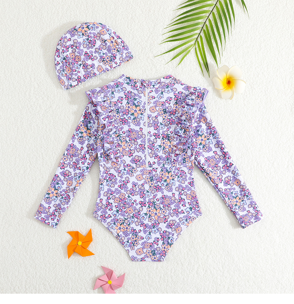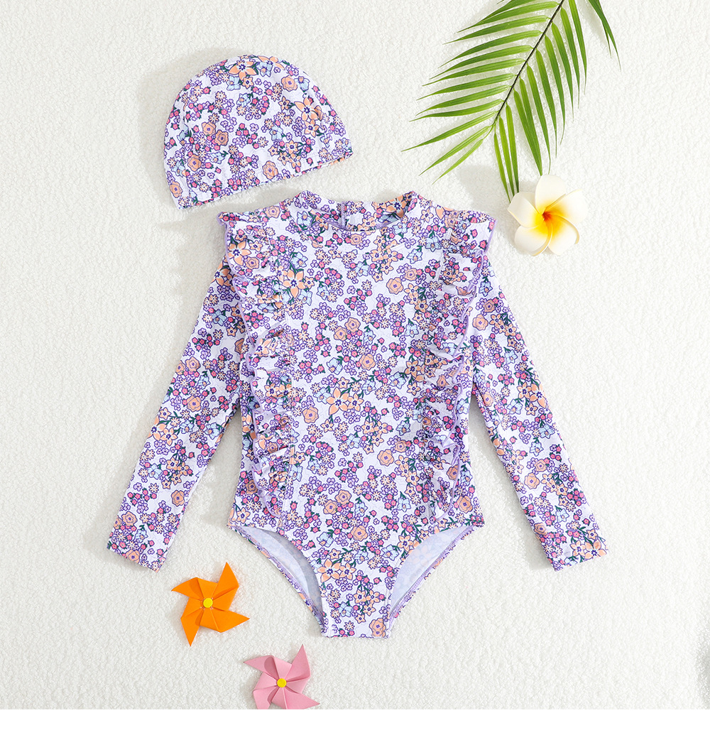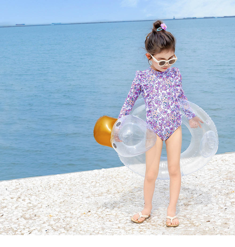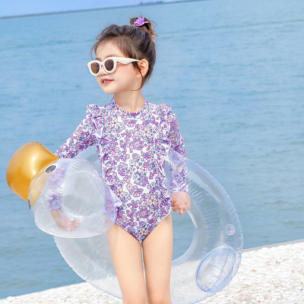 어린이 수영복 여아용 원피스 속건성 긴팔 수영복 유아용 수영복 도매 수영모 한국 스타일 작은 공주