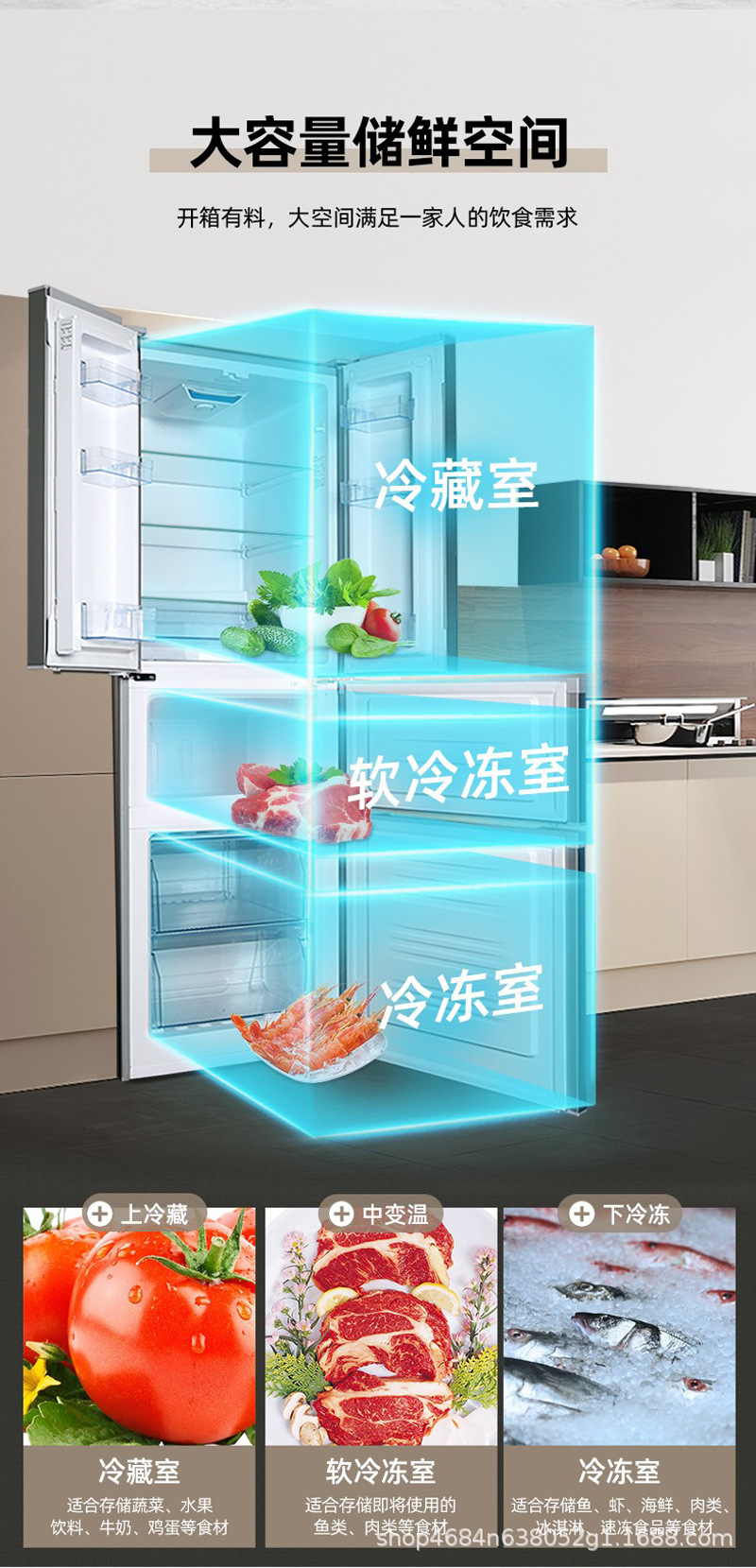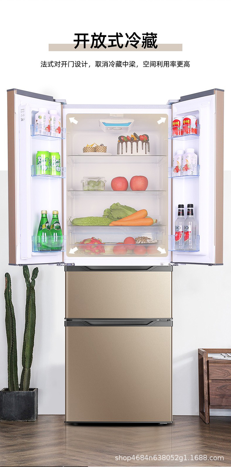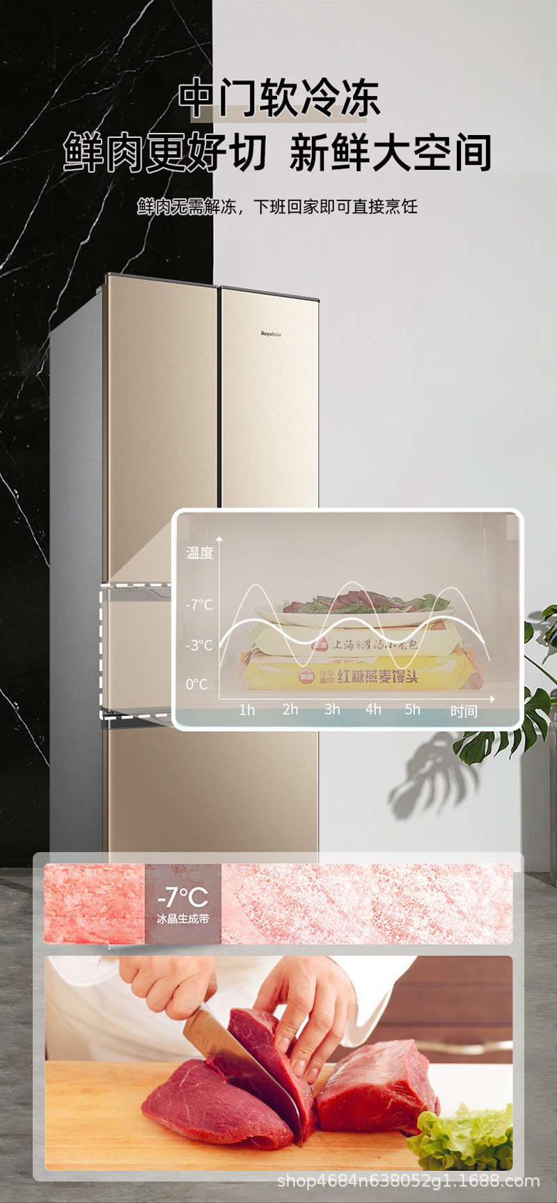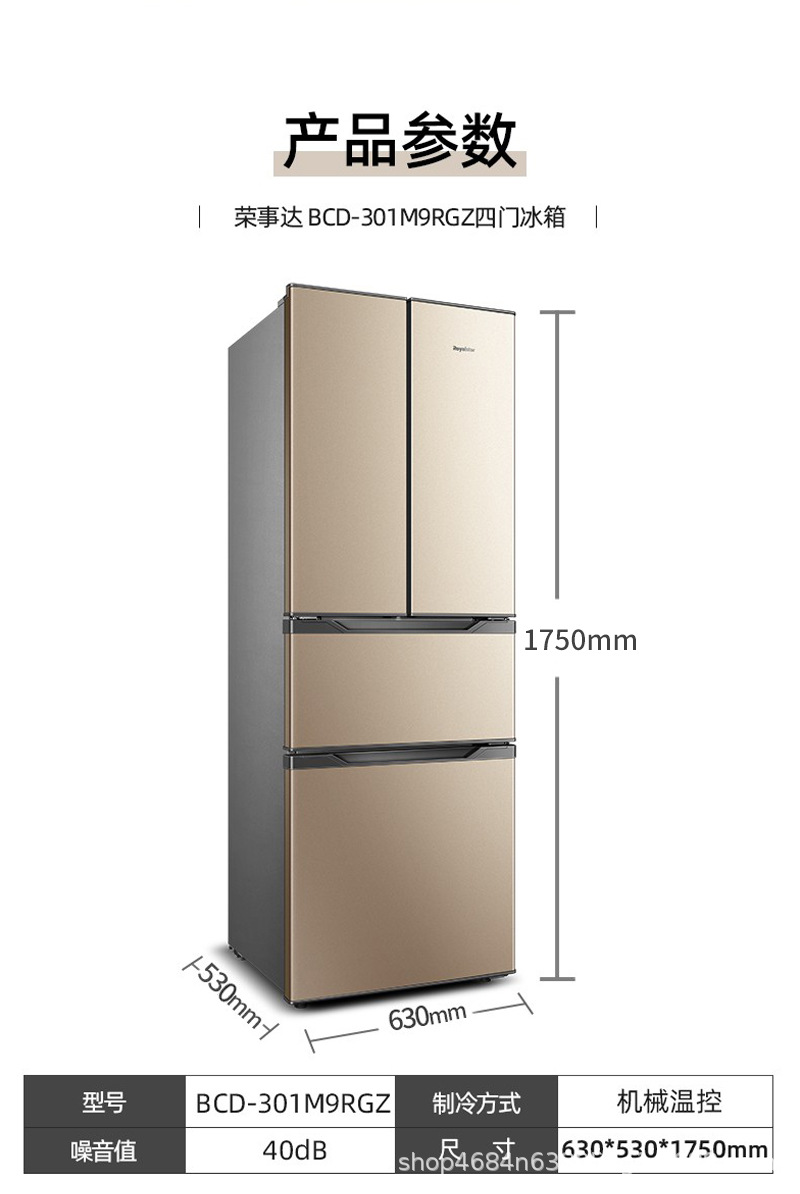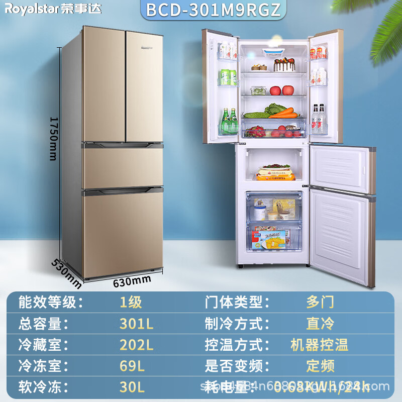 Rongshida 301 리터 프랑스 4 도어 클래스 I 가정용 대용량 냉장고 멀티 도어 냉동 소프트 냉동스토어 가기