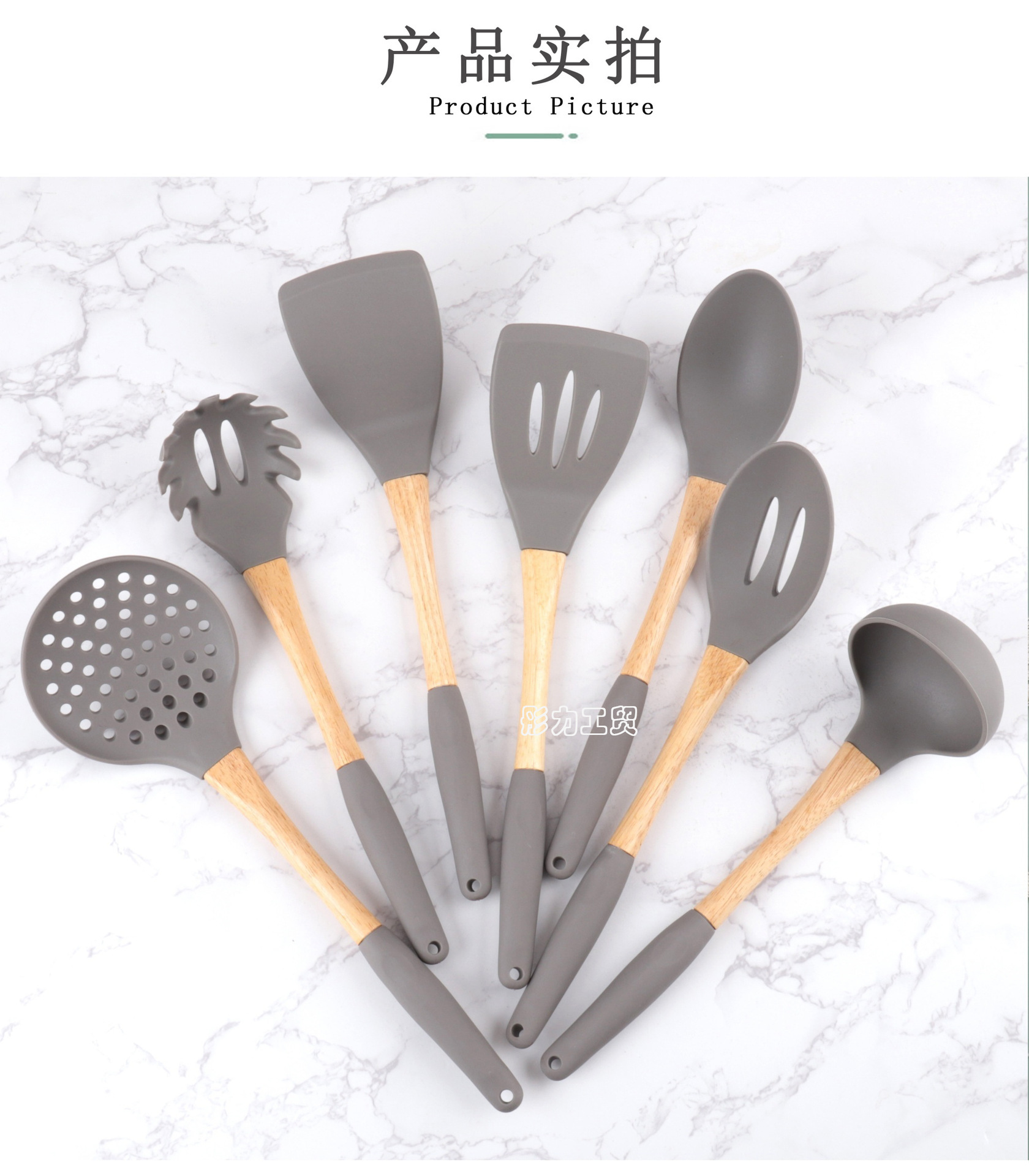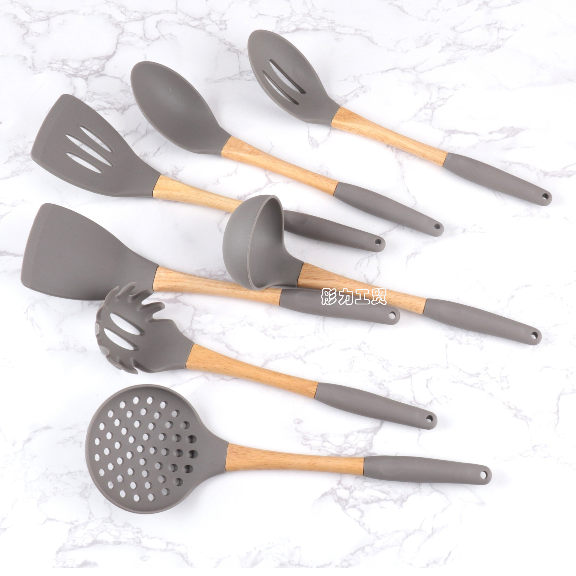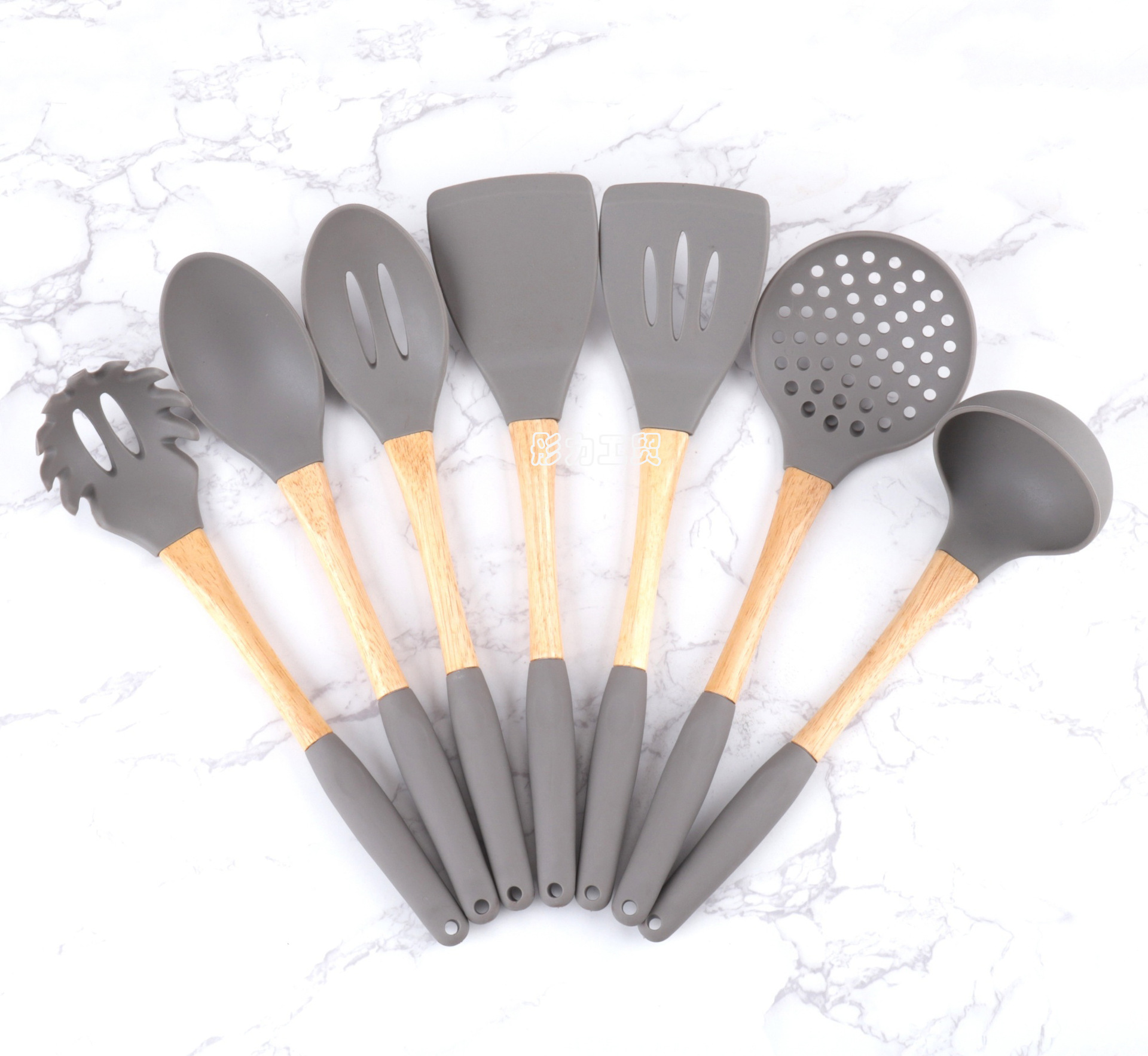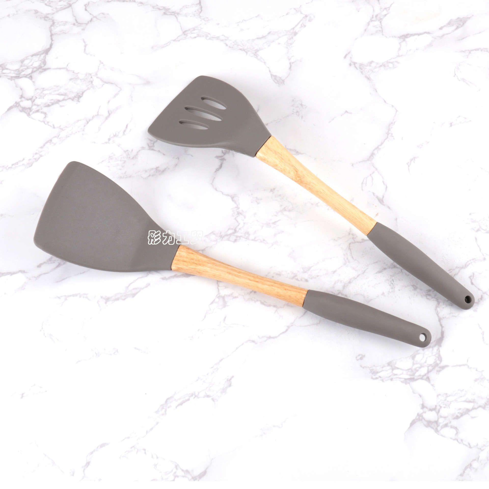 식품 학년 나무 손잡이 실리콘 주방용품 세트 비 스틱 팬 특별 튀김 삽 실리콘 스포벨 요리 삽 및 숟가락 주방 도구