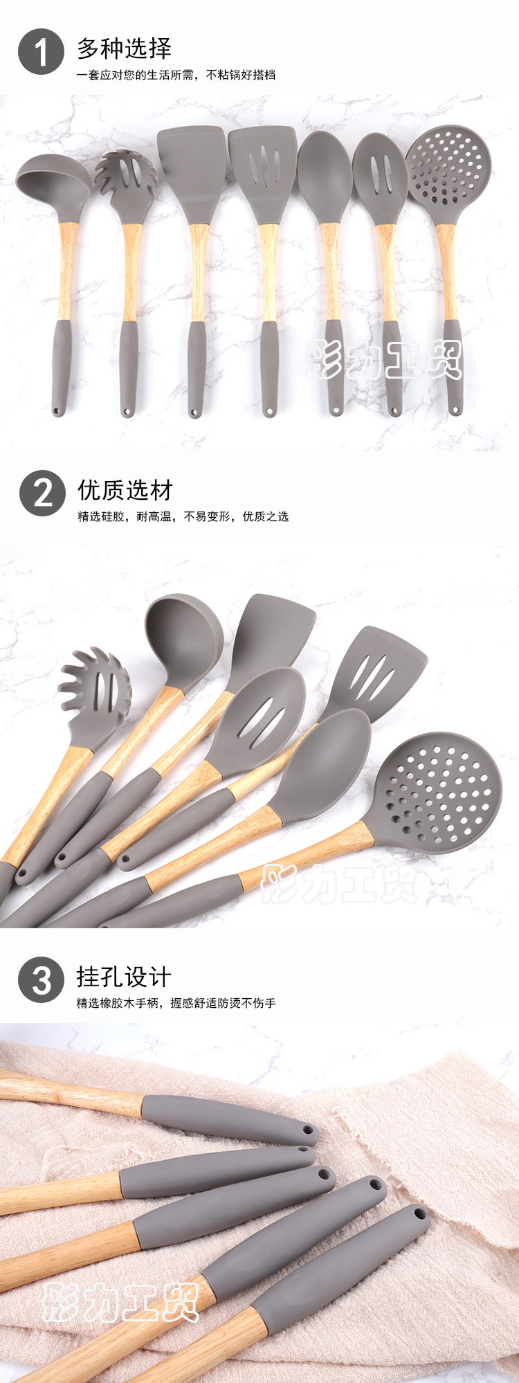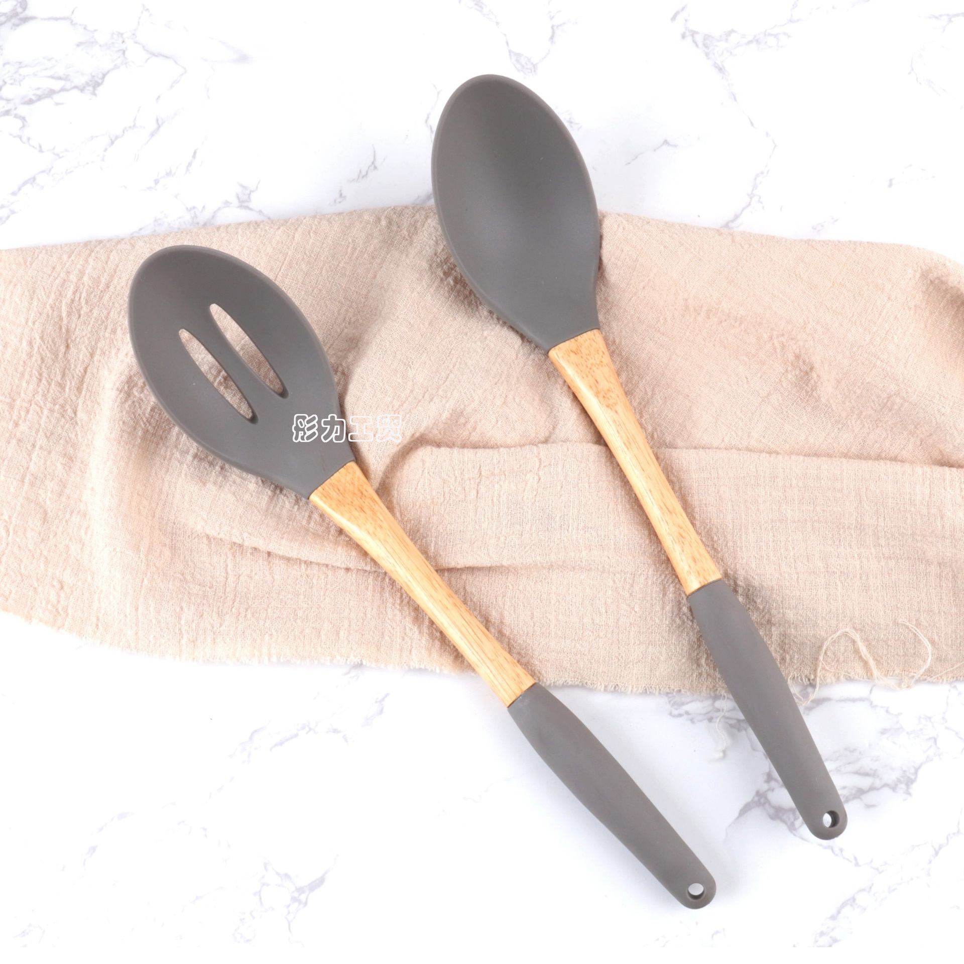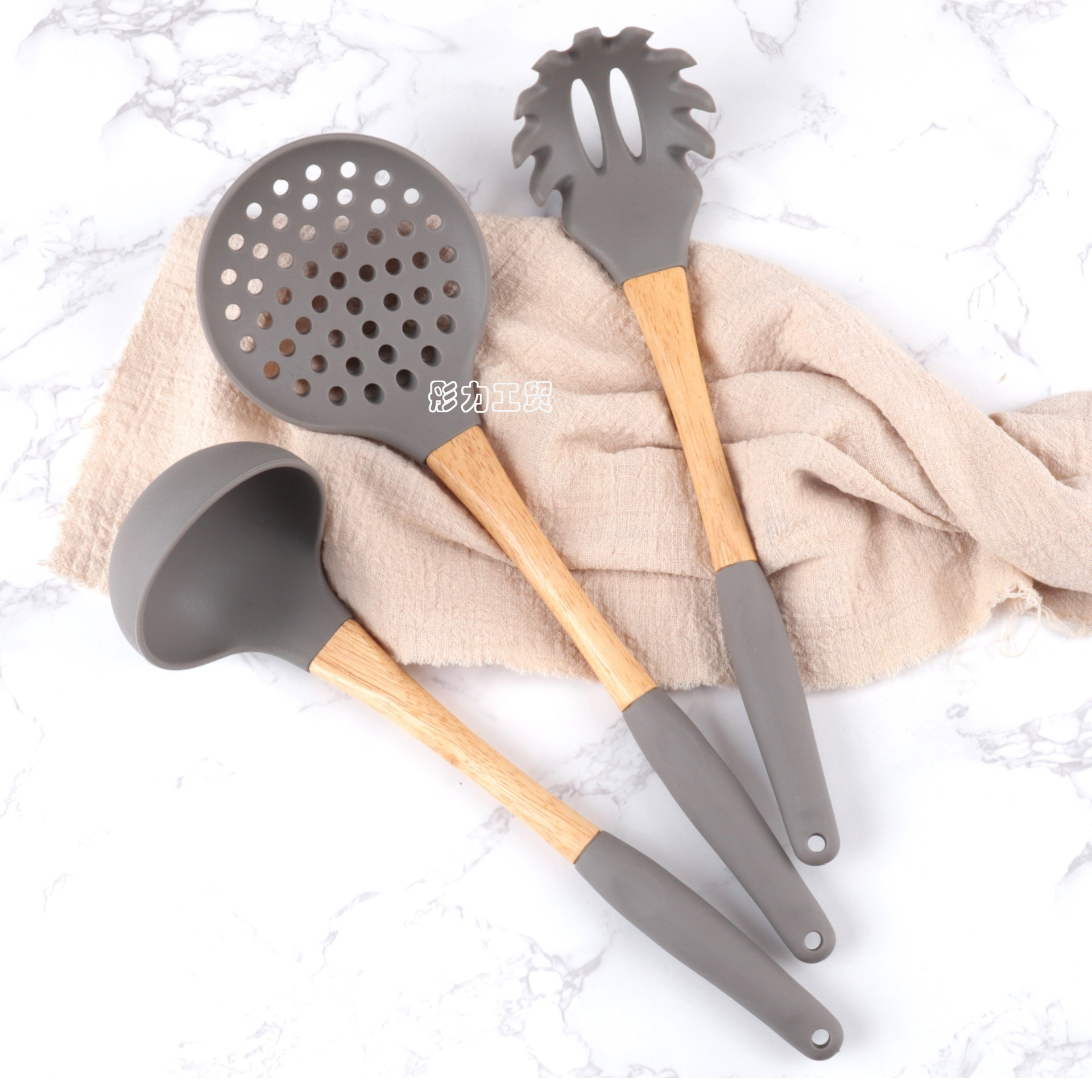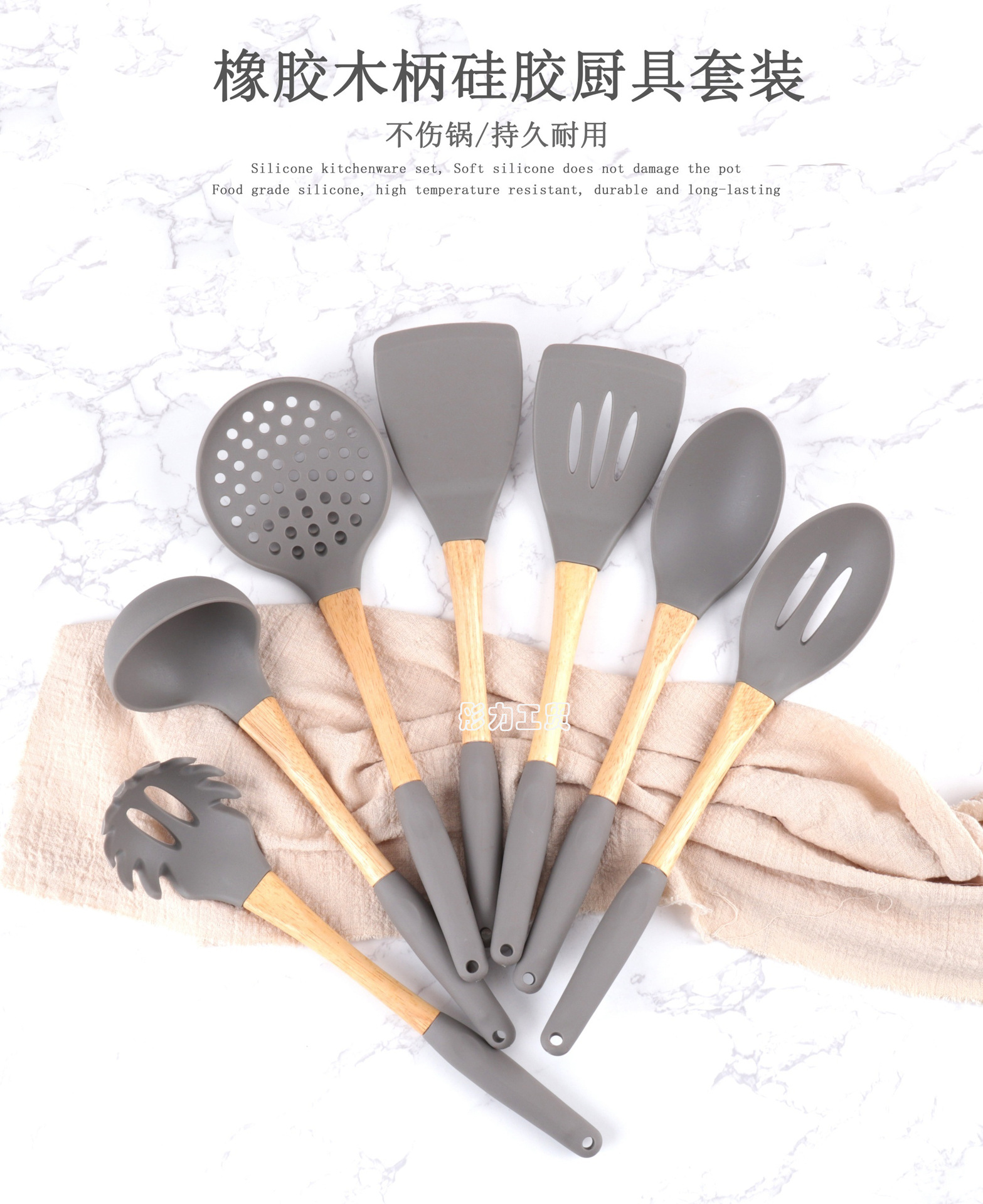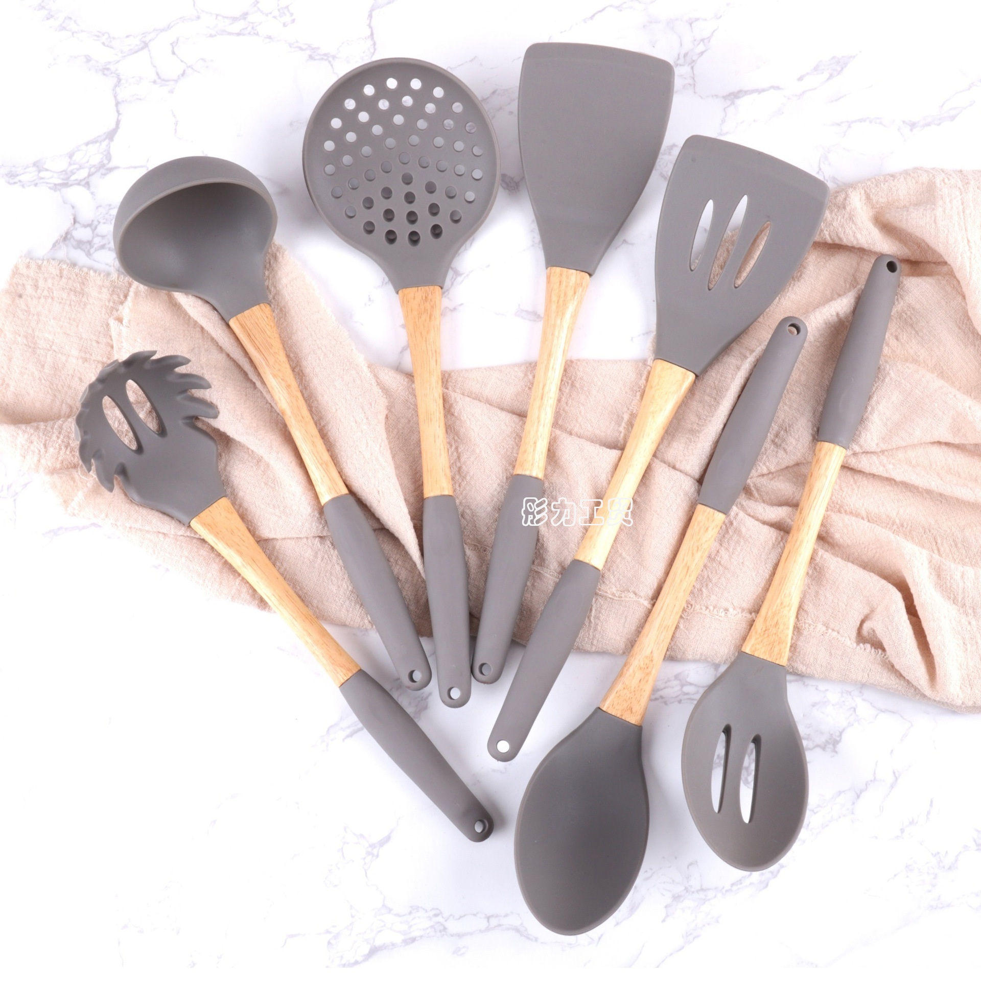 식품 학년 나무 손잡이 실리콘 주방용품 세트 비 스틱 팬 특별 튀김 삽 실리콘 스포벨 요리 삽 및 숟가락 주방 도구