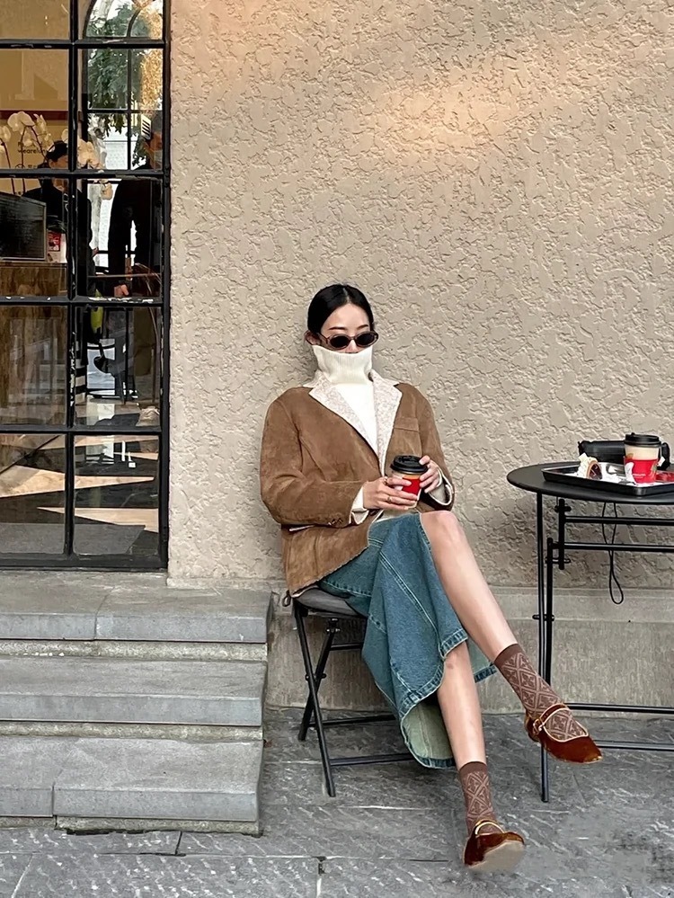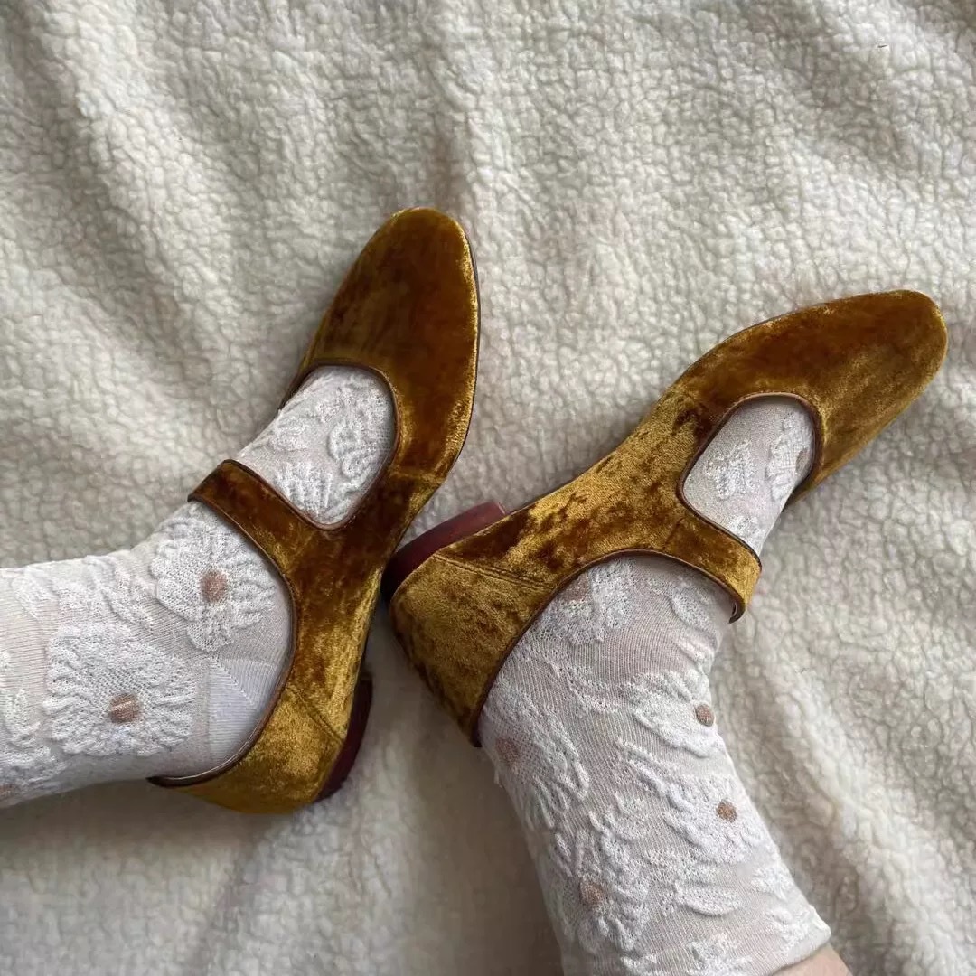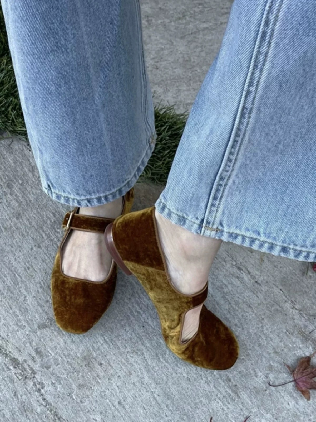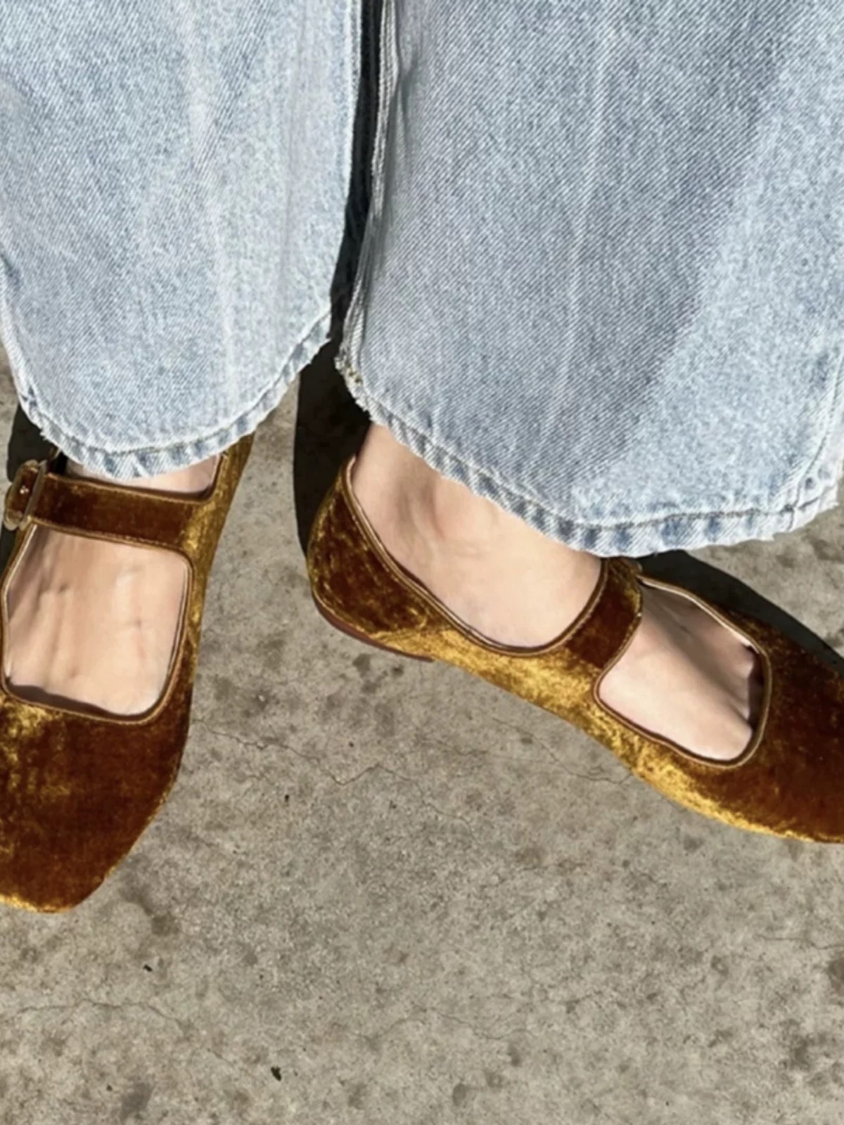 정품 가죽 벨벳 한국 인 플랫 싱글 레이어 신발 여성 2025 봄 올 매치 스퀘어 토 얕은 입 신발 메리 제인 신발스토어 가기
